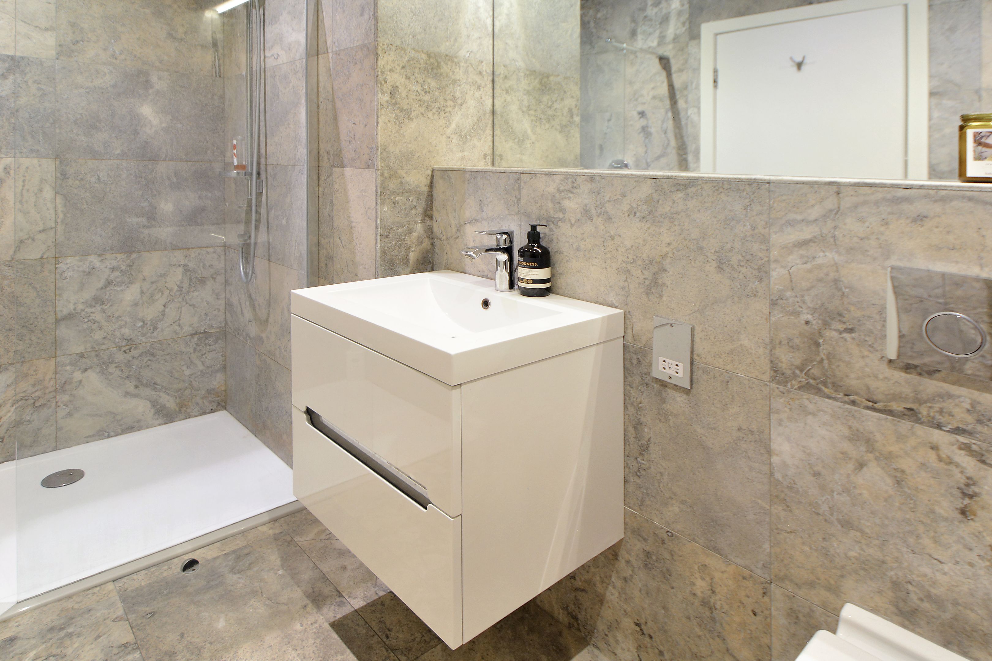 La chambre principale comprend une salle de bains attenante pour plus de confort et de luxe.