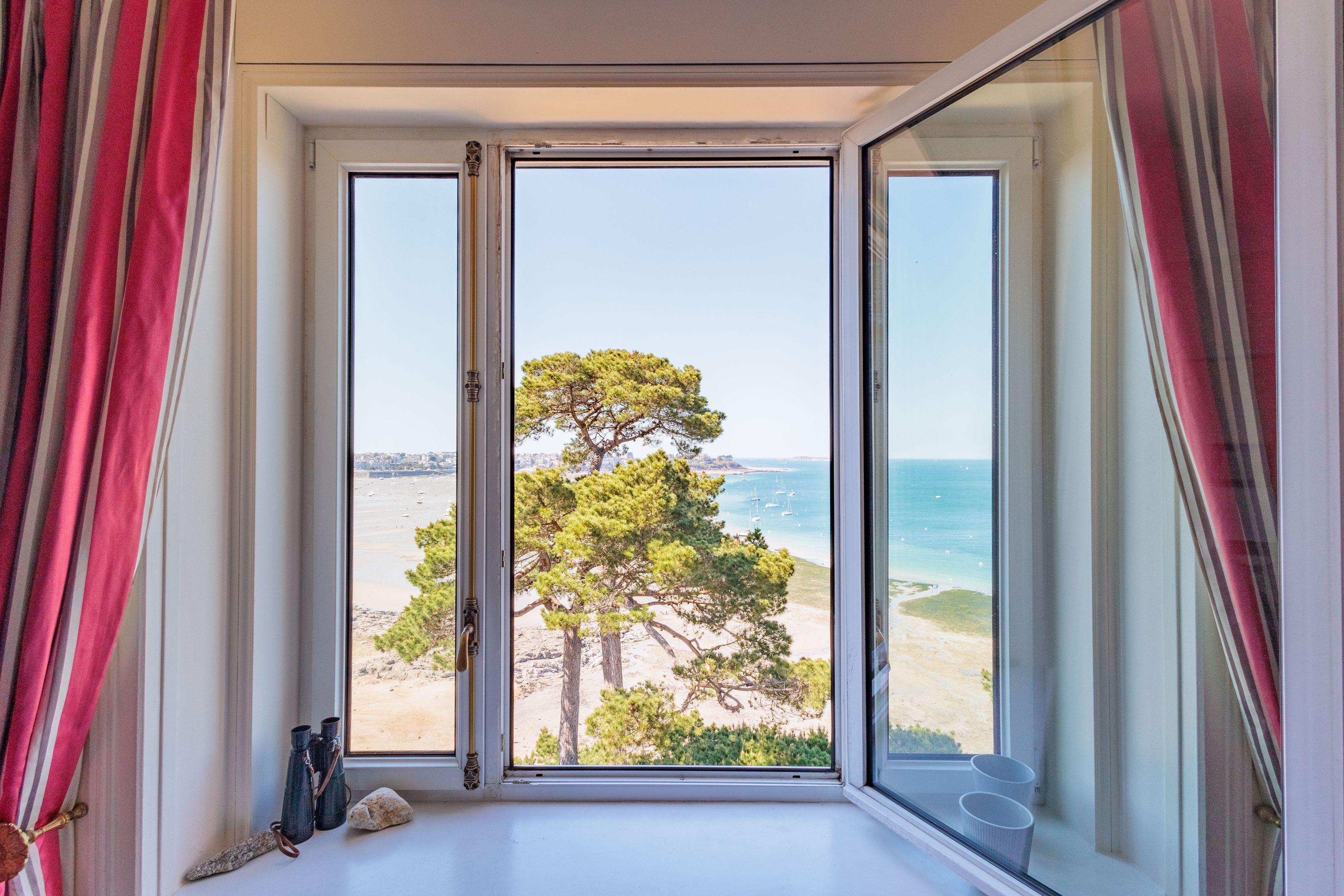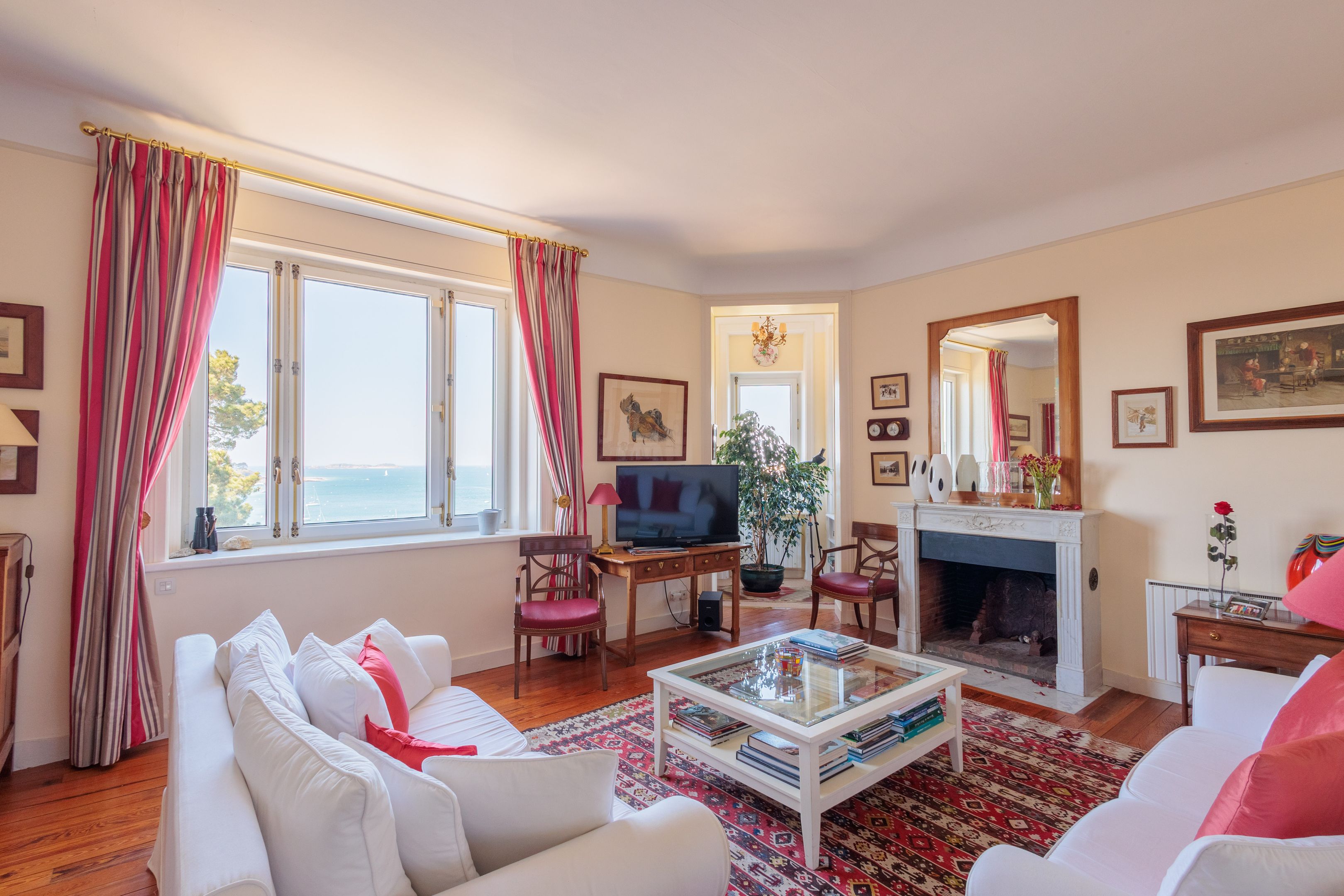 VENDU PAR BRETEUIL - Villa "Castel du Prieuré" - Dans un environnement résidentiel privilégié très arboré et extrêmement paisible. Au dernier étage d'une prestigieuse villa dinardaise surplombant la baie du Prieuré, appartement de grand standing de 151m² bénéficiant de fabuleuses vues mer, de beaux volumes et d’une grande quiétude. Galerie d’entrée accessible directement par ascenseur, séjour parquet-moulures-cheminée, salle à manger, cuisine dinatoire, 3 chambres de belle taille, 2 salles de bains douche-baignoire-toilettes, toilettes séparées. Espace buanderie et nombreux rangements. Cave, garage, 2 places de stationnements extérieur. Jardin à usage partagé avec accès direct au chemin des douaniers et à la plage.