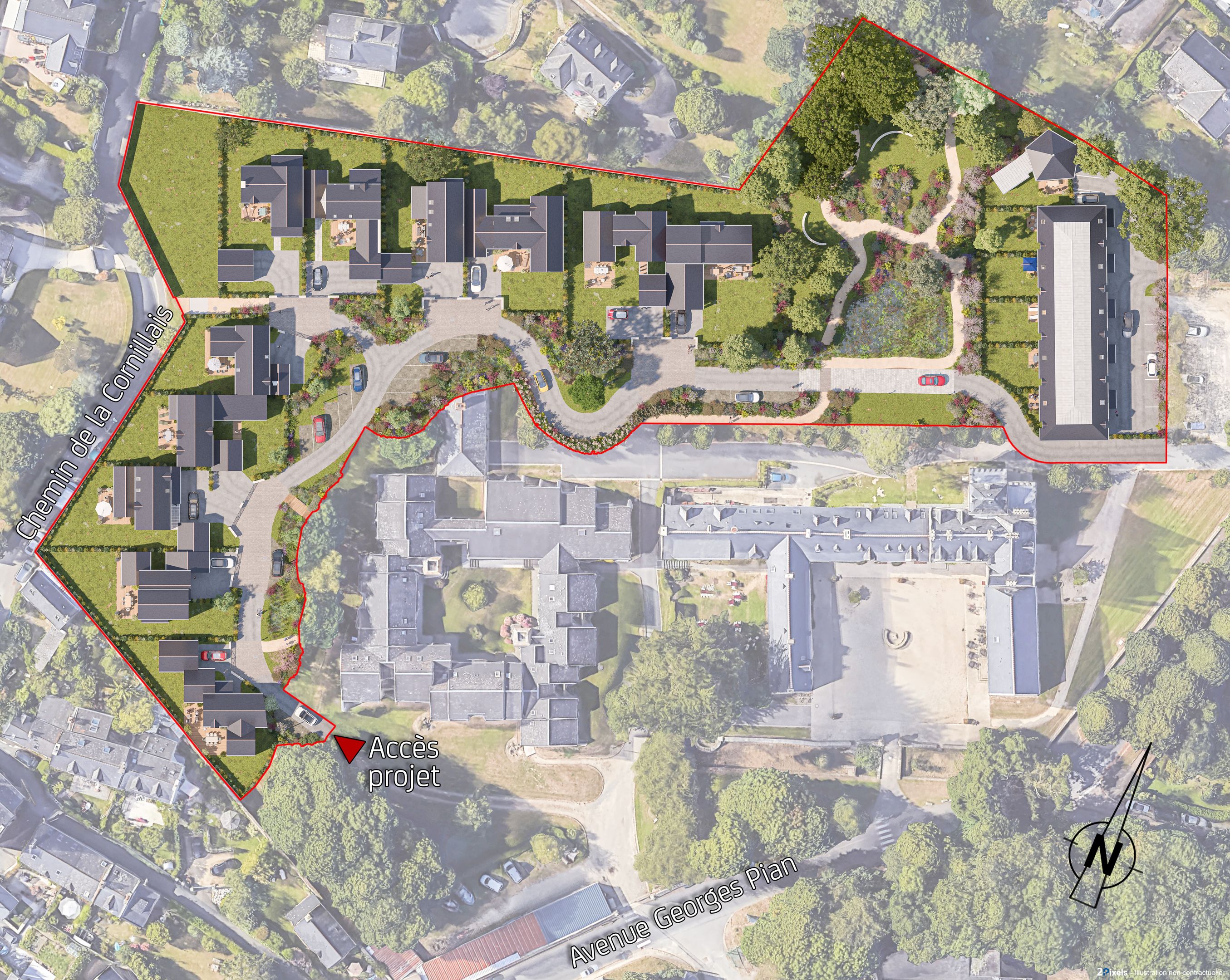 Dans un environnement arboré et résidentiel privilégié offrant une qualité de vie extrêmement paisible, à proximité immédiate de la plage et du chemin des douaniers. Future maison neuve offrant 108m² habitables et 90m² de surface extérieure (terrasse et jardin) orientée plein ouest au sein d'une petite copropriété de seulement 5 cottages. Le projet architectural signé par le cabinet Bachmann Associés est personnalisable et peut s'adapter selon les désirs. Le parc paysagé créé par Éric Lequertier bénéficiera quant à lui du label "Signature Biodiversité".