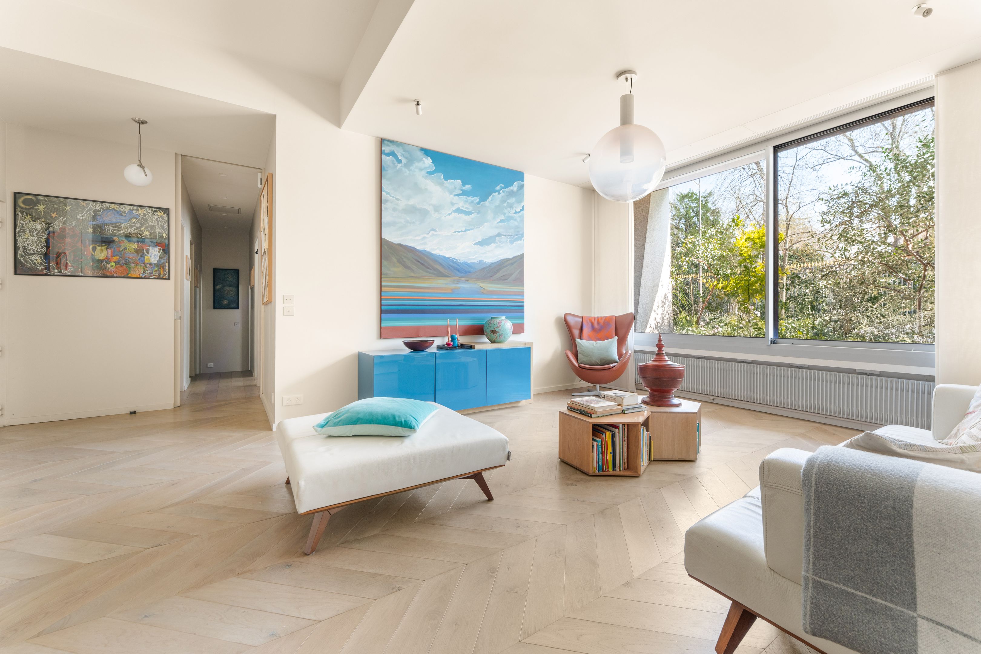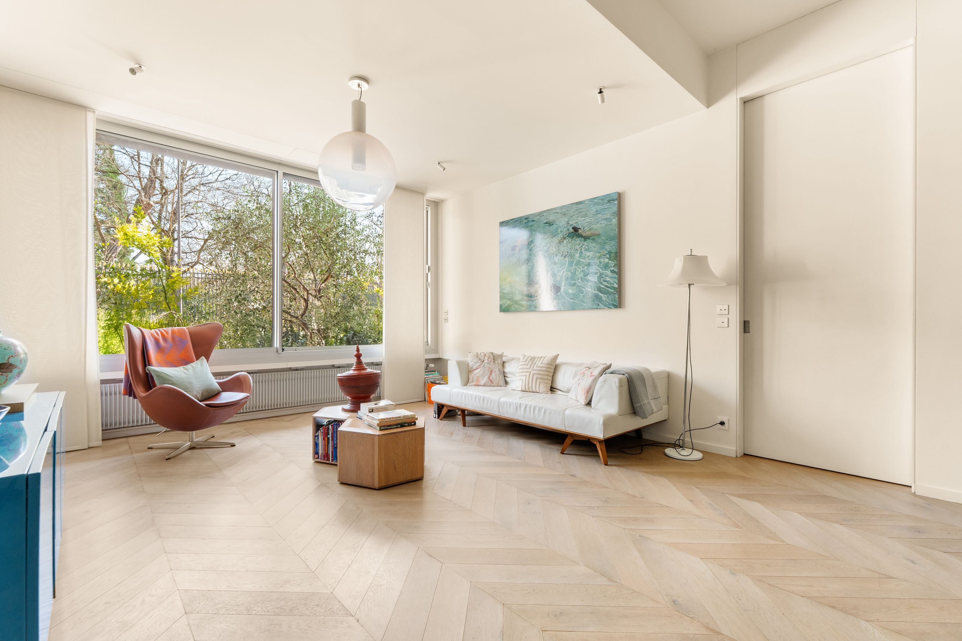 Face au Jardin du Luxembourg, belle copropriété récente avec gardien. Situé en rez-de-jardin, bel appartement familial d'environ 130m2 rénové avec goût et profitant d'un jardin privé de 110m2, ensoleillé et à l'abri des regards. Entrée, salon, cuisine ouverte sur la salle à manger donnant sur le jardin. Deux espaces nuit séparés : Une suite parentale avec dressing et salle d'eau avec toilettes ainsi qu'un deuxième espace avec trois chambres, salle de bains, toilettes séparées et buanderie. Deux caves et possibilité d'acquérir un parking en supplément.