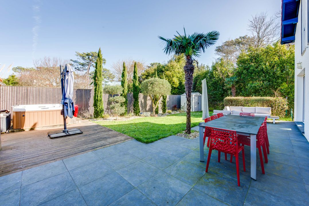 À quelques minutes du bourg d'Arbonne et édifiée sur une parcelle de 1 700 m² avec vue sur la Rhune et les montagnes, maison contemporaine de plain-pied de 215 m², totalement rénovée, offrant des prestations soignées. Entrée, cuisine ouverte sur le séjour, double salon s'ouvrant sur un jardin et une piscine au sel chauffée exposée sud, suite parentale dotée d'un dressing et salle de bains/d'eau, 3 chambres possédant chacune leur salle d'eau, 2 toilettes invités. Buanderie et garage.