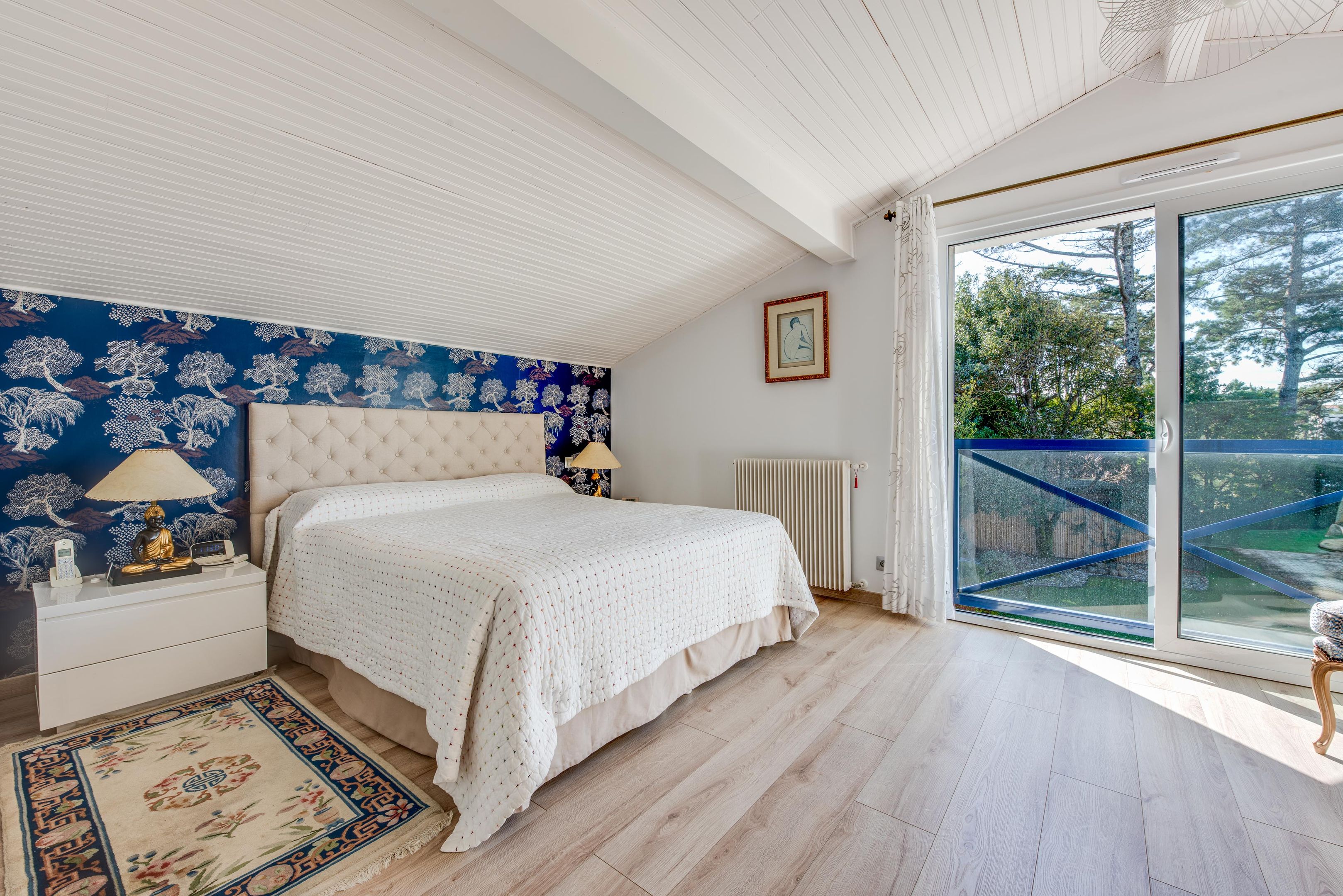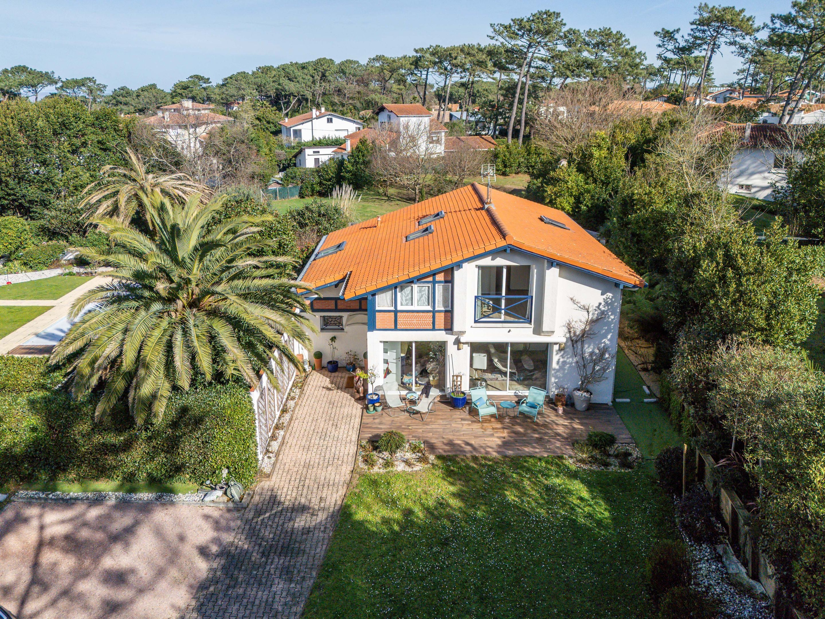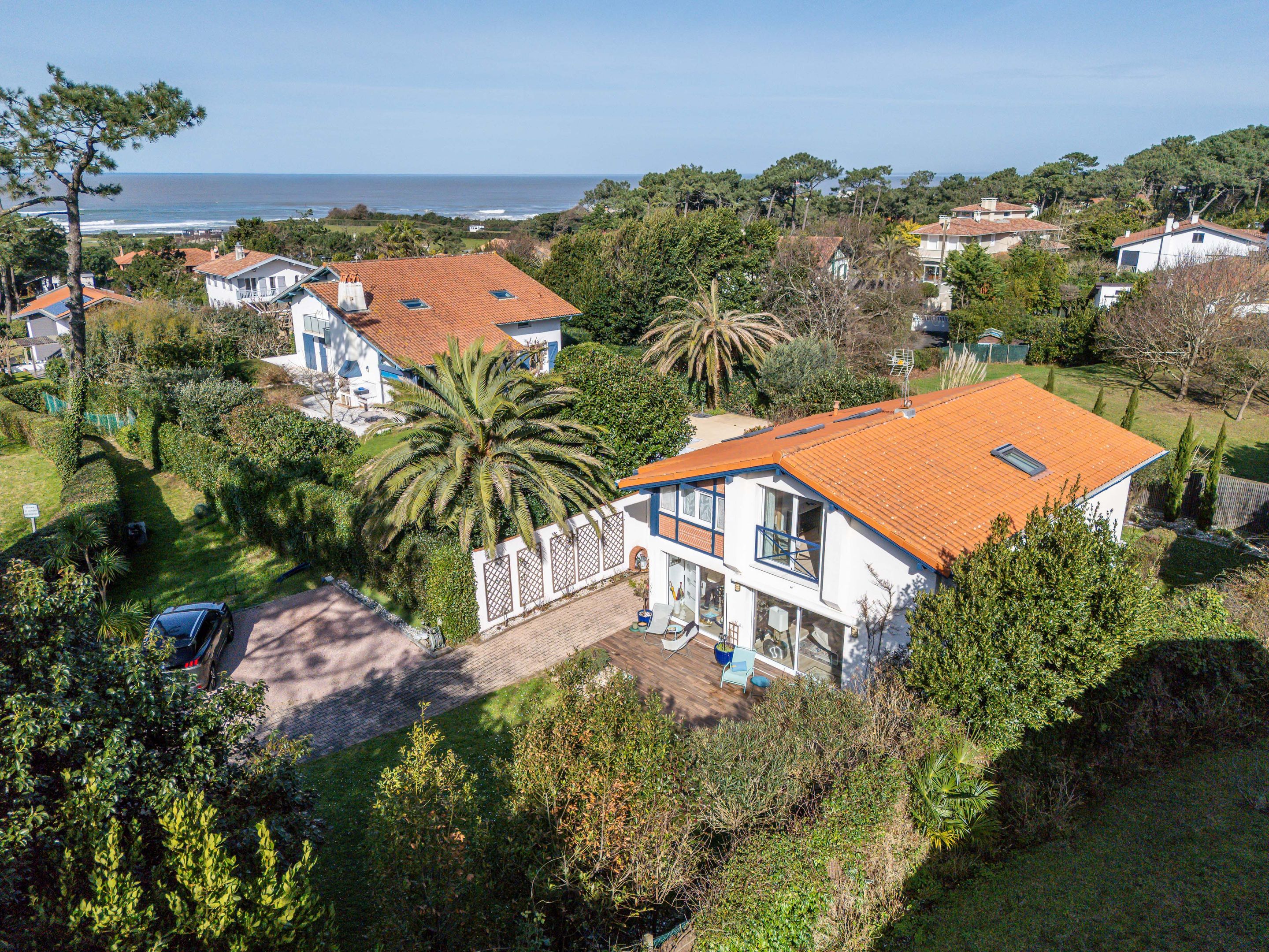 Belle maison néo-basque des années 70 entièrement rénovée. Entrée, double séjour bénéficiant d'une triple exposition, cuisine équipée indépendante, cellier, chambre, salle d'eau avec toilettes. À l'étage, deux chambres, salle d'eau avec toilettes, suite parentale avec salle de bains et dressing.