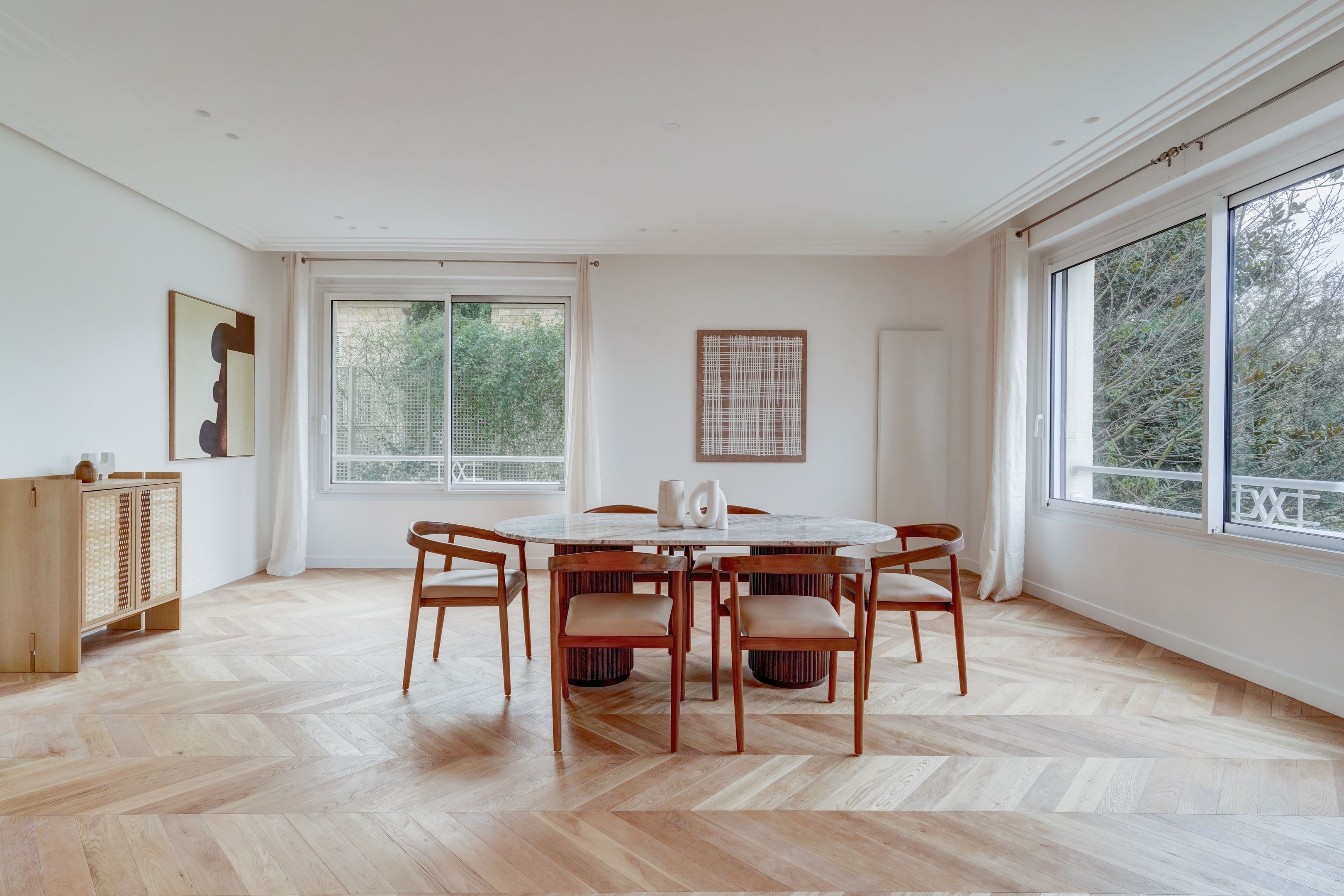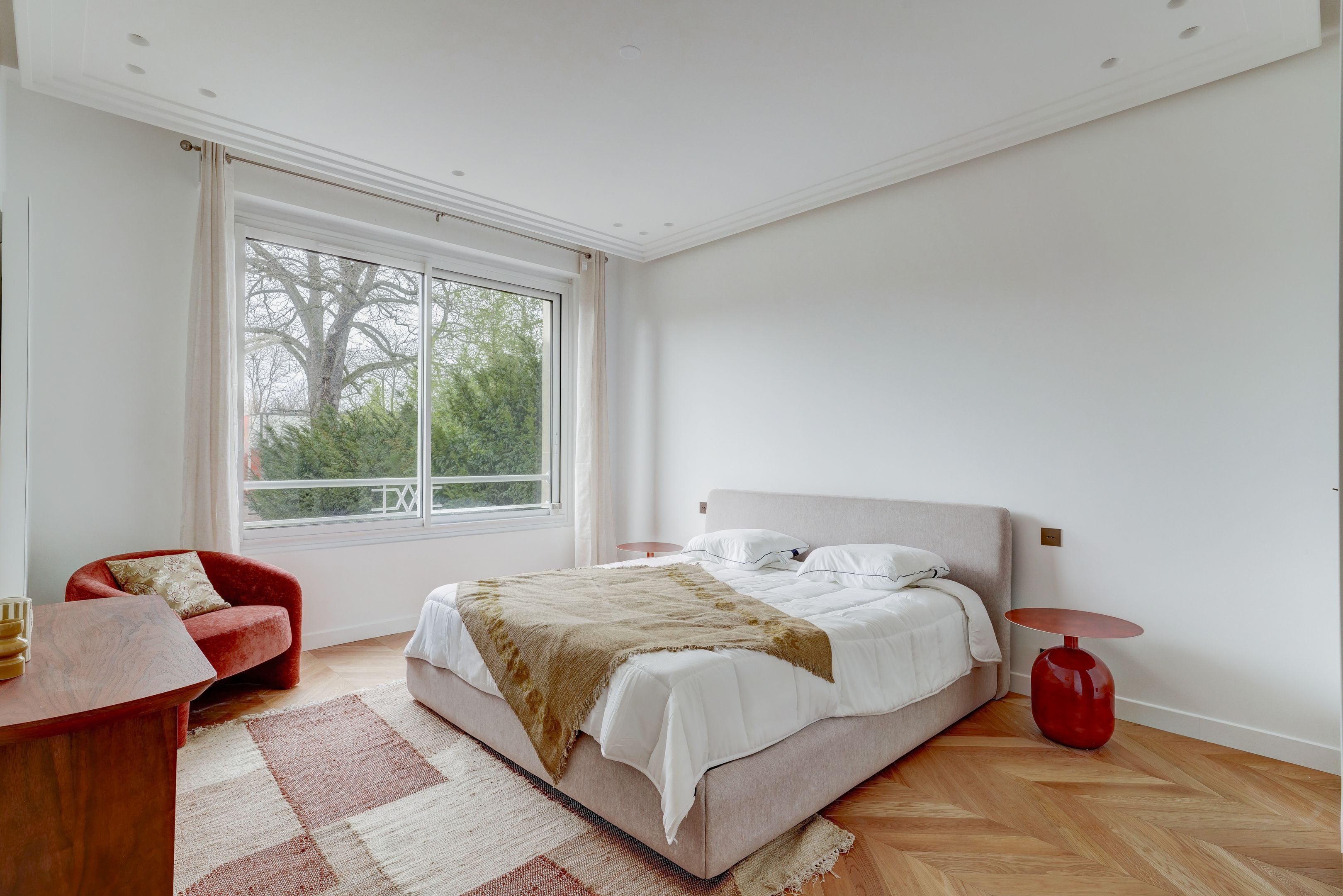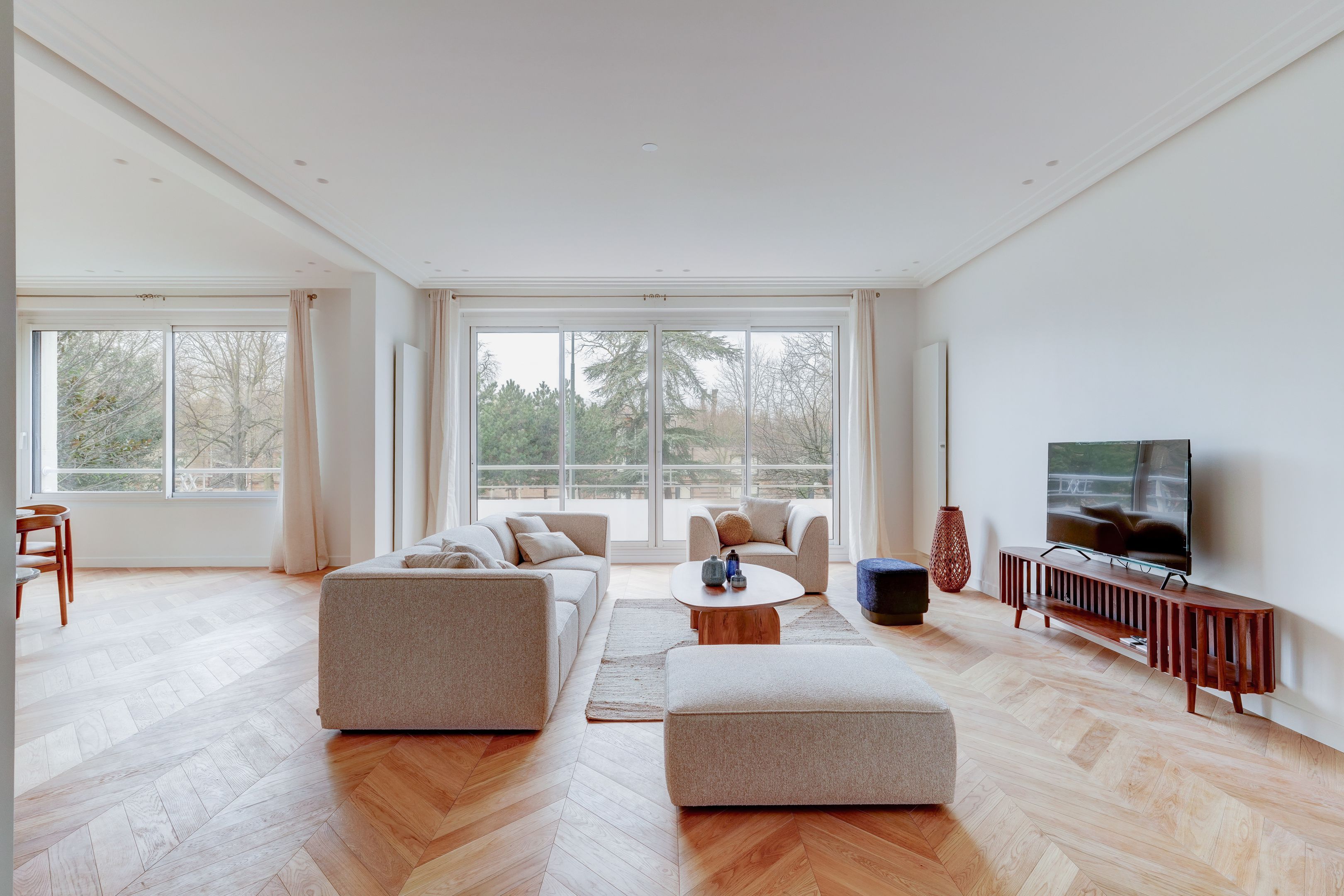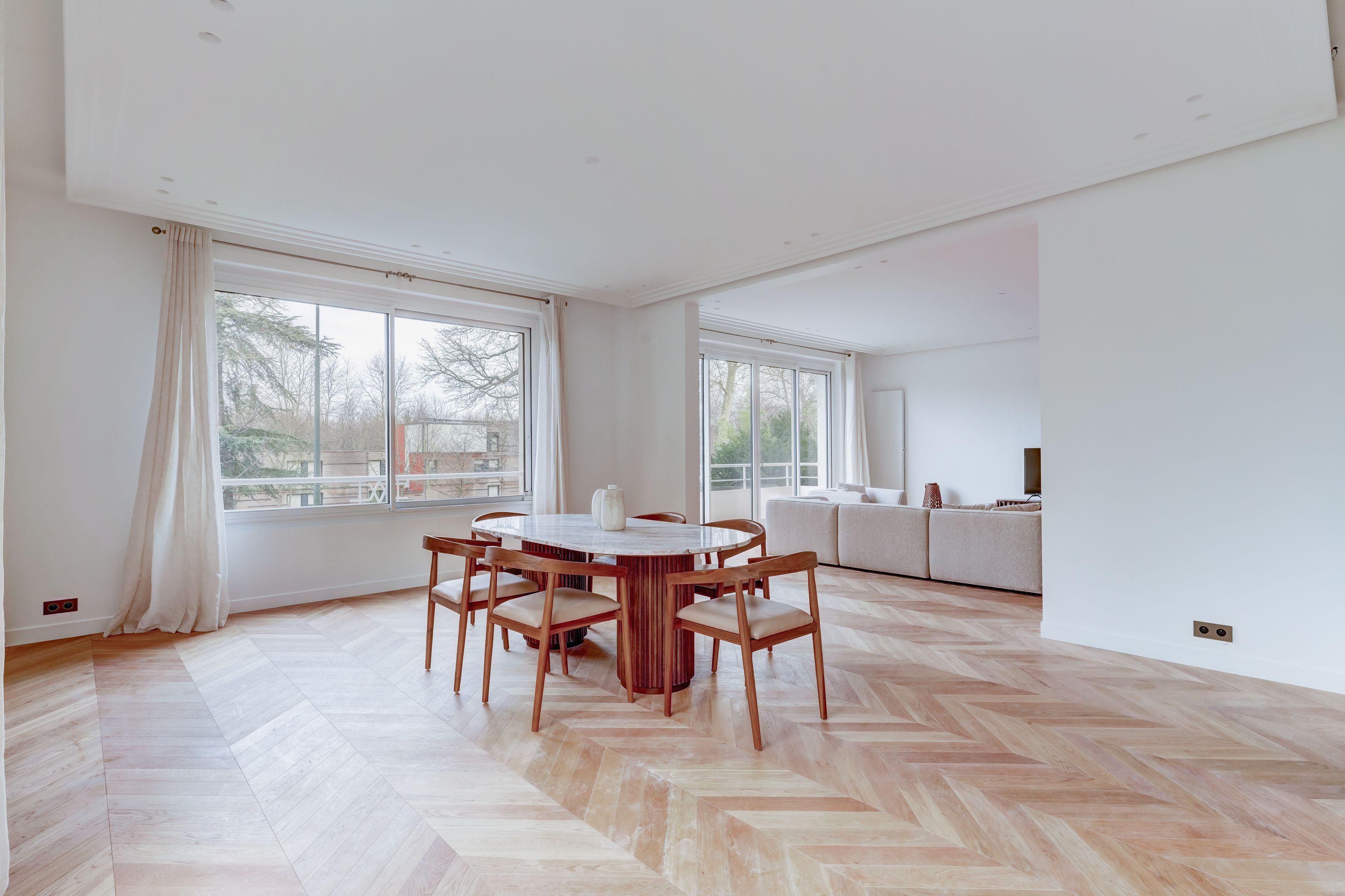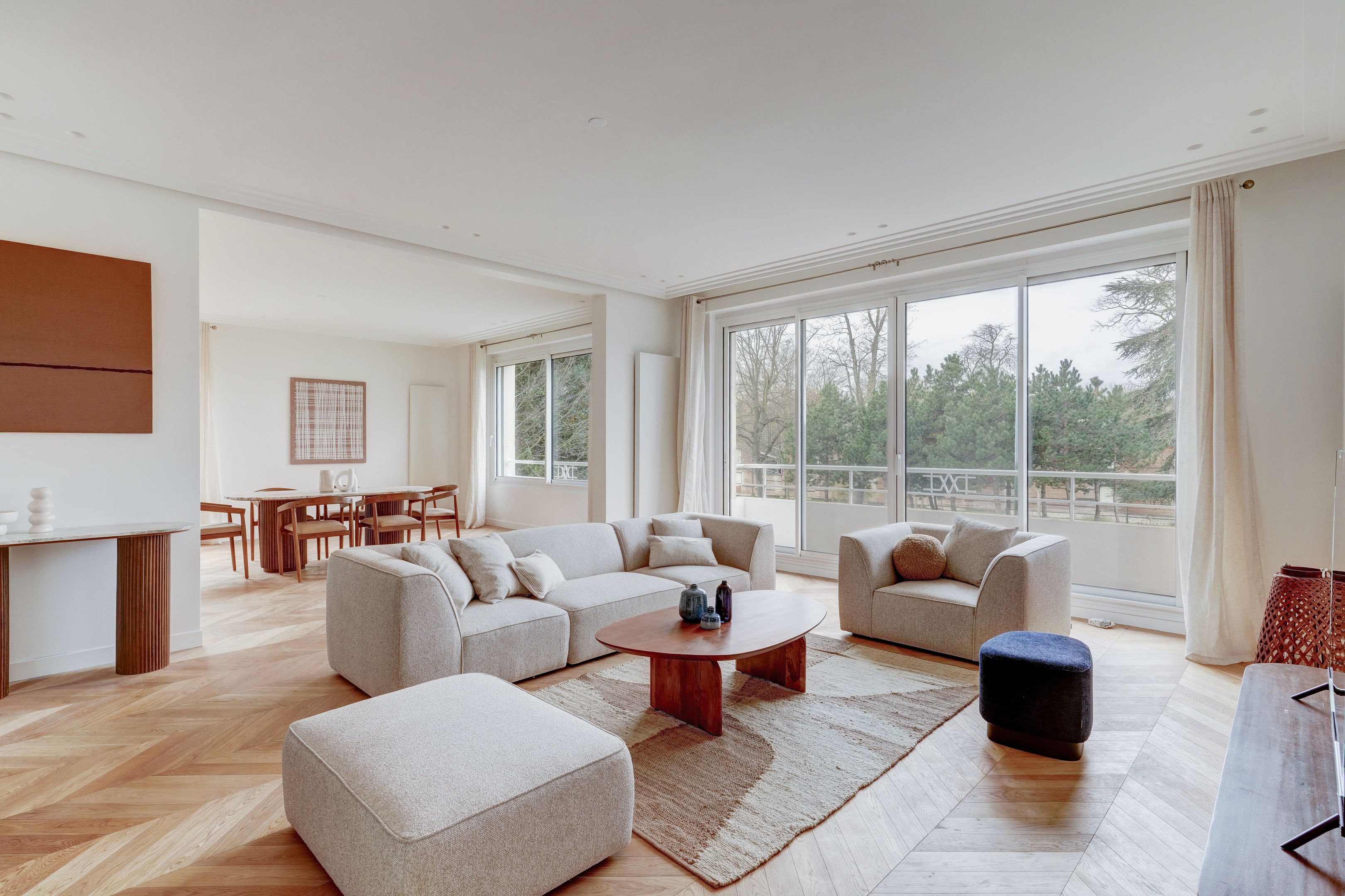 Immeuble 1950, dans un quartier familial et résidentiel, face au bois de Boulogne. Appartement meublé, au 1er étage, de 165 m² environ, entièrement rénové avec des prestations haut de gamme. Salon et salle à manger de plus de 60 m², cuisine séparée, master avec dressing et salle d'eau avec toilettes, deux autres chambres, salle de bains avec toilettes et toilettes d'invités. Lumineux, vue dégagée avec balcon et belle hauteur sous plafond. Cave, parking. Location en bail Code Civil uniquement.