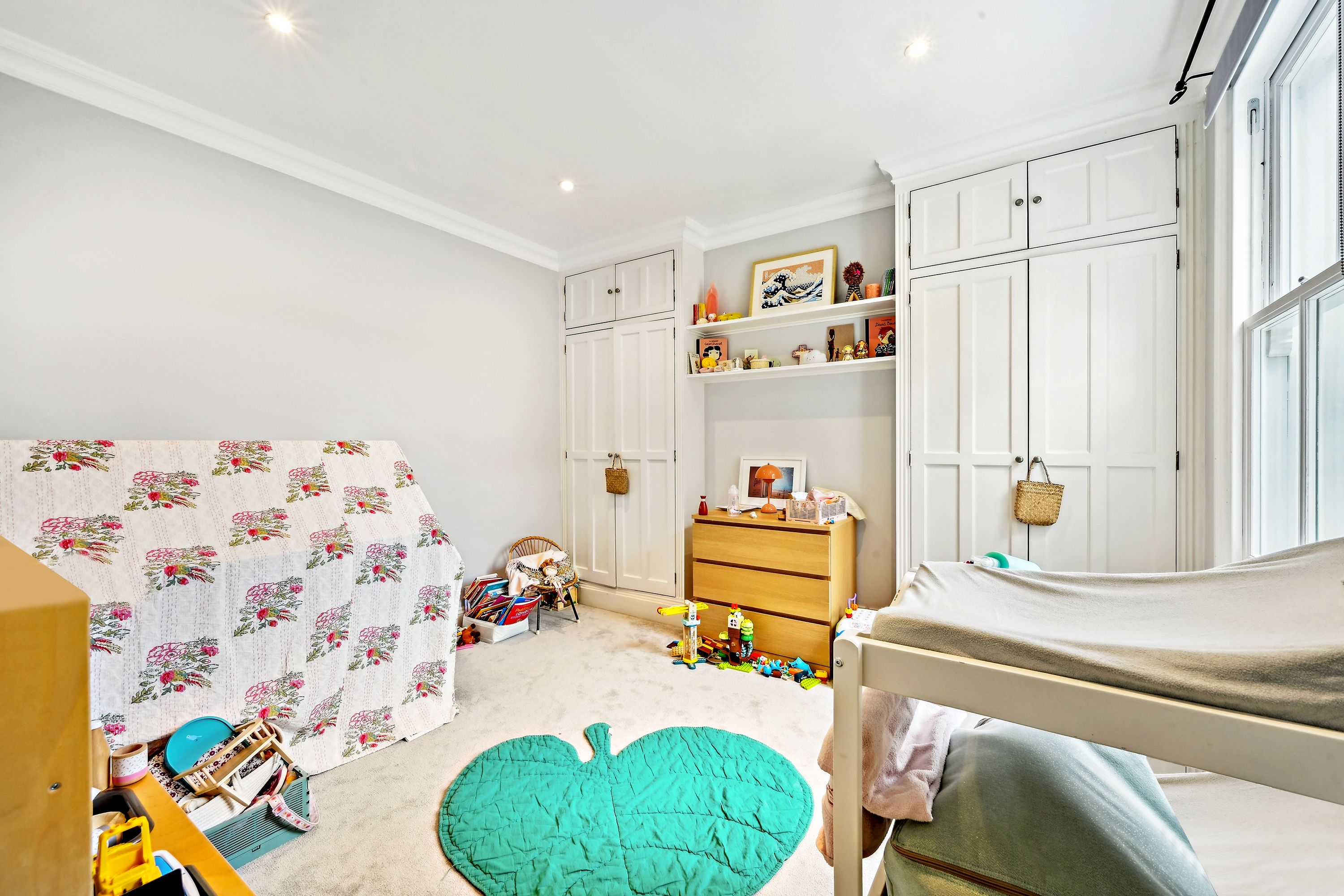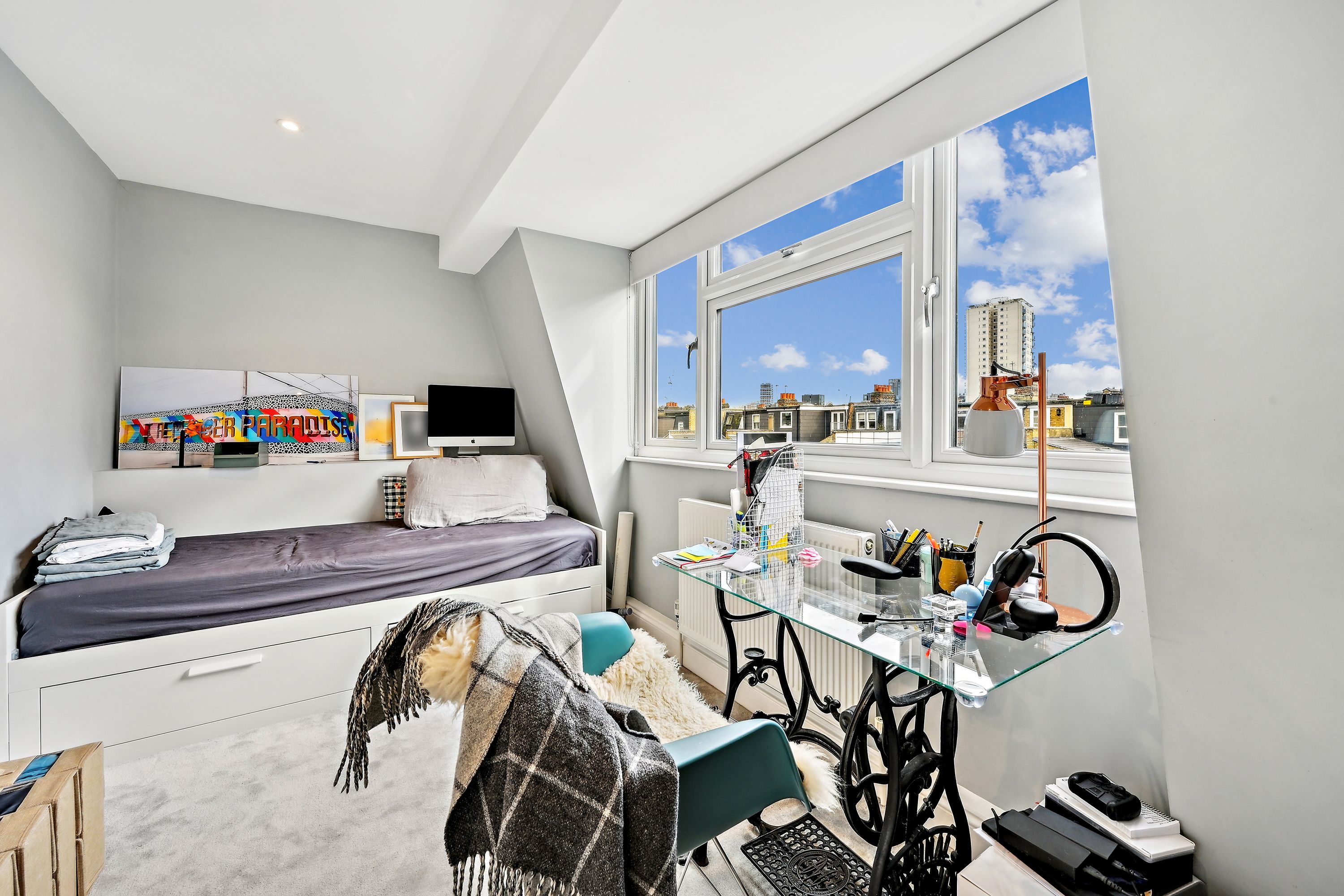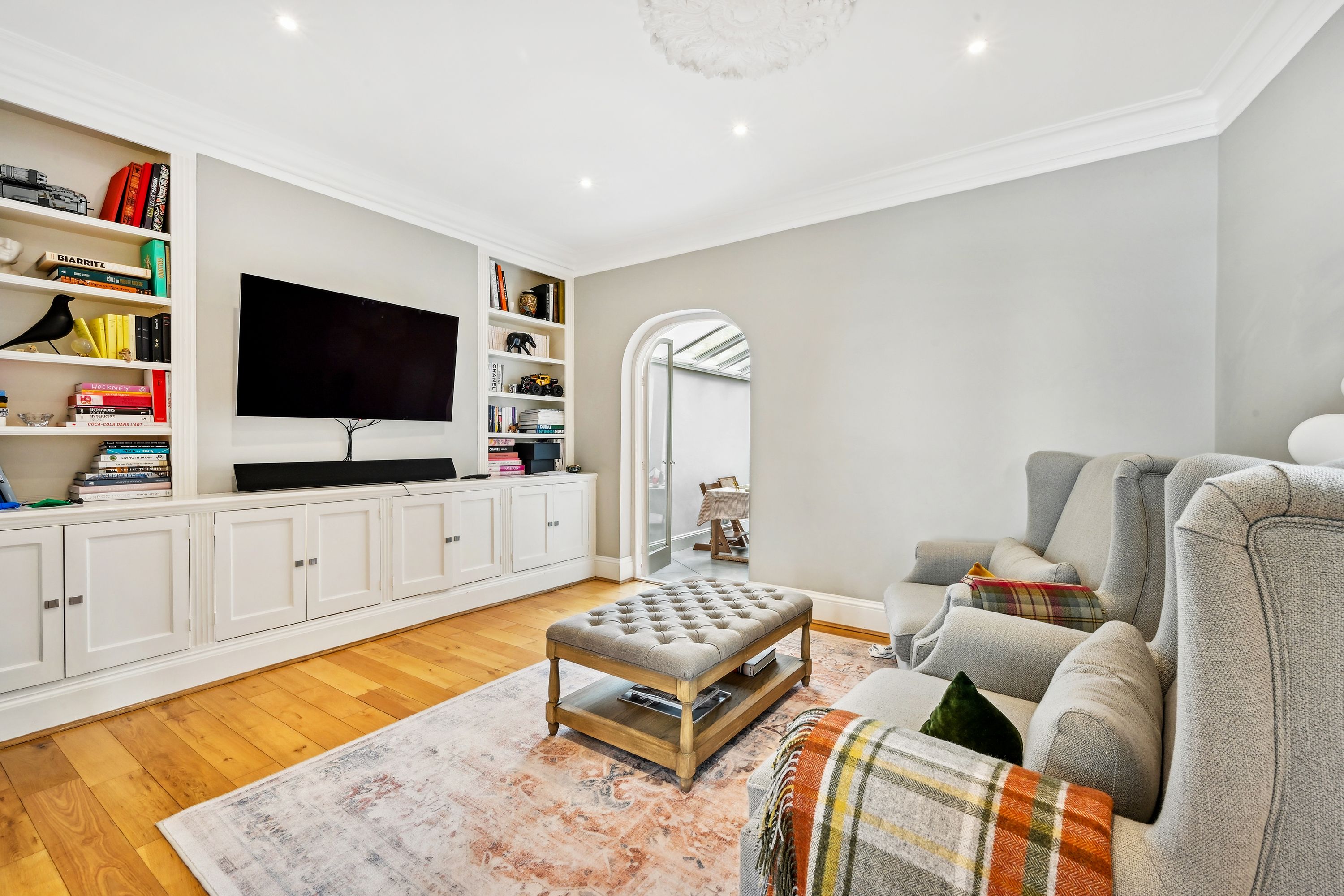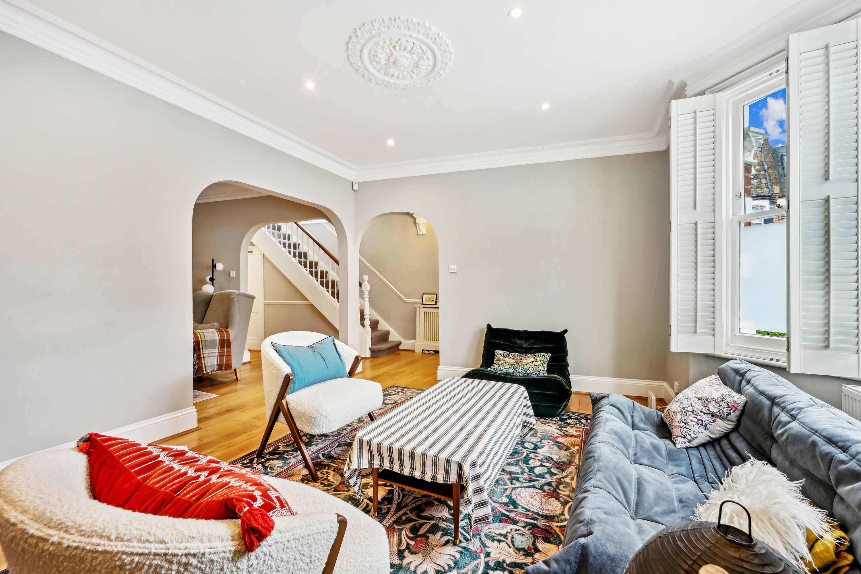 This property, located at the end of Narborough Street next to Settrington Road, enjoys a prime position. As an end-of-terrace house, it features bright rooms throughout. The ground floor offers a spacious front reception room with a large bay window, a ceiling rose, and wood flooring. This leads to a versatile room with ample storage, suitable as a second reception room or dining area. The rear hosts a modern kitchen with integrated Miele and Smeg appliances and dining space, along with a separate utility room. Bi-fold doors open to a south-facing garden with artificial grass, perfect for al fresco dining, with street access for bikes and scooters. The first floor has three double bedrooms, one en suite, all with fitted wardrobes, a family bathroom, and a study. The second floor comprises two more double bedrooms and another bathroom.