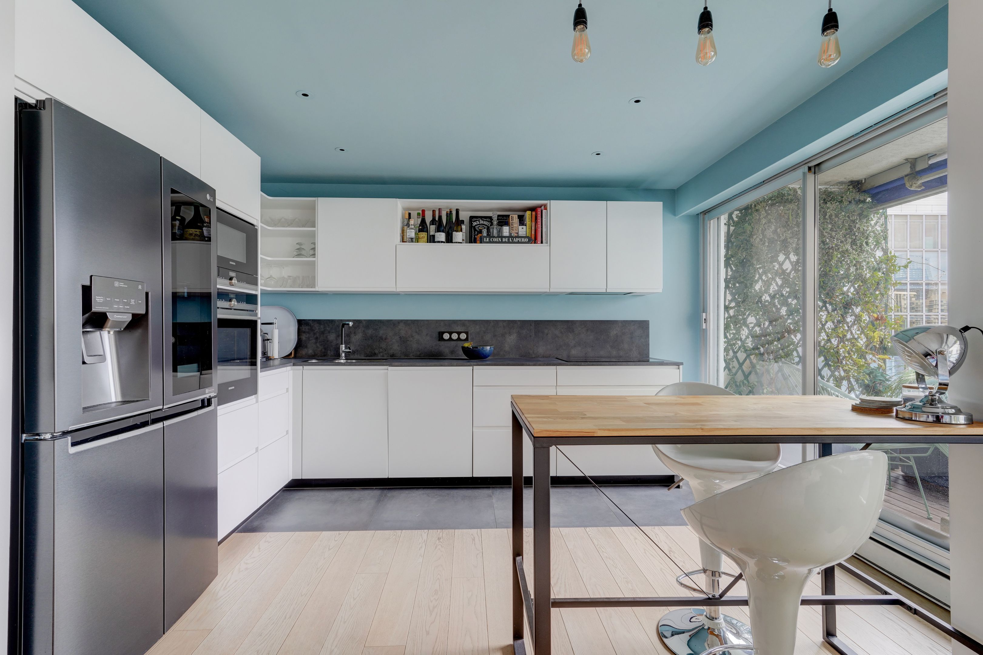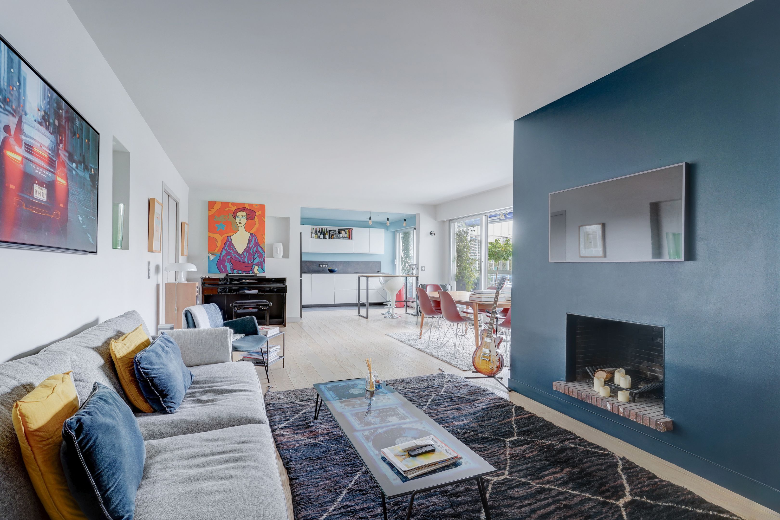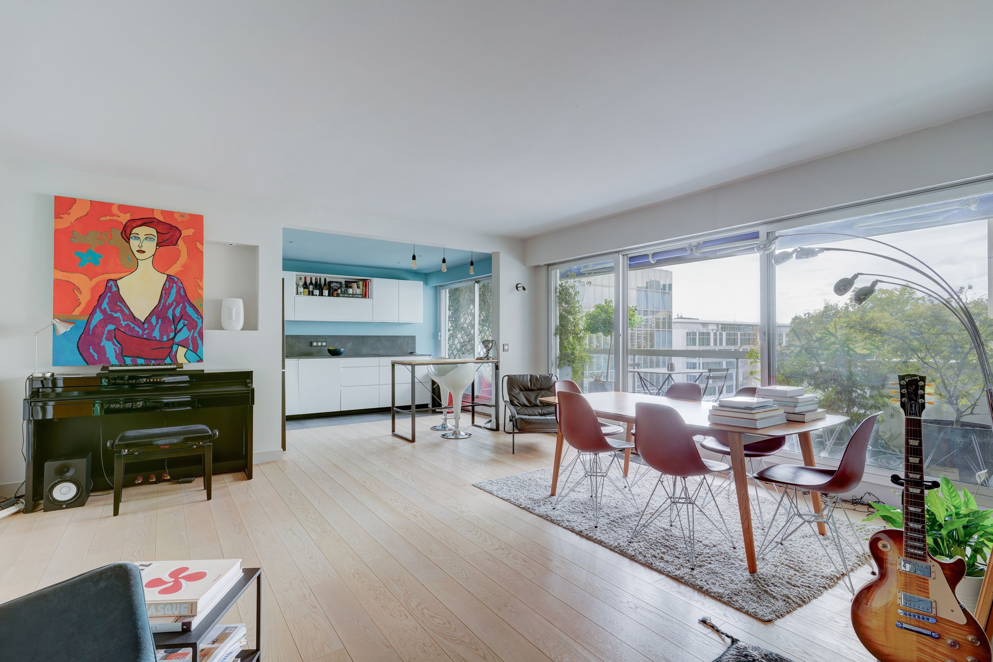 Ile de la Jatte. Proche commerces et transports, dans un immeuble récent, appartement familial rénové de cinq pièces de 128 m², au septième étage desservi par ascenseur et bénéficiant des services d'un gardien.