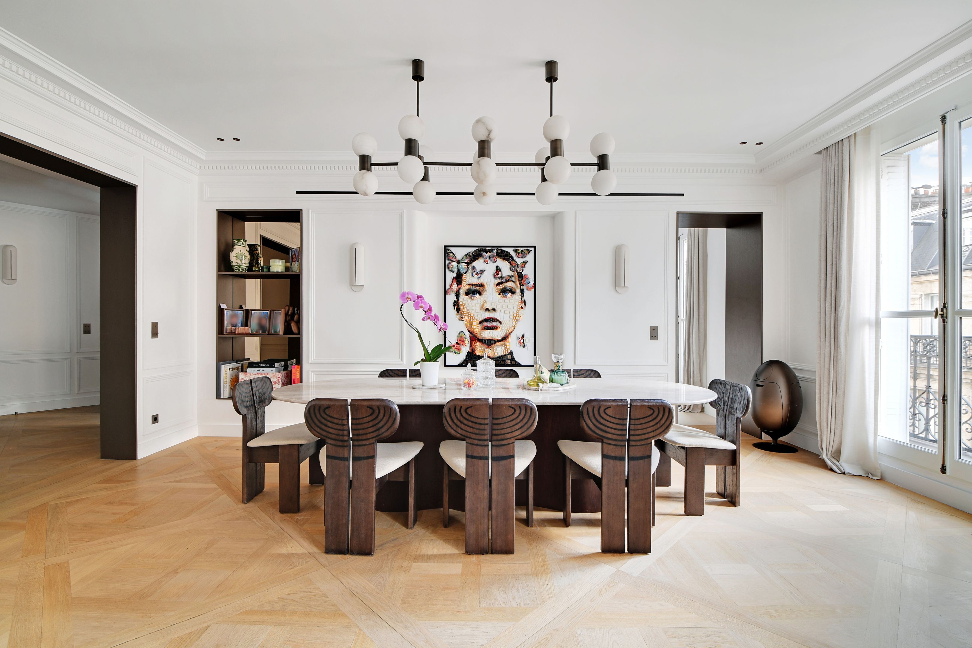 Idéalement situé place de Mexico, immeuble haussmannien de belle facture, parties communes de grand standing, 5ème étage, appartement de 152m2 ensoleillé, entièrement rénové et décoré avec des matériaux de grande qualité et bénéficiant de beaux volumes. Galerie d'entrée, double réception, balcon filant de 8m2, superbe cuisine dinatoire entièrement aménagée et équipée, buanderie, dégagement, suite parentale doté de son beau dressing et de sa salle de douche, deux chambres d'enfant, salle de bains, deux toilettes et de très nombreux rangements. Cave.