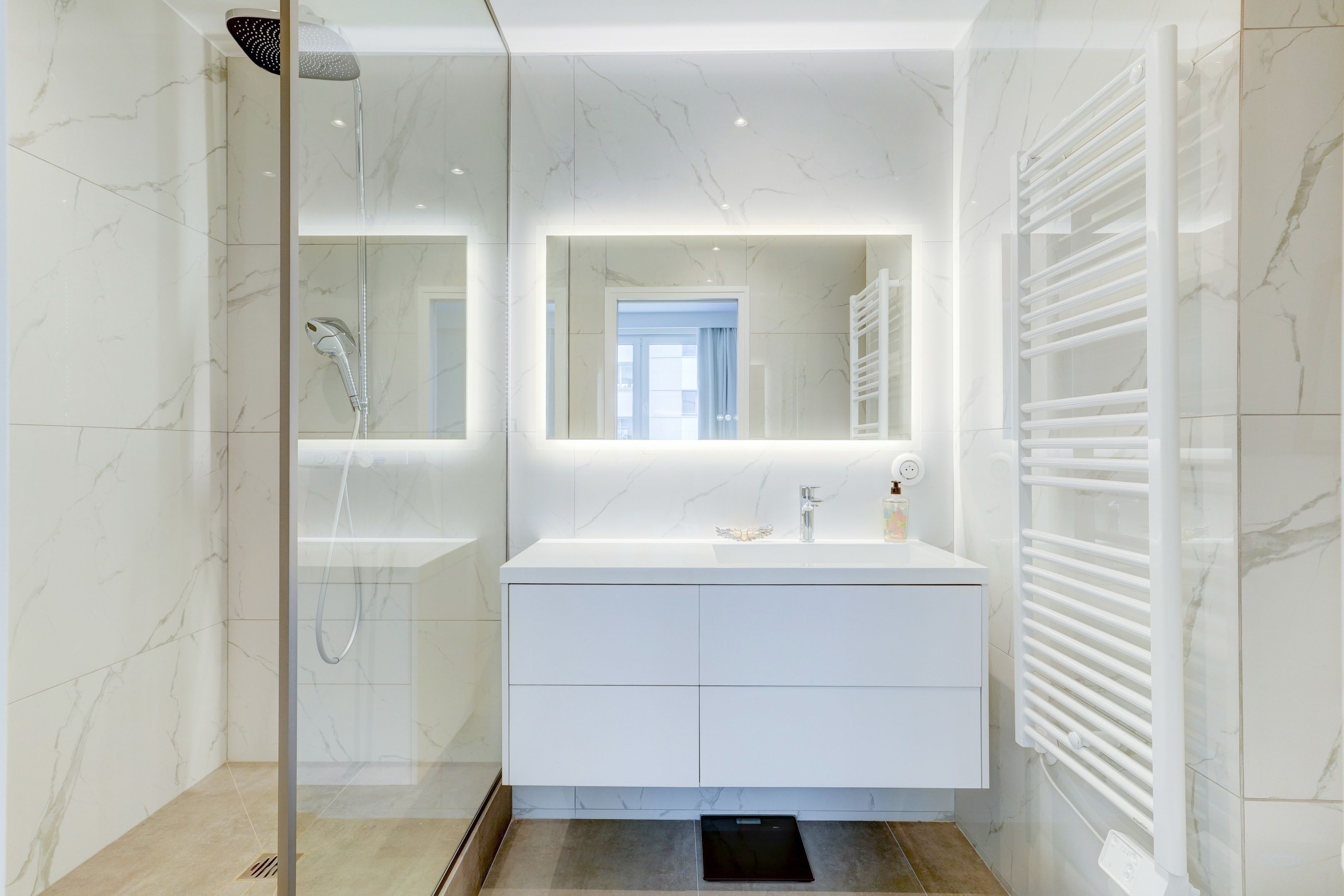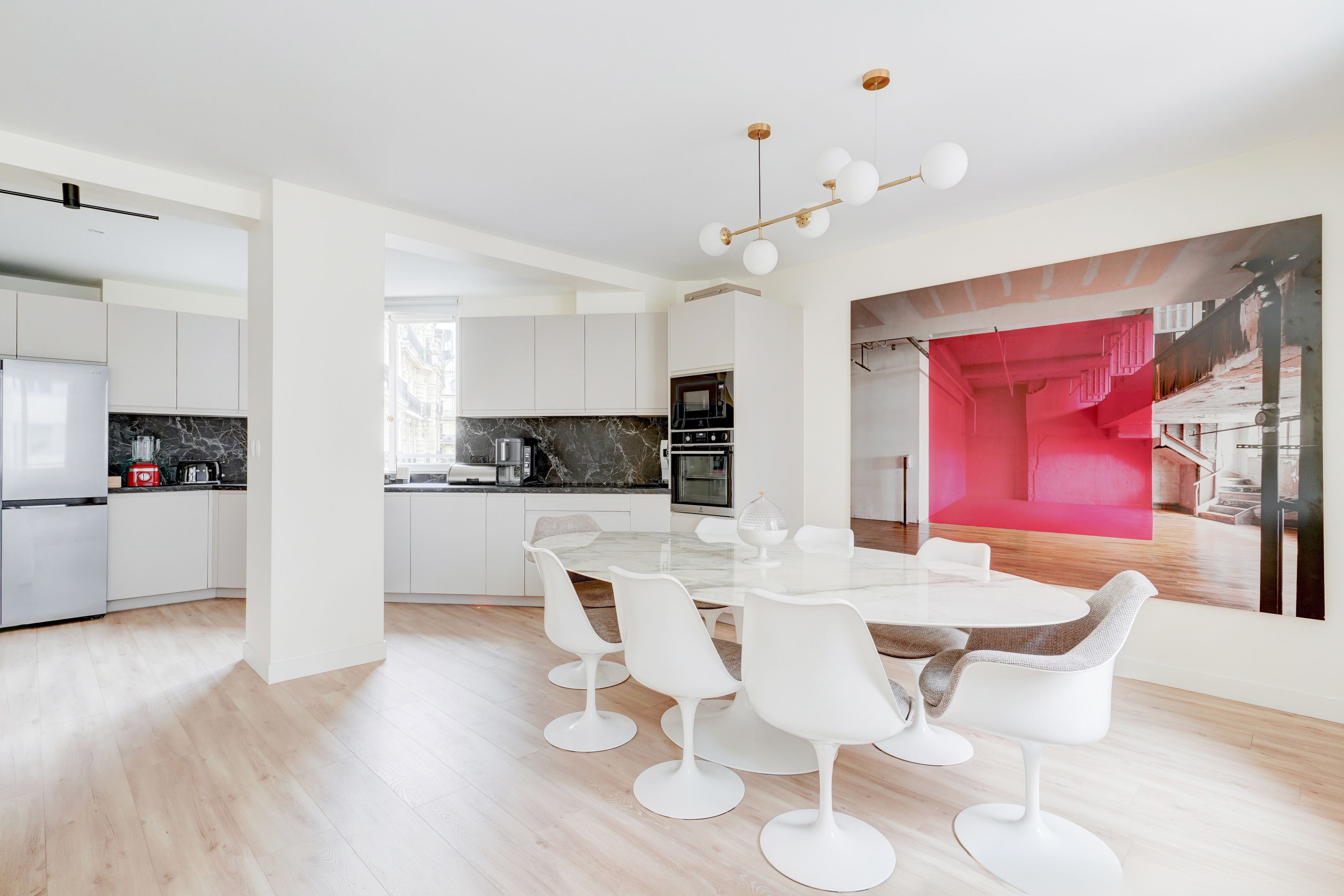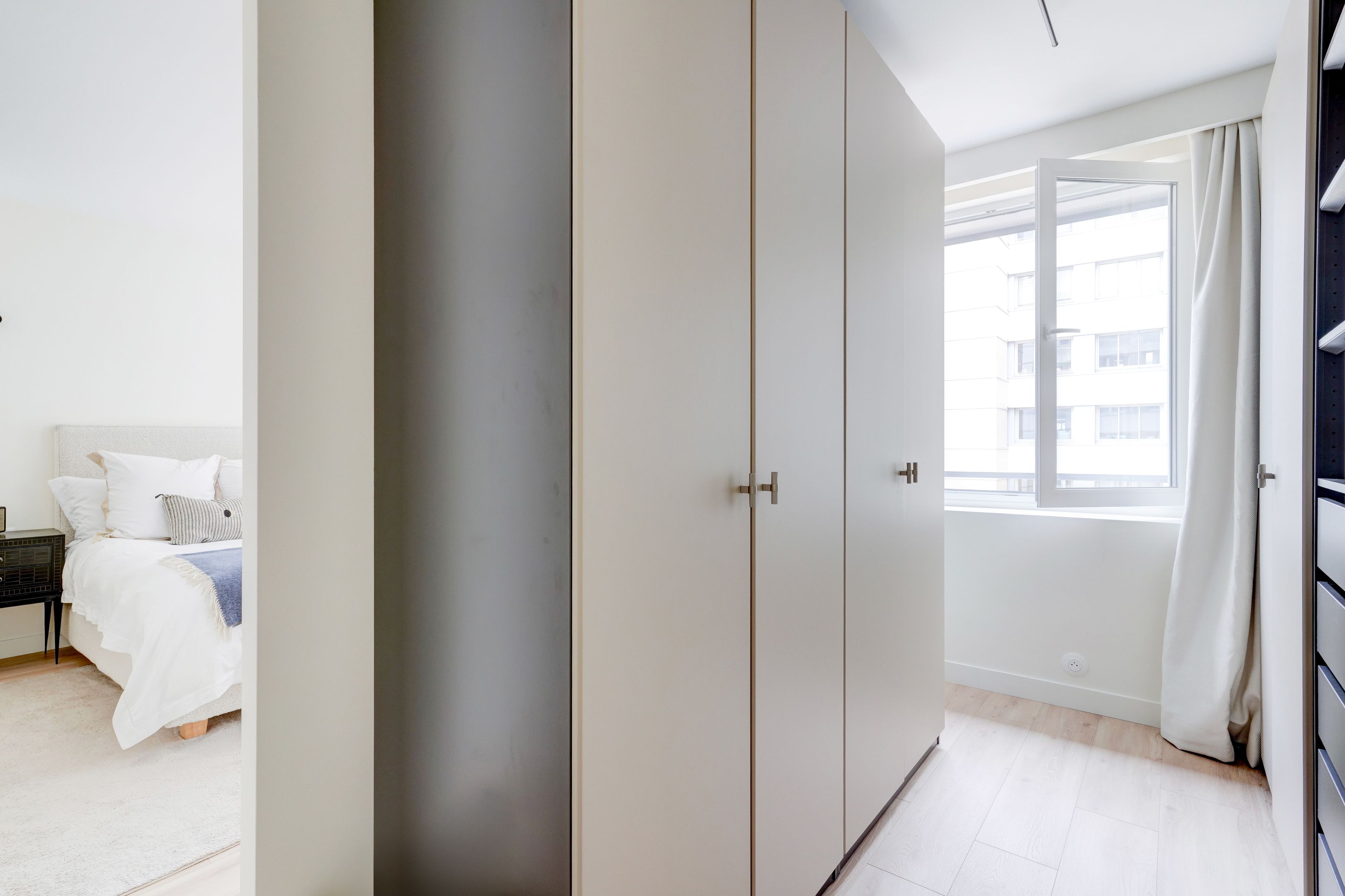 Idéalement situé à deux pas des commerces de la rue de. la Pompe et du lycée Janson de Sailly , appartement lumineux et calme de 134m2 parfaitement rénové dans un esprit contemporain aux prestations de qualité , au 3ème étage , seul sur le palier , d'un immeuble récent . Vaste double séjour avec cuisine à l'américaine équipée et aménagée , cheminée à éthanol, chambre parentale avec dressing et salle de bains (baignoire , douche, toilettes) , deux chambres, dotées chacune d'une salle d'eau, deux toilettes dont un d'invités, nombreux rangements, un cagibi. Deux caves , un box en location accessible directement par ascenseur .
