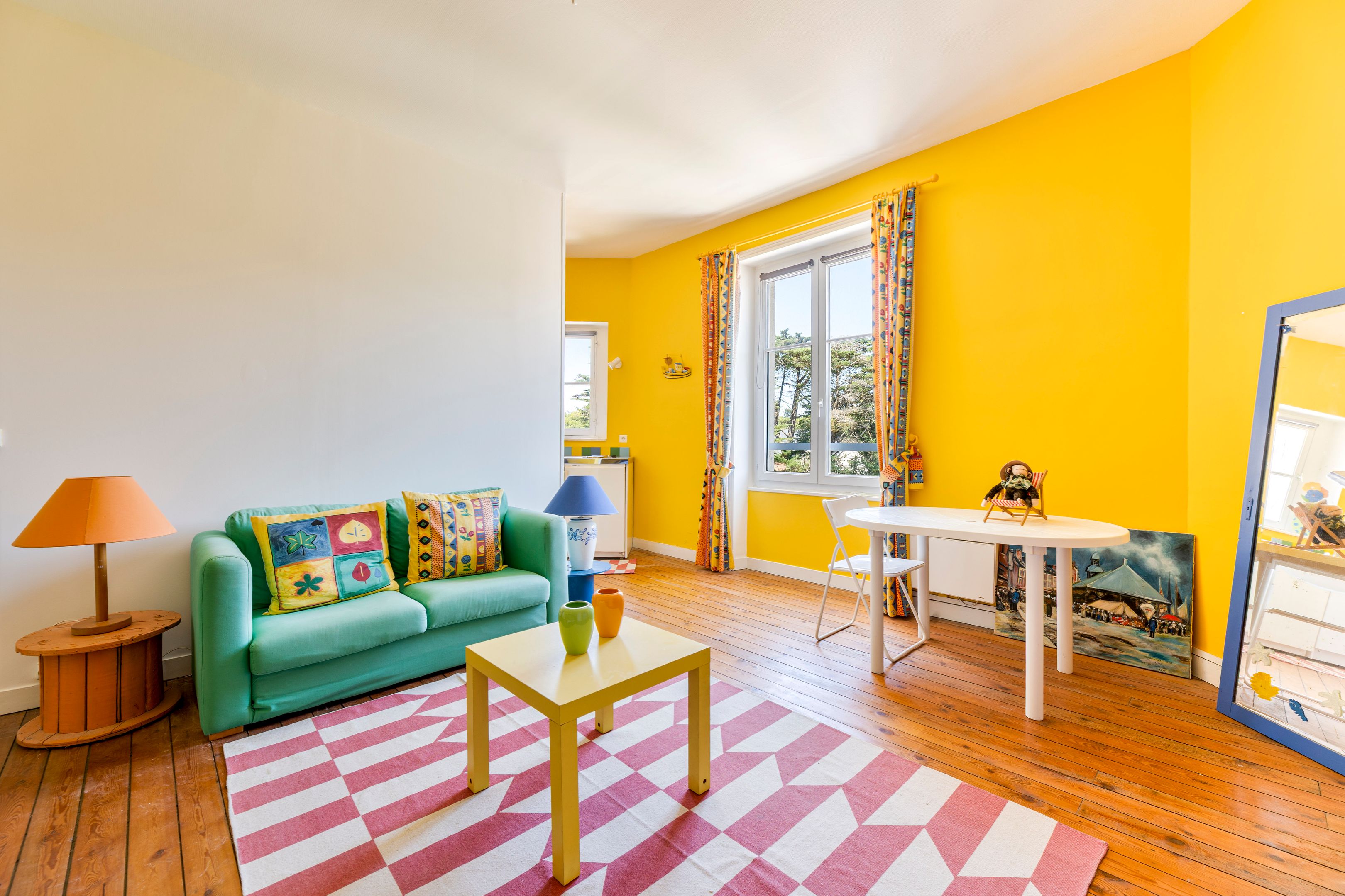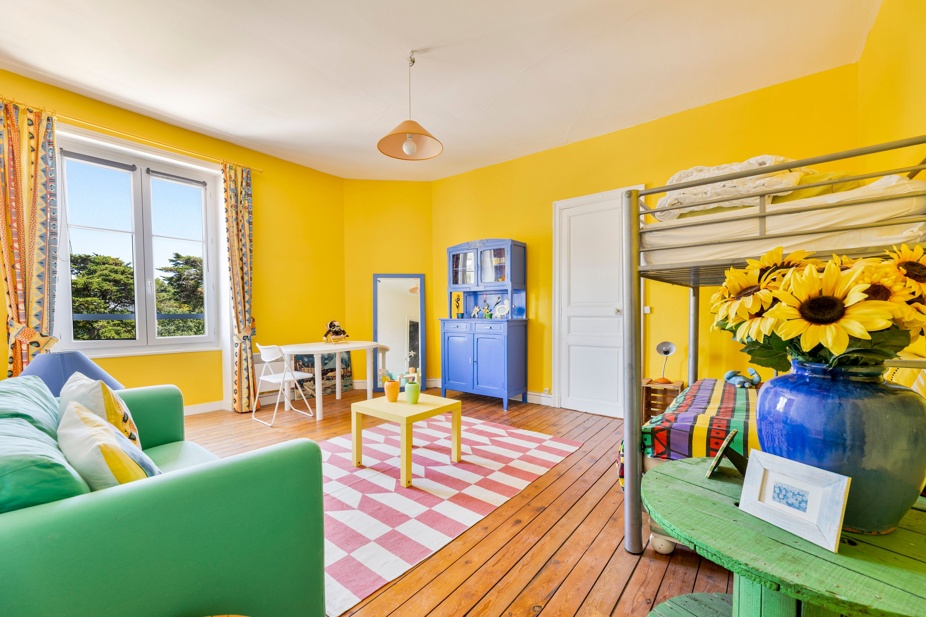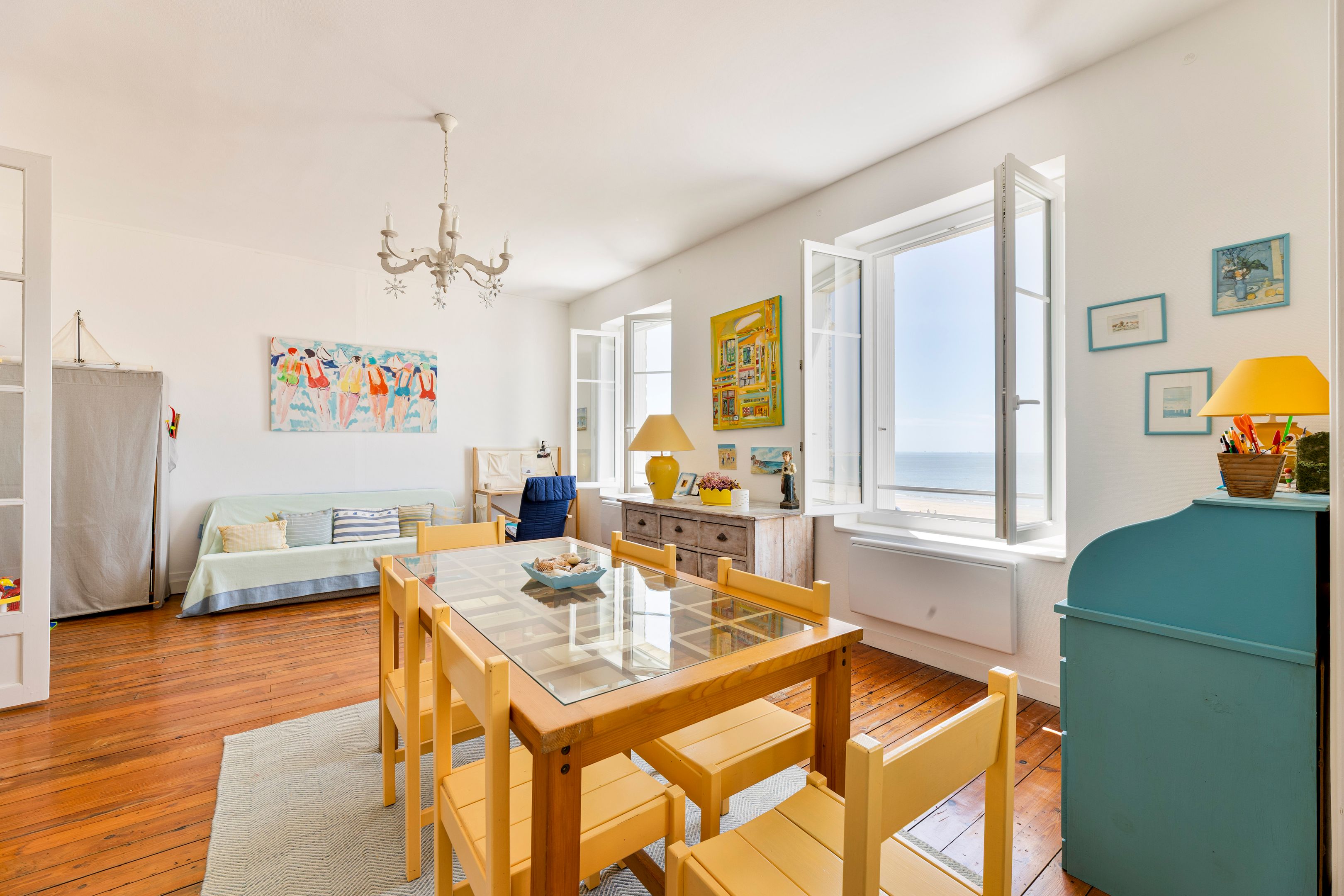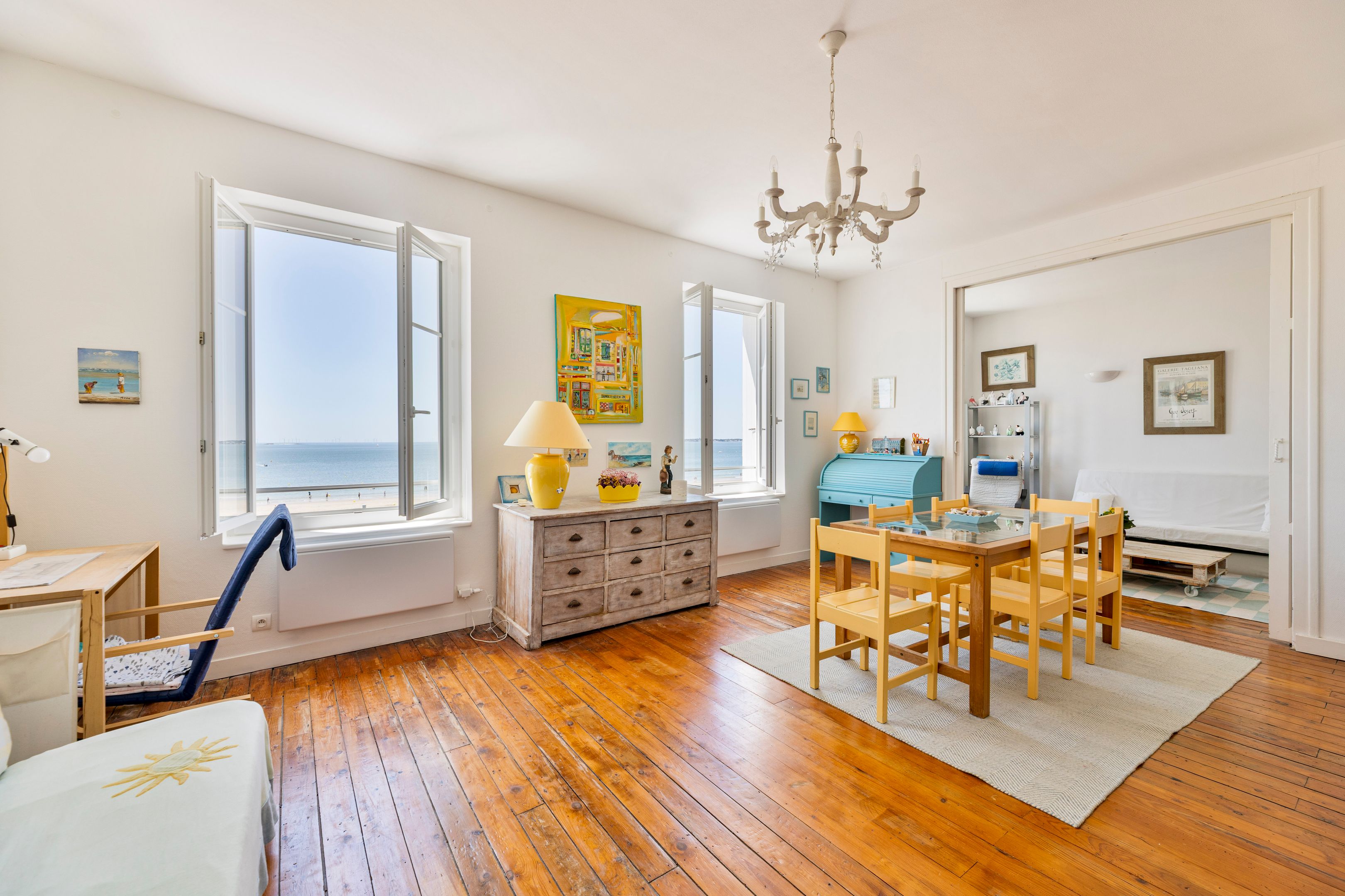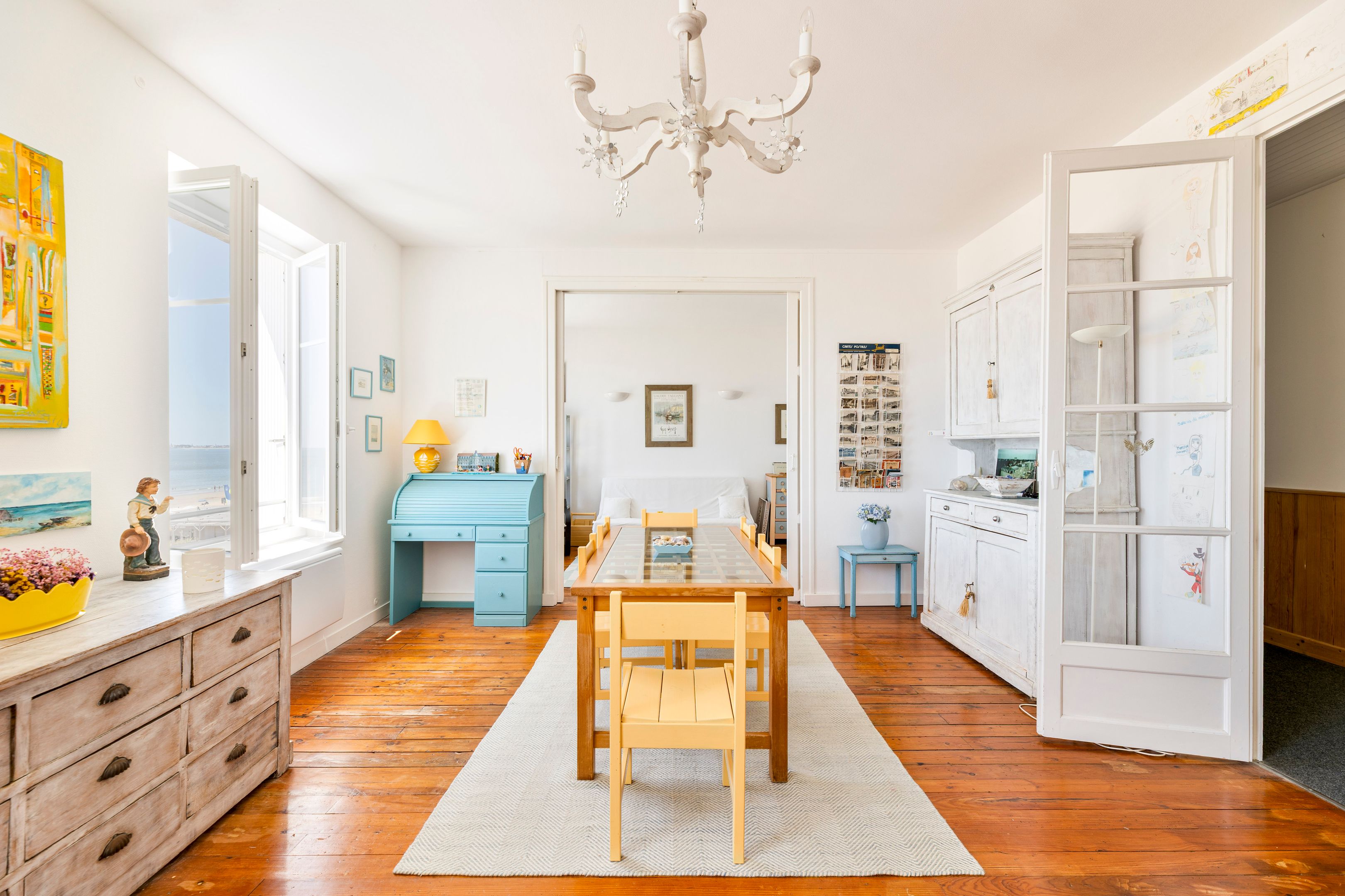 Résidence historique et emblématique de Pornichet, à proximité des commerces, de la gare et du marché, vaste appartement de plus de 130m². Entrée, spacieuse pièce de réception lumineuse, cuisine, arrière cuisine, 3 chambres, salle de bains, toilettes indépendantes.Studio donnant sur l'arrière de la résidence communiquant avec l'appartement (séjour cuisine et salle d'eau avec toilettes). Garage, cave et 2 places de parking extérieur.