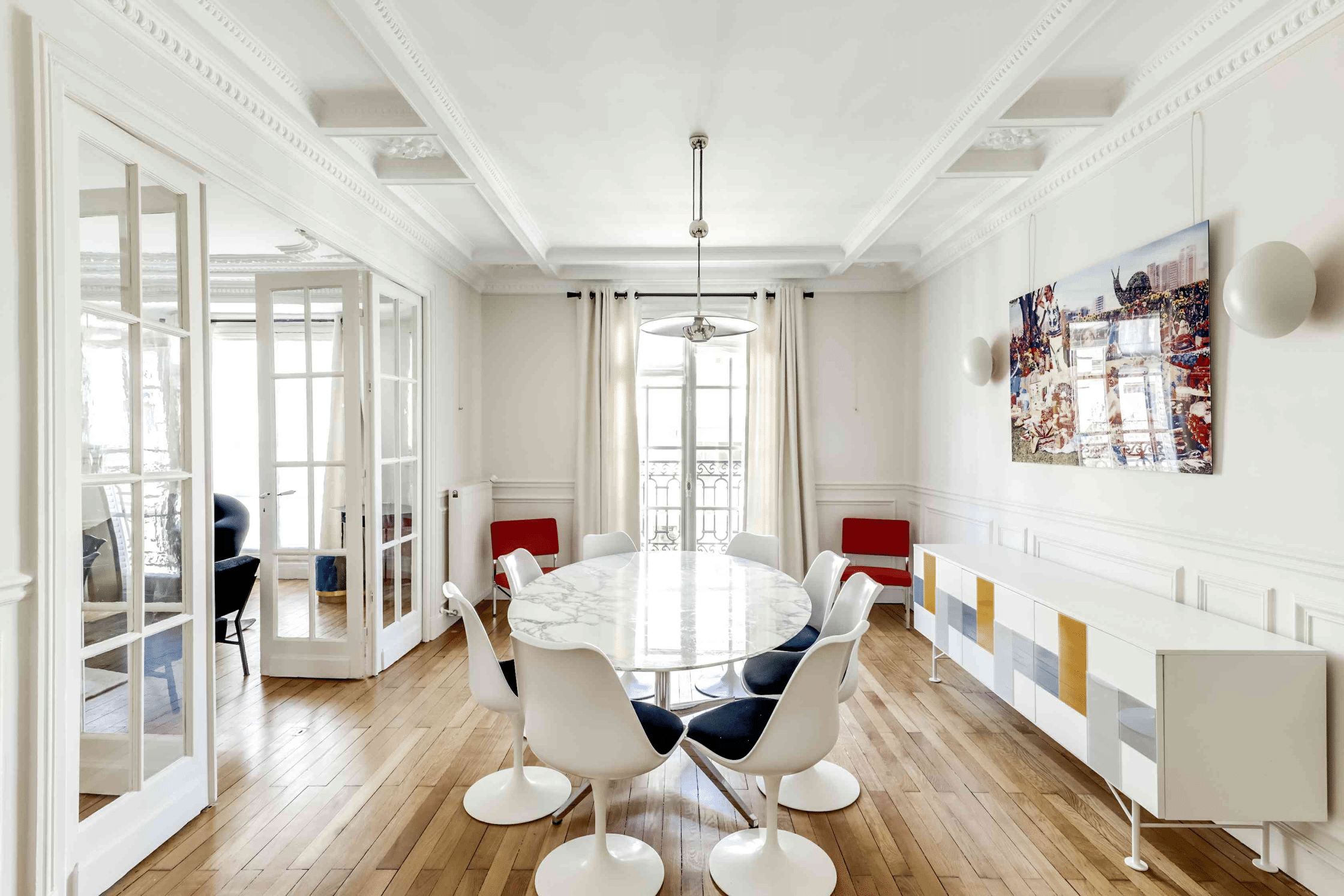 Immeuble en pierre de taille, sécurisé, idéalement situé à proximité immédiate de la station Porte de Champerret, appartement meublé de 126 m², au 5ème étage, desservi par un ascenseur. Entrée, salon et salle à manger sur rue, cuisine séparée aménagée et équipée, suite parentale (chambre avec placards, salle de douche et toilettes), deux chambres avec placards, salle de bains et toilettes séparées. Cave. Résidence avec services inclus : internet (box), ménage (4 h/mois), alarme. Location en bail Loi ALUR ou bail Code civil. Disponible le 2/5/2026.