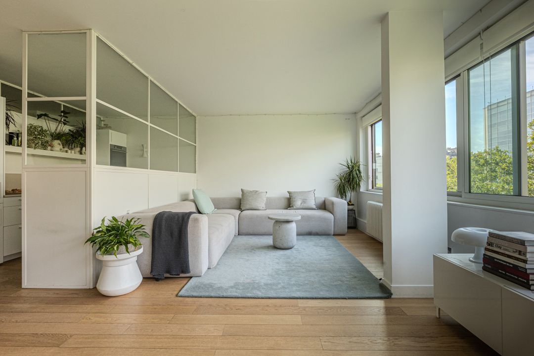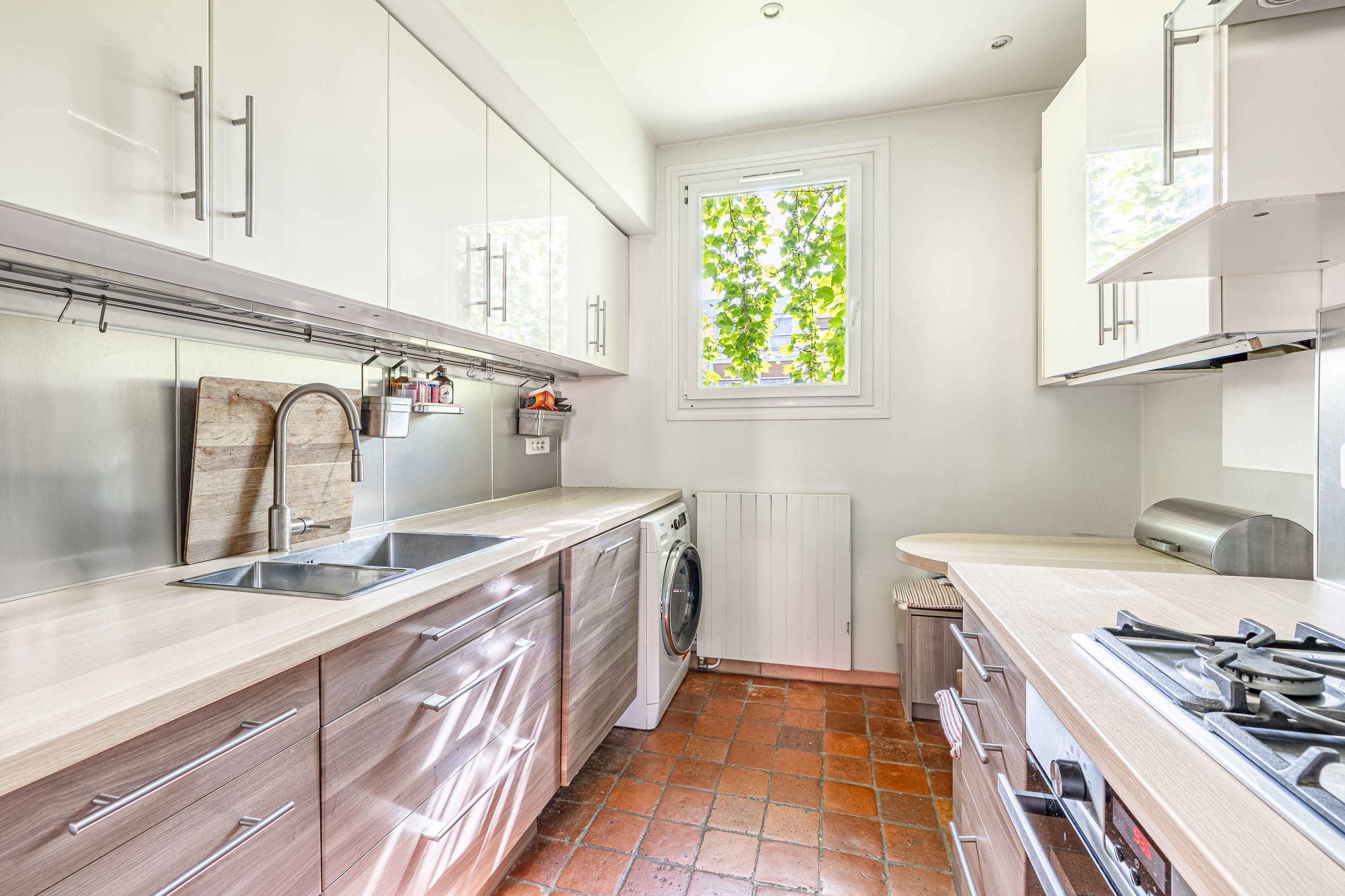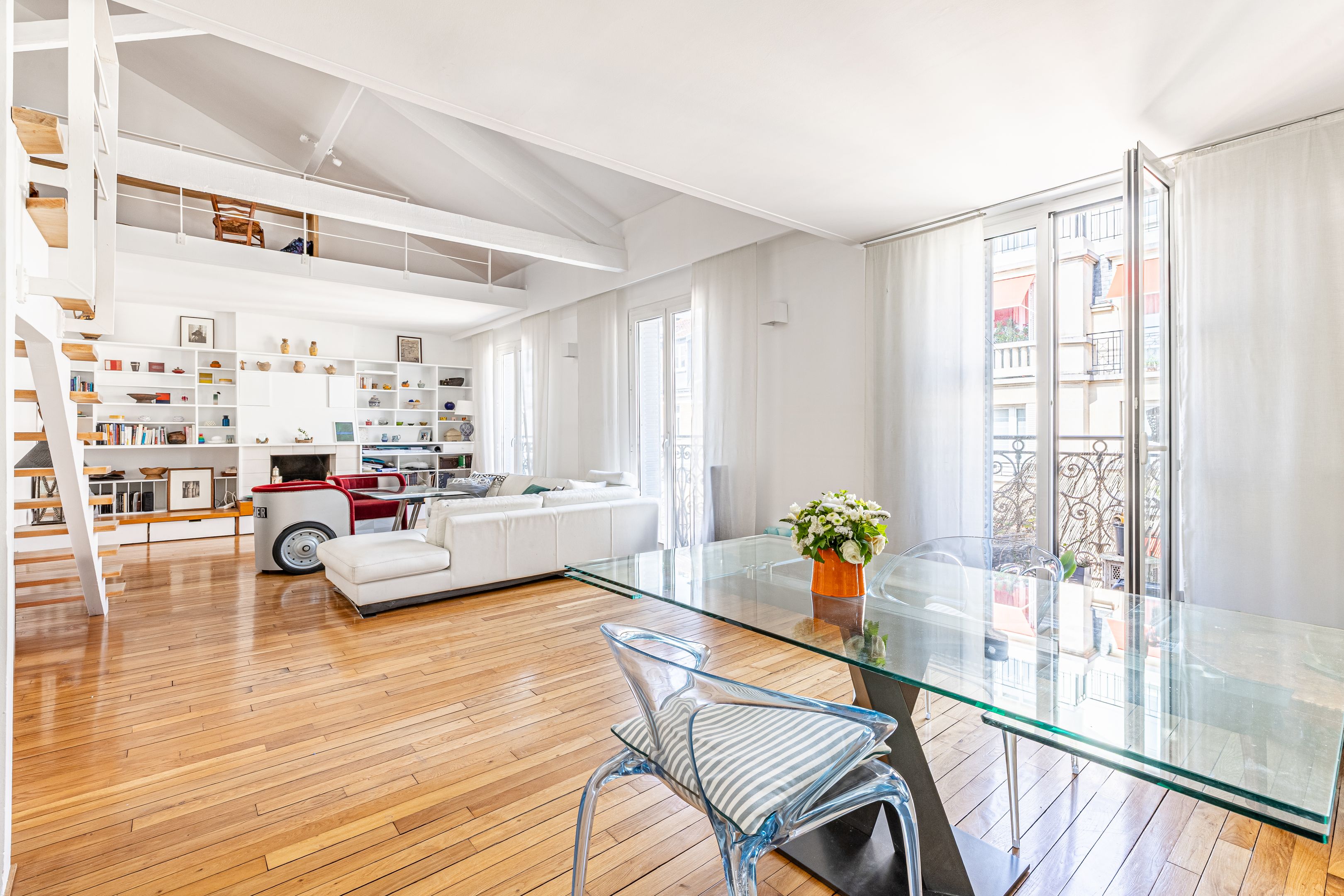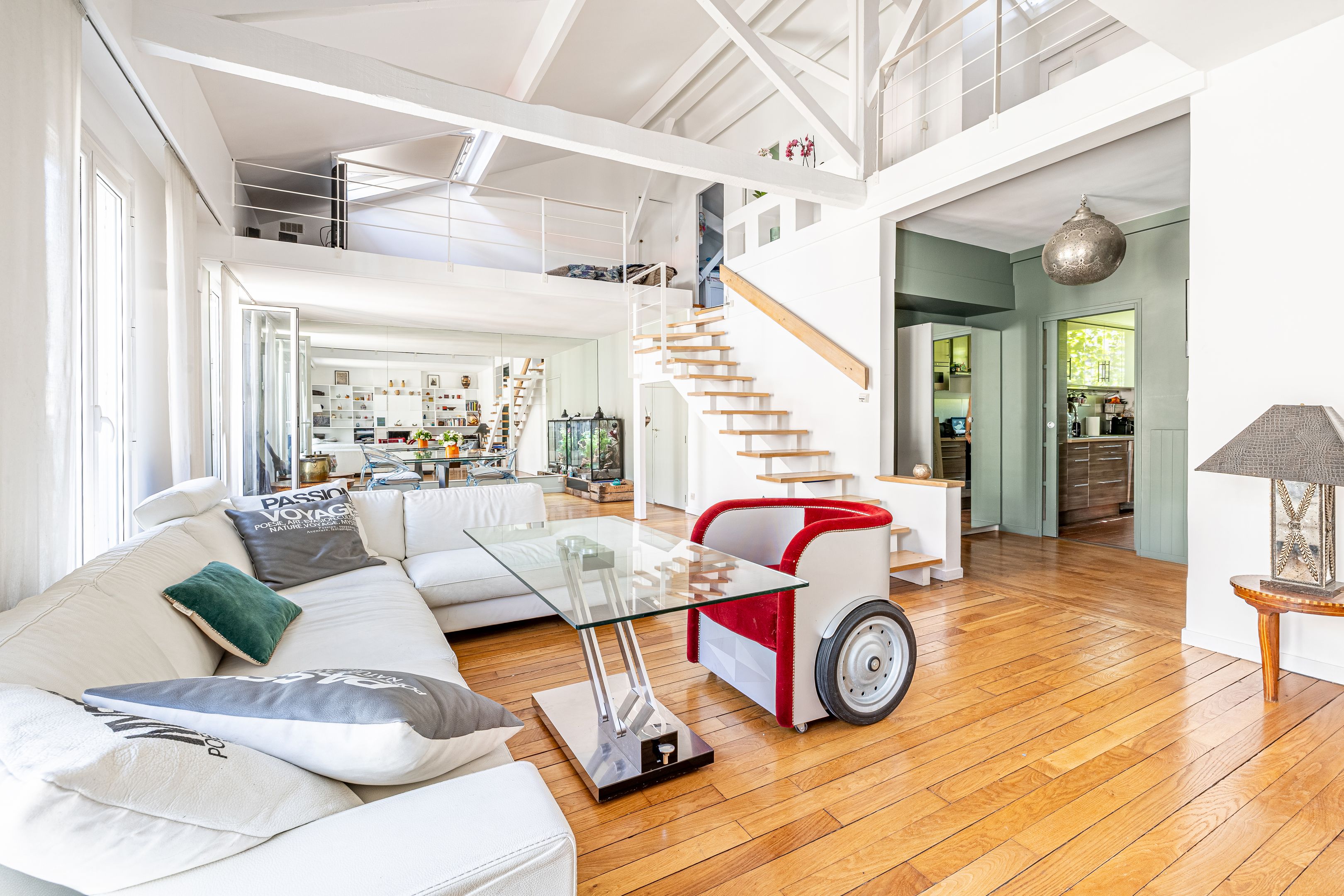 Agréable villa à proximité immédiate des commerces, des transports et des écoles de renom. Immeuble ancien en pierre et brique aux élégantes parties communes et bénéficiant des services d'un gardien, appartement de type duplex à l'esprit maison de 101 m² loi Carrez et 142 m² au sol, situé au 5ème et dernier étage desservi par ascenseur, en très bon état, au charme contemporain et disposant d'une très belle hauteur sous plafond, d'une agréable luminosité, d'un balcon filant avec vue sur la tour Eiffel ainsi que d'un excellent plan. Entrée, vaste double réception jouissant d'une grande hauteur sous plafond et du charme des poutres, cuisine séparée, chambre parentale (dressing et salle de bains), 2 chambres d'enfant au second niveau, bureau et espace télévision en mezzanine, salle d'eau, toilettes séparées, nombreux rangements dont un grenier de belle taille. Cave.