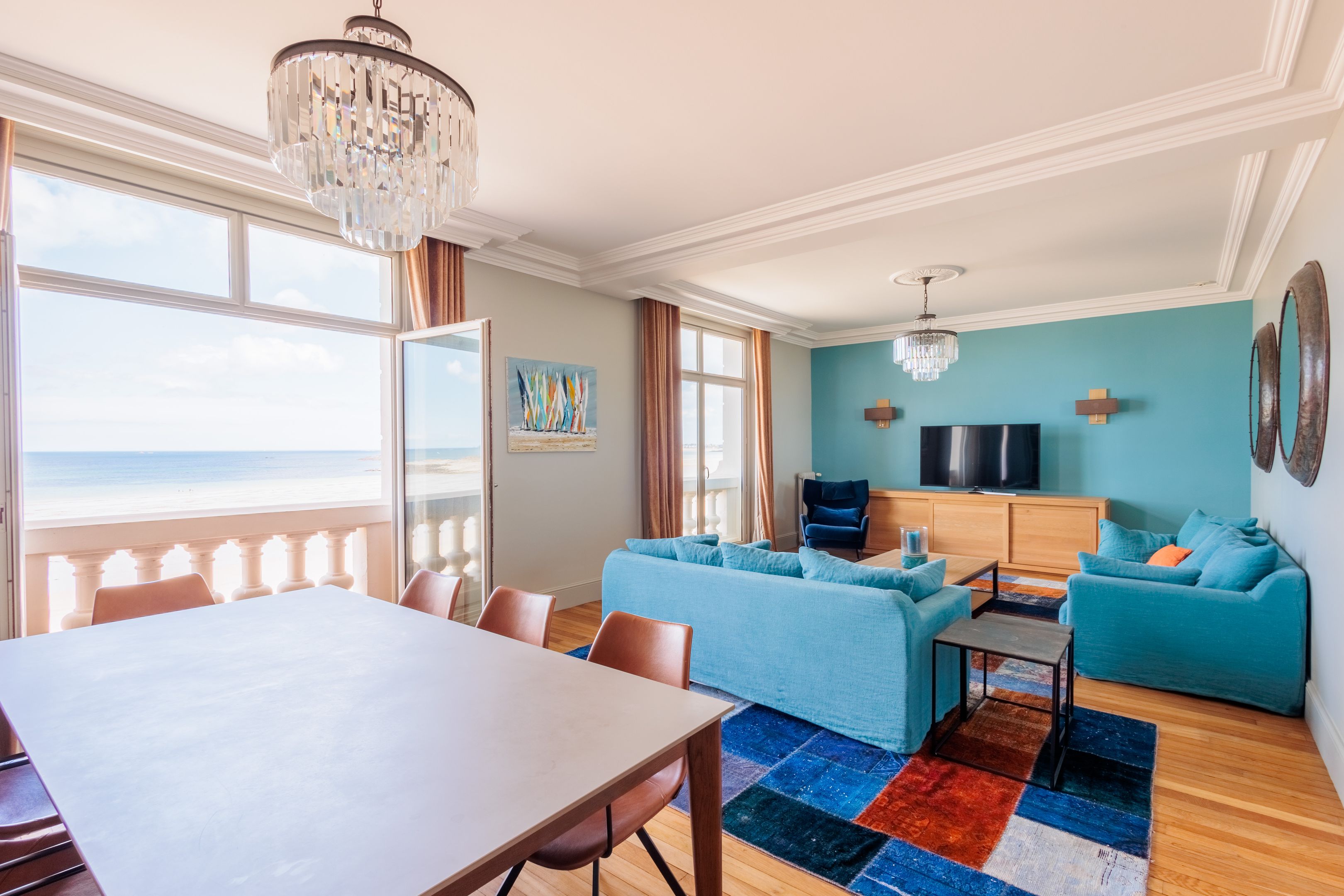 VENDU PAR BRETEUIL - Immeuble ancien de bon standing idéalement situé face à la plage du Sillon. Au 2ème étage avec ascenseur, splendide appartement familial de 134m² entièrement rénové par architecte avec des matériaux et prestations de très grande qualité. Ce bien lumineux, traversant et en parfait état offre de très beaux volumes et une pleine vue mer. Entrée, vaste séjour - salle à manger avec larges baies vitrées ouvrant sur la mer, salon, cuisine ouverte entièrement équipée, 3 chambres de belle taille dont une suite parentale avec vue mer, 3 salles d'eau dont 2 attenantes aux chambres, nombreux rangements. Cave et place de stationnement incluse.