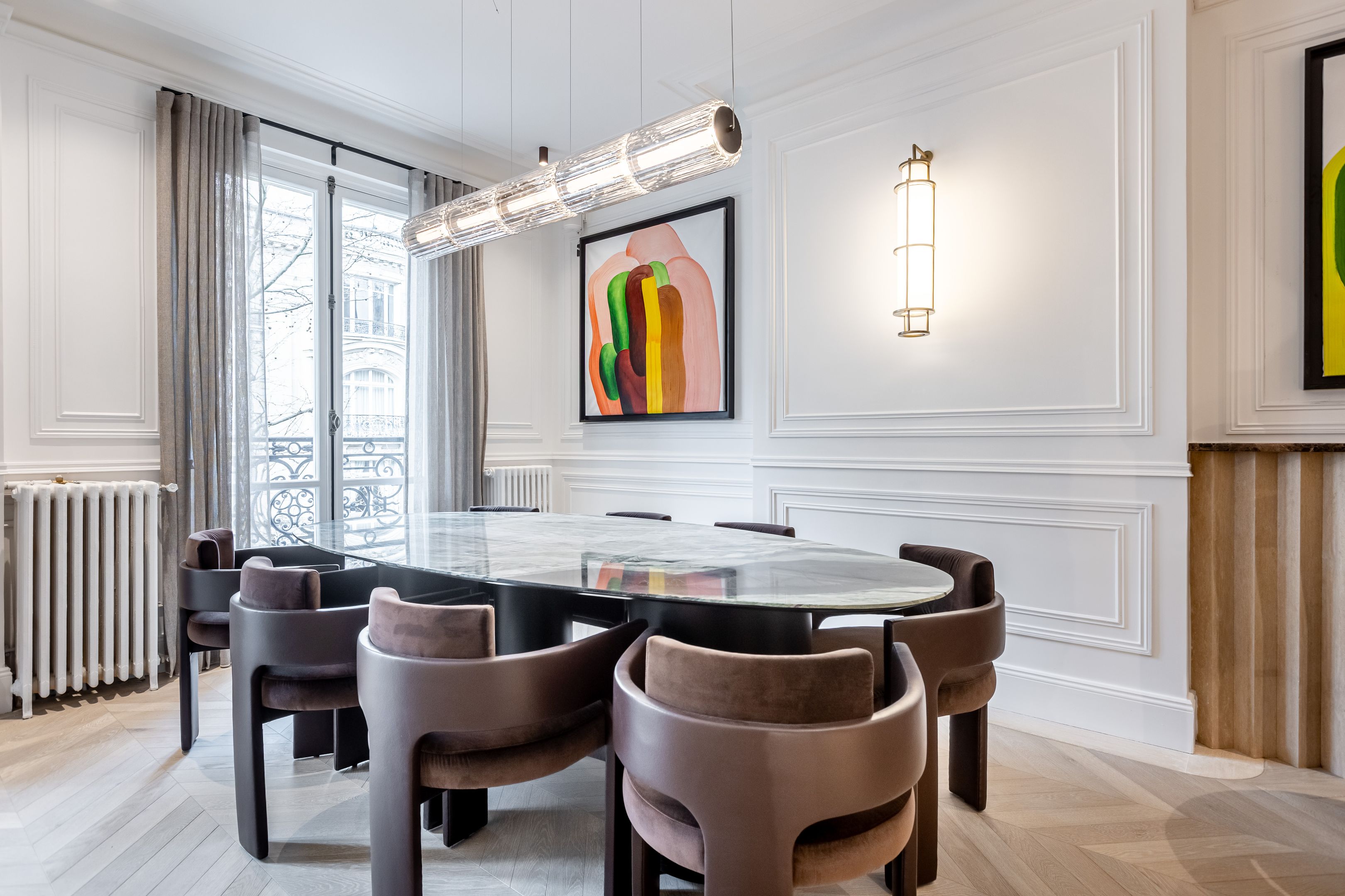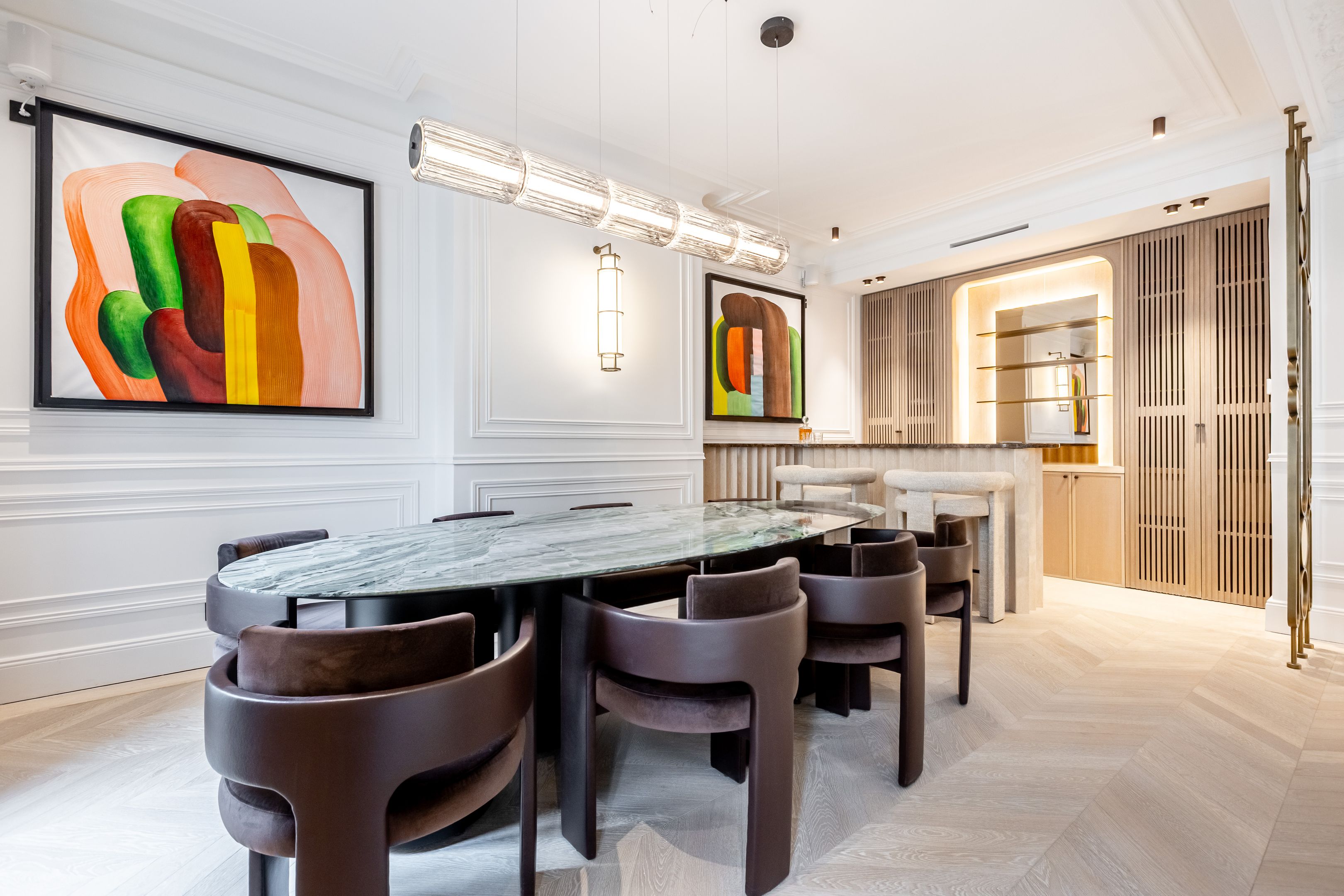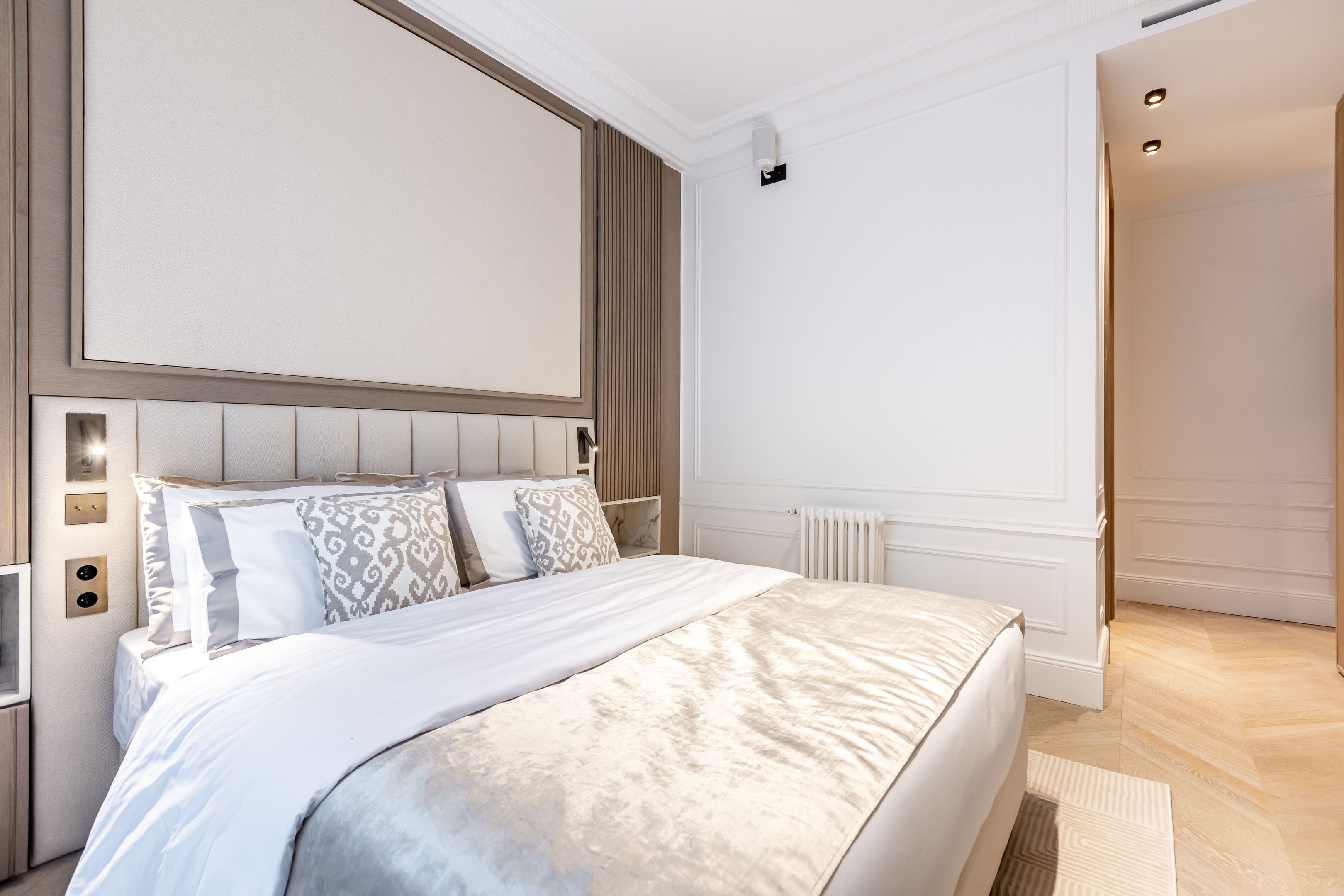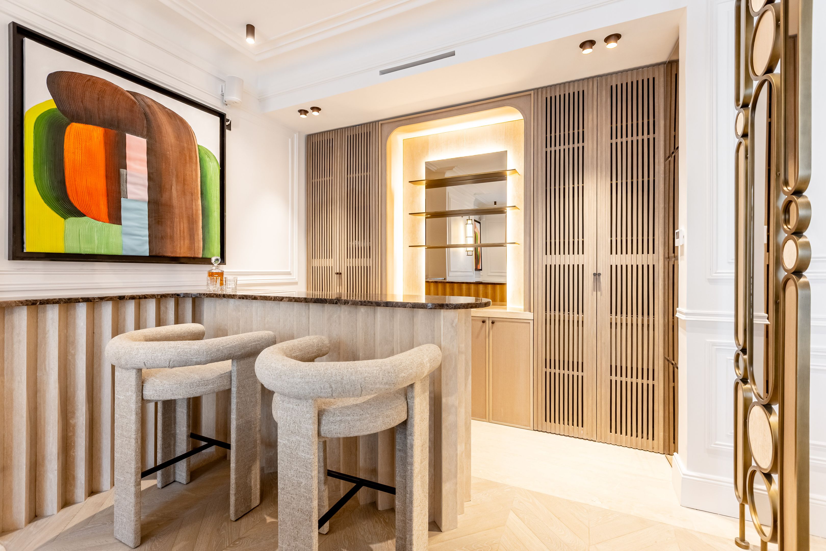 Belle adresse, à deux pas de toutes les commodités, immeuble haussmannien de standing, 3ème étage, superbe appartement climatisé de 178 m² entièrement rénové avec des matériaux de grande qualité. Entrée, double réception, cuisine entièrement aménagée et équipée, trois suites complètes (salles de bains, dressing, toilettes). Deux caves au sous-sol. Vente meublée.