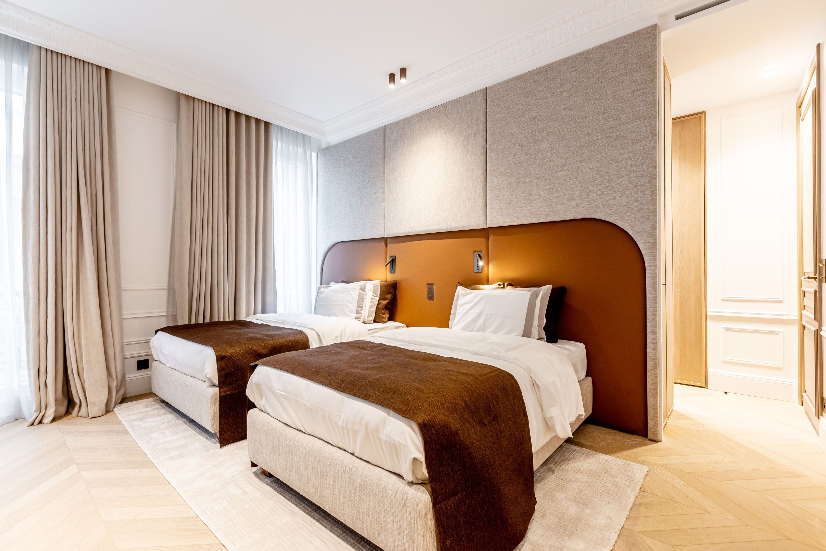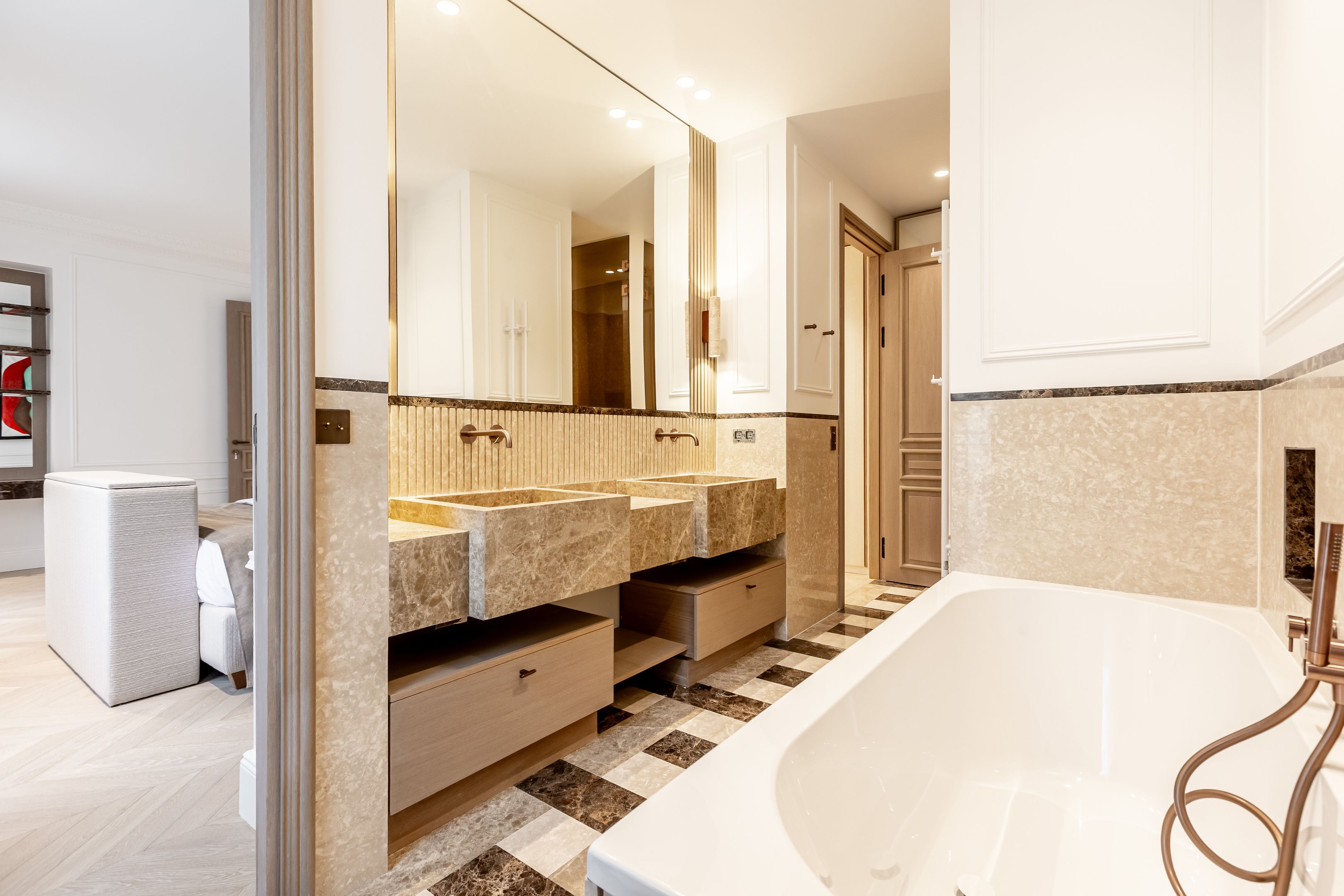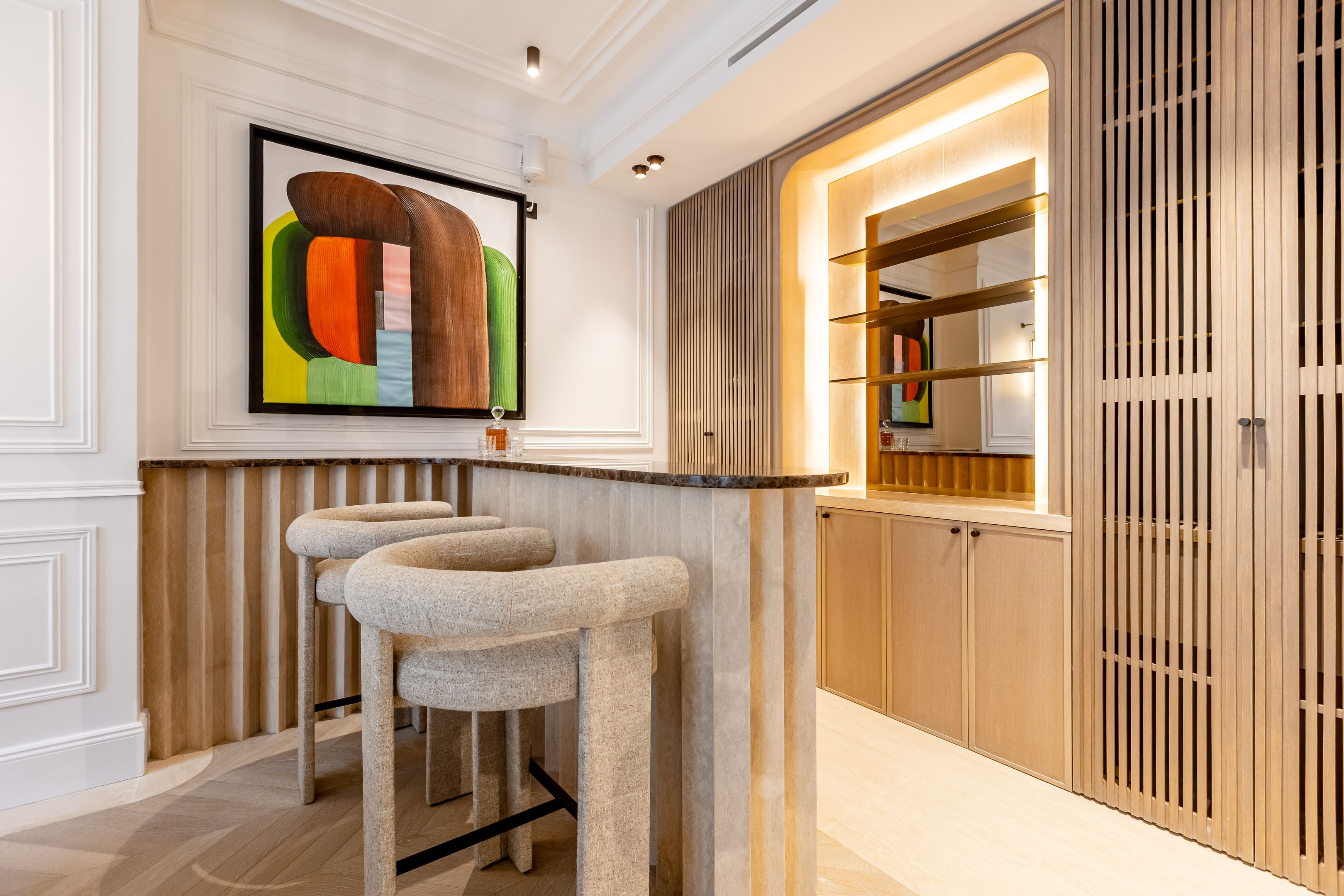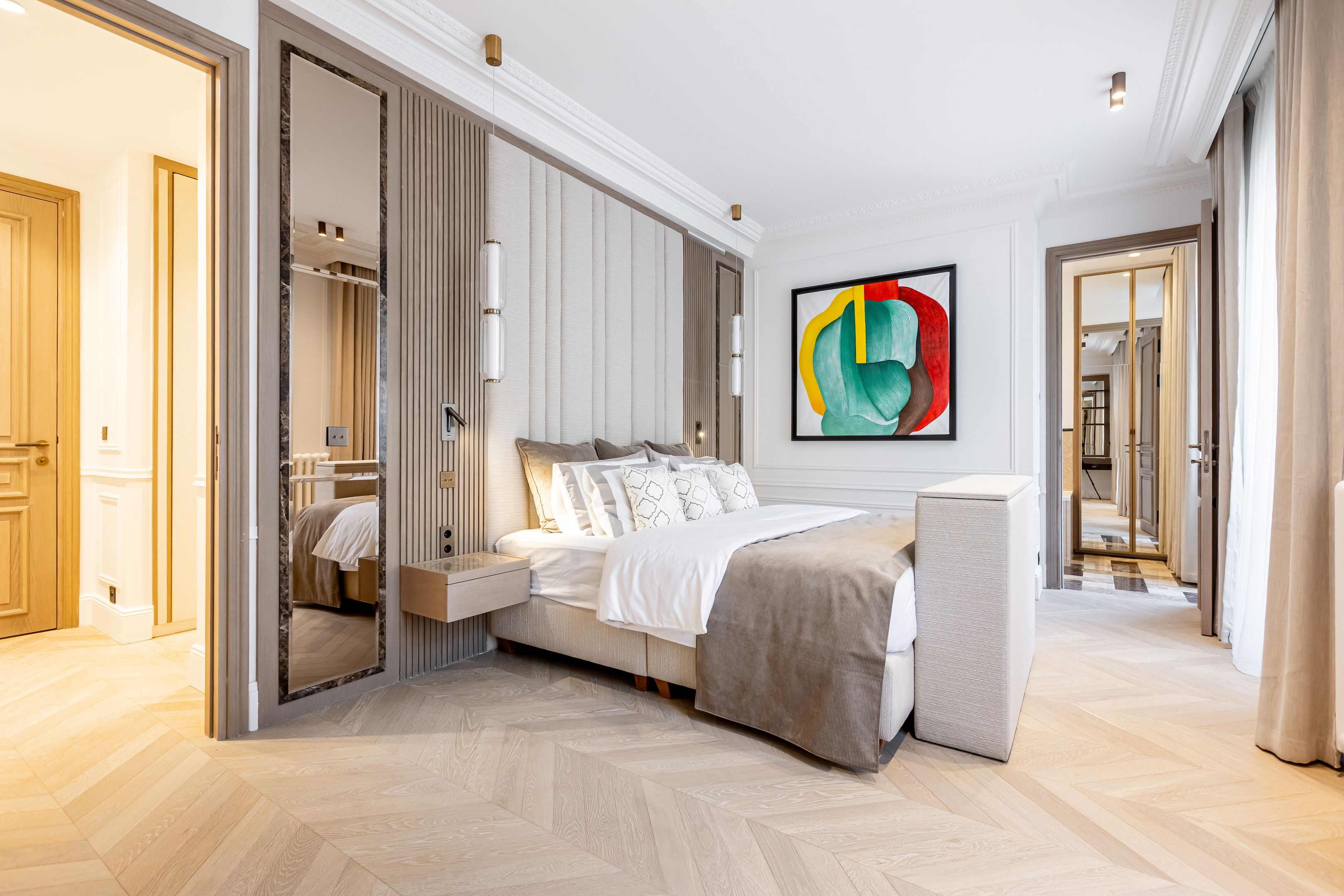 Belle adresse, à deux pas de toutes les commodités, immeuble haussmannien de standing, 3ème étage, superbe appartement climatisé de 178 m² entièrement rénové avec des matériaux de grande qualité. Entrée, double réception, cuisine entièrement aménagée et équipée, trois suites complètes (salles de bains, dressing, toilettes). Deux caves au sous-sol. Vente meublée.