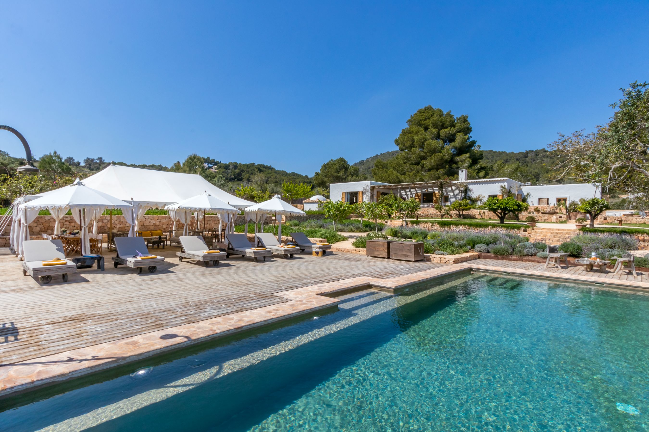 Située sur un terrain de 3 500 m2, elle offre plusieurs espaces de détente extérieurs, salons, tables et chaises, chaises longues. Entre charme rustique et contemporain, vous ne pourrez qu'apprécier ce petit bout de paradis.