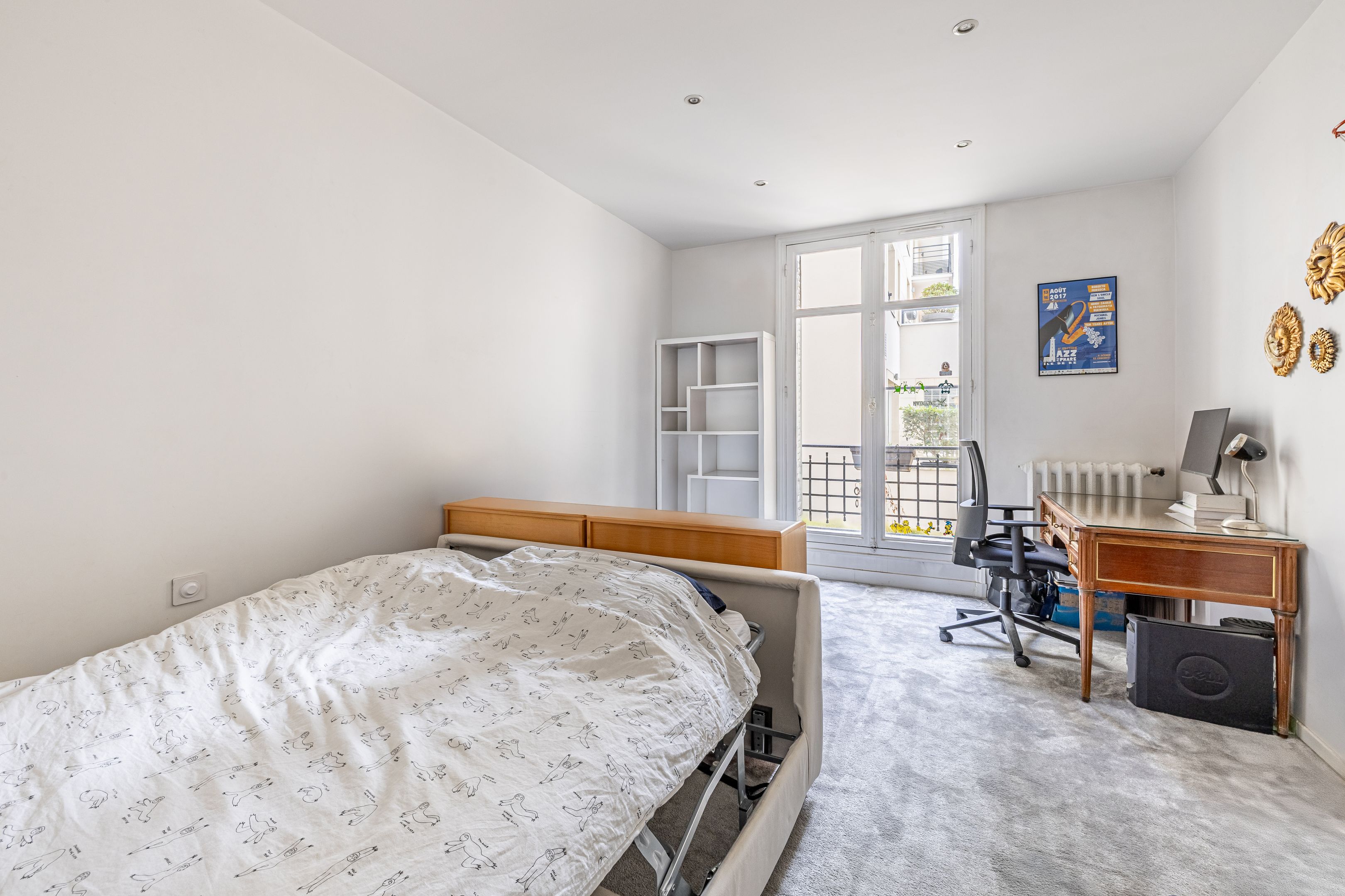 Village d’Auteuil.Immeuble pierre et brique de standing situé dans une voie privée à proximité immédiate de toutes les commodités et des écoles de renom.Au premier étage, appartement familial de 145,41m² bénéficiant d'une rénovation contemporaine de qualité et de beaux volumes. Galerie d’entrée, double réception, cuisine indépendante aménagée et équipée avec coin dînatoire, espace bureau dans l'entrée, trois chambres dont une suite parentale avec salle de bains, douche et toilettes, nombreux rangements sur mesure, salle d’eau, toilettes invités. Débarras/buanderie sur le palier de service en jouissance privative exclusive. Cave. Possibilité d'acquérir une chambre de service aménagée de 9,14m² au septième étage par escalier. Droit de stationnement dans la voie privée.