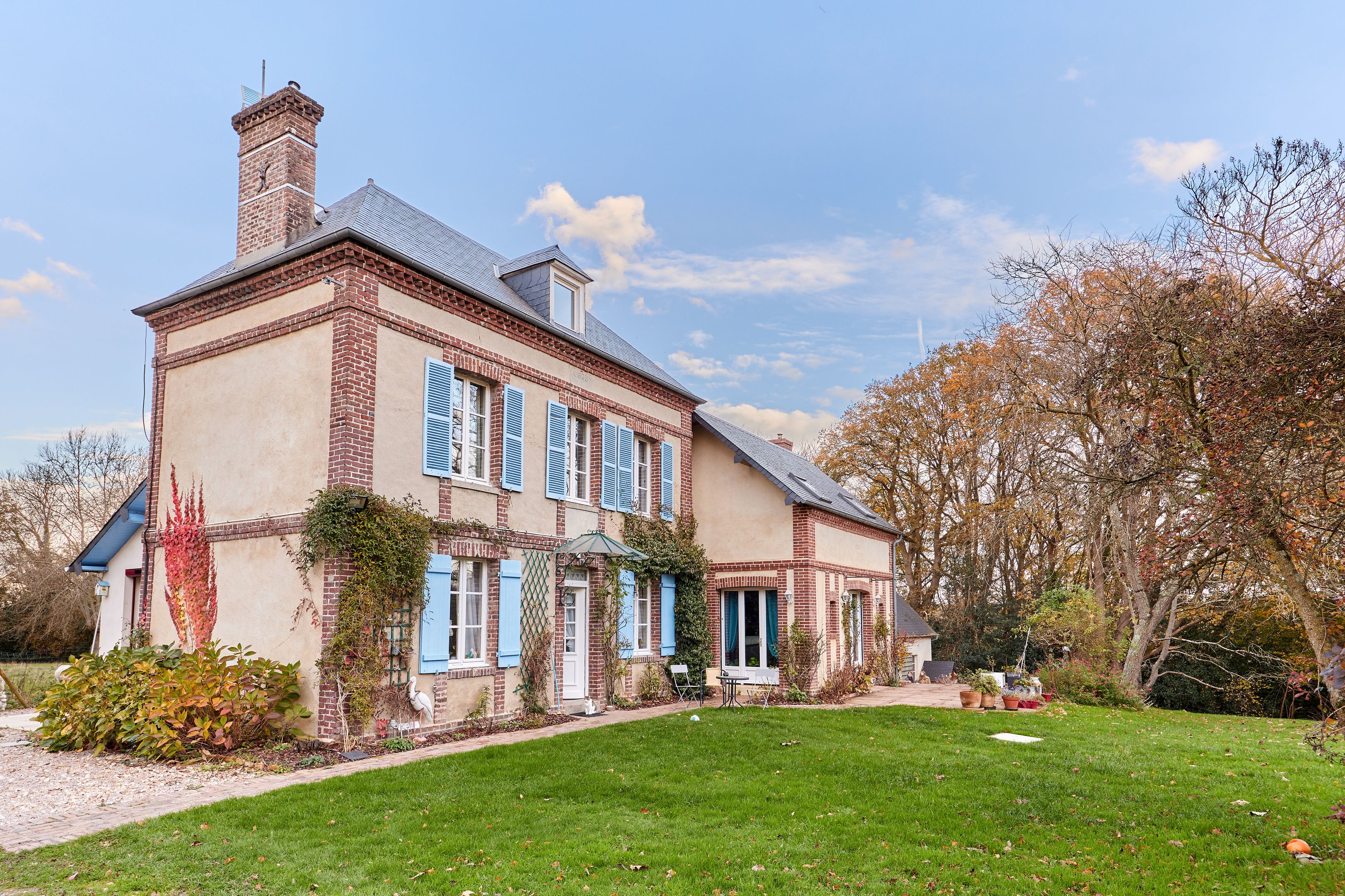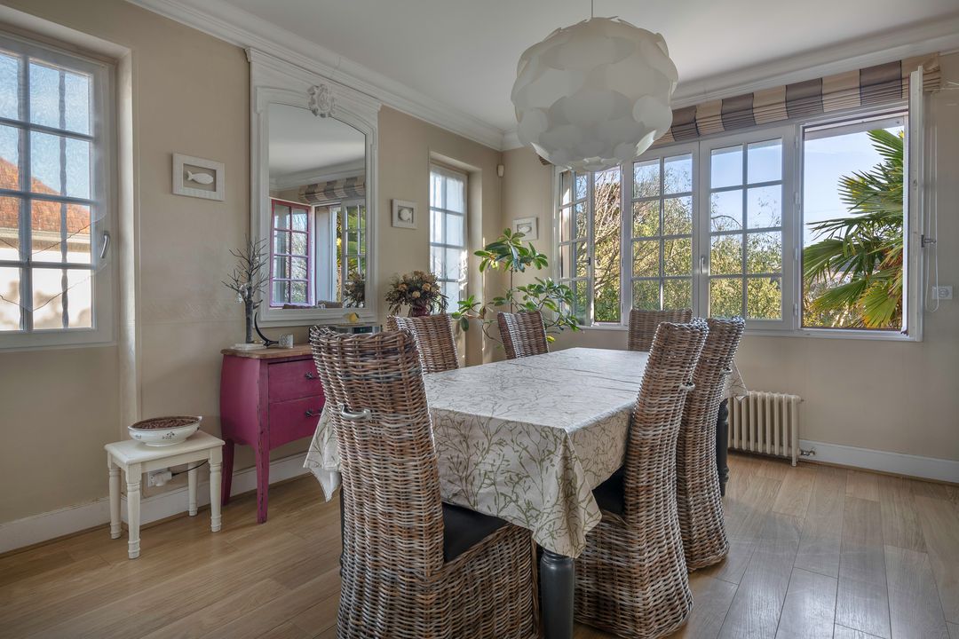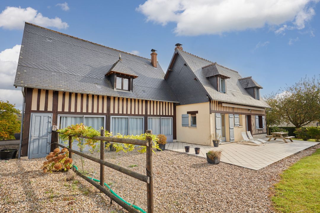 À 5 min de Honfleur, jolie maison de maître de 152 m² édifiée sur un terrain clos de 11 302 m² dont 5 000 m² de bois. Entrée, cuisine dinatoire entièrement équipée, salon avec insert à granulés ouvert sur la terrasse exposée sud-ouest, suite parentale avec salle d'eau, toilettes indépendantes. Au 1er étage : deux chambres, dressing, salle de bains, toilettes. Au 2ème étage : deux chambres. Espace de stockage accolé à la maison. En dépendance : atelier sur deux niveaux de 45 m² chacun avec cave en sous-sol et pigeonnier. Environ 2 000 m² de terrain constructible pouvant faire l'objet d'une division parcellaire pour deux lots.