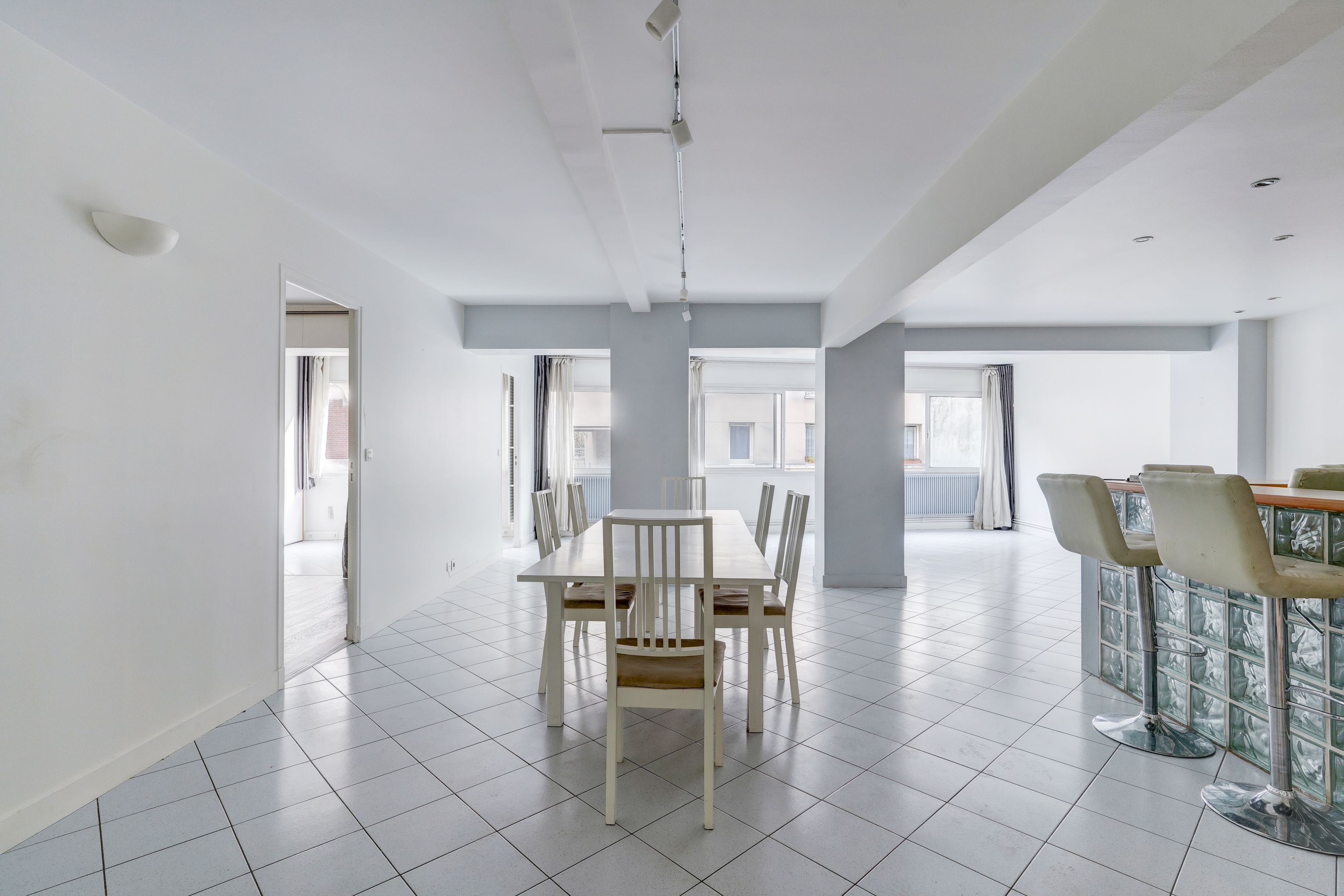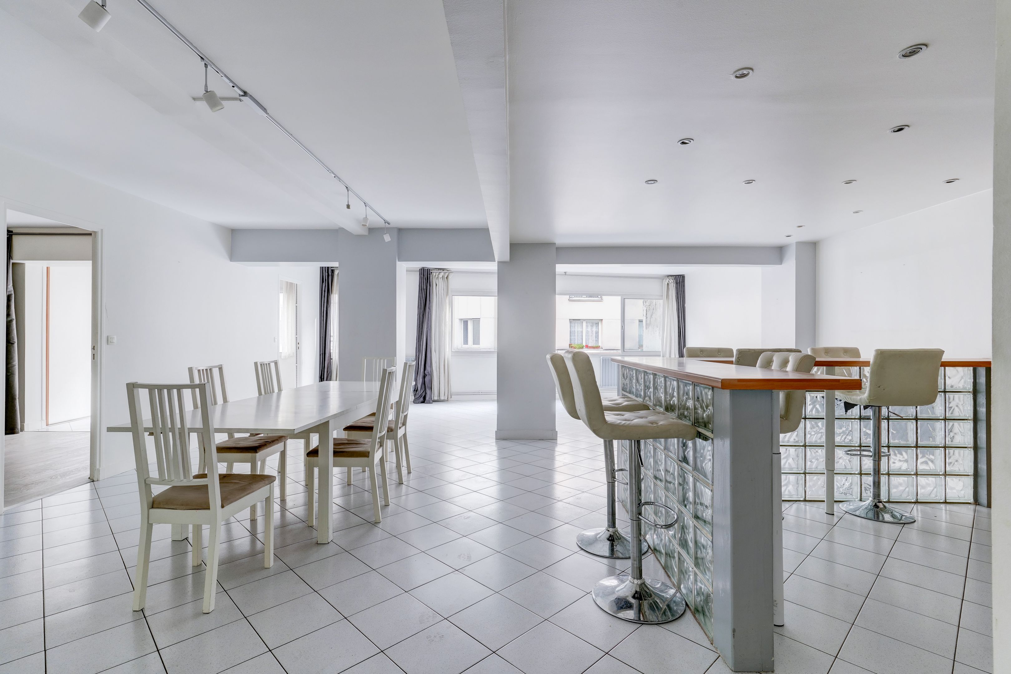Jourdain, à deux pas du village et de ses commerces, du parc de Belleville, des transports et des écoles. Immeuble récent des années 70, duplex de 138 m² bien distribué doté de beaux volumes. Au 1er étage : vaste double réception, cuisine ouverte aménagée et équipée, chambre parentale dotée de son dressing et de son bureau, salle de bains, buanderie et toilettes séparées. Au rez-de-chaussée : deux chambres bénéficiant de rangements, salle de bains, toilettes. Deux caves. Emplacement de parking à proximité immédiate de l'appartement en supplément pour 25 000 €. Exclusivité Breteuil.