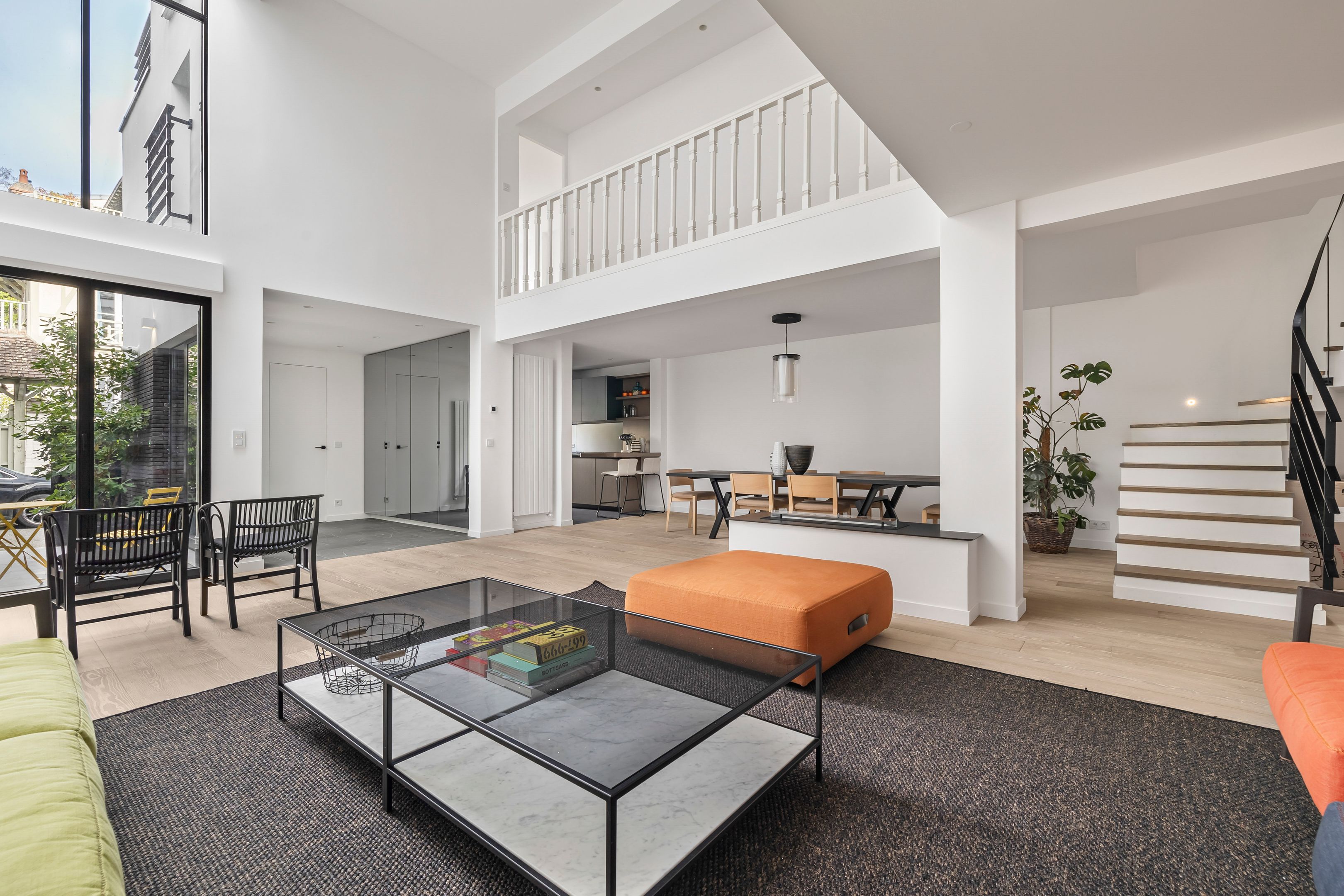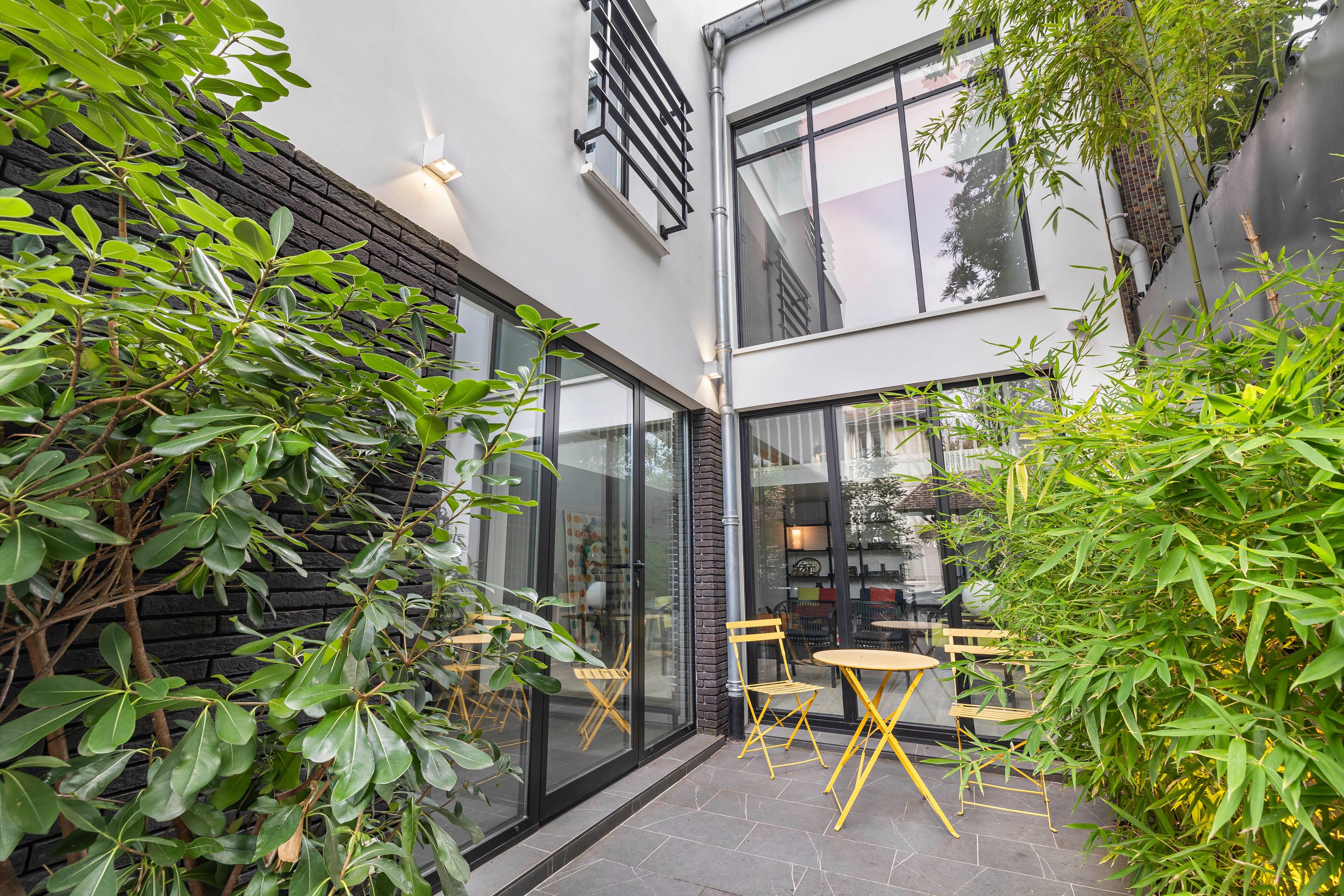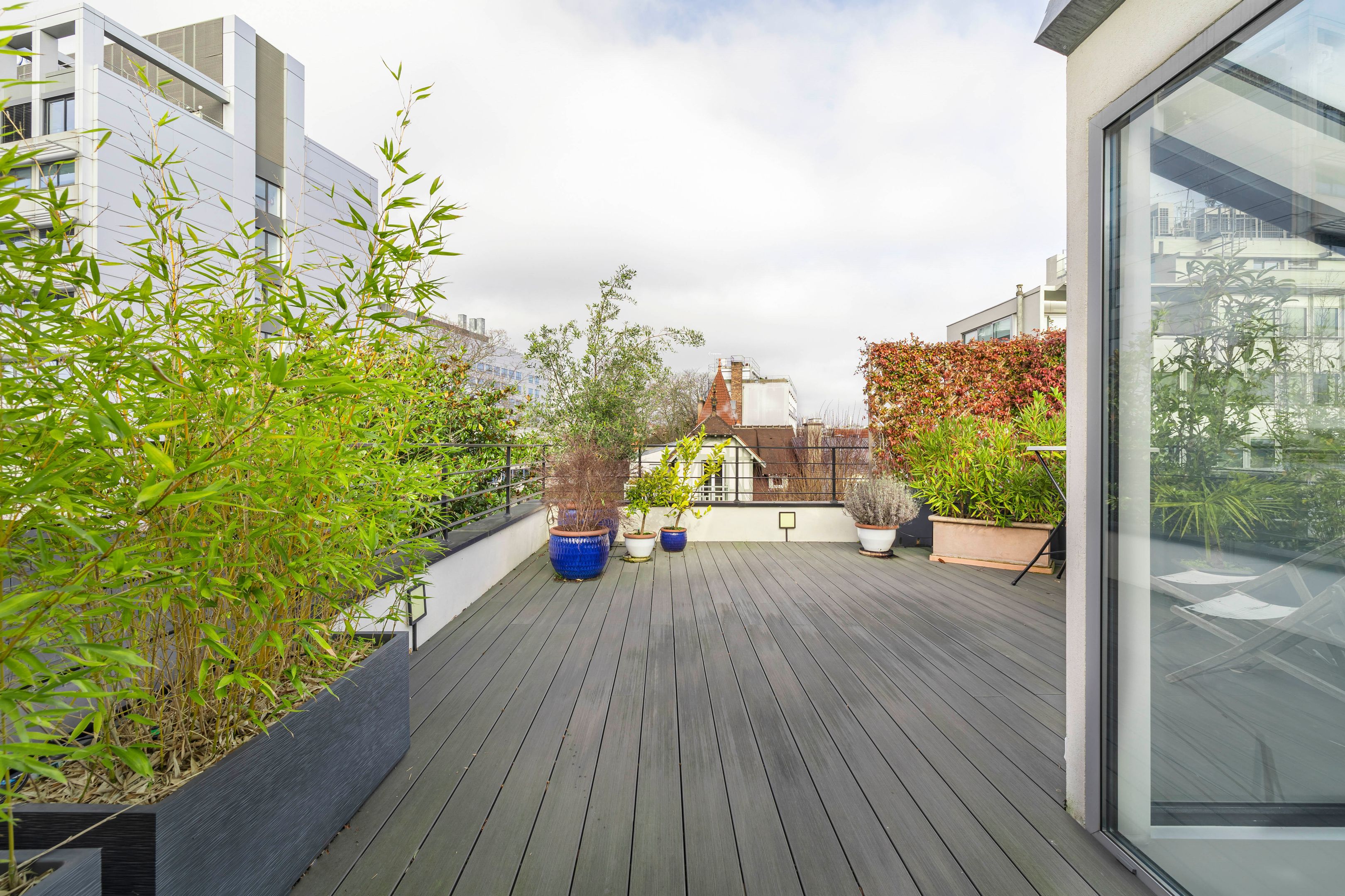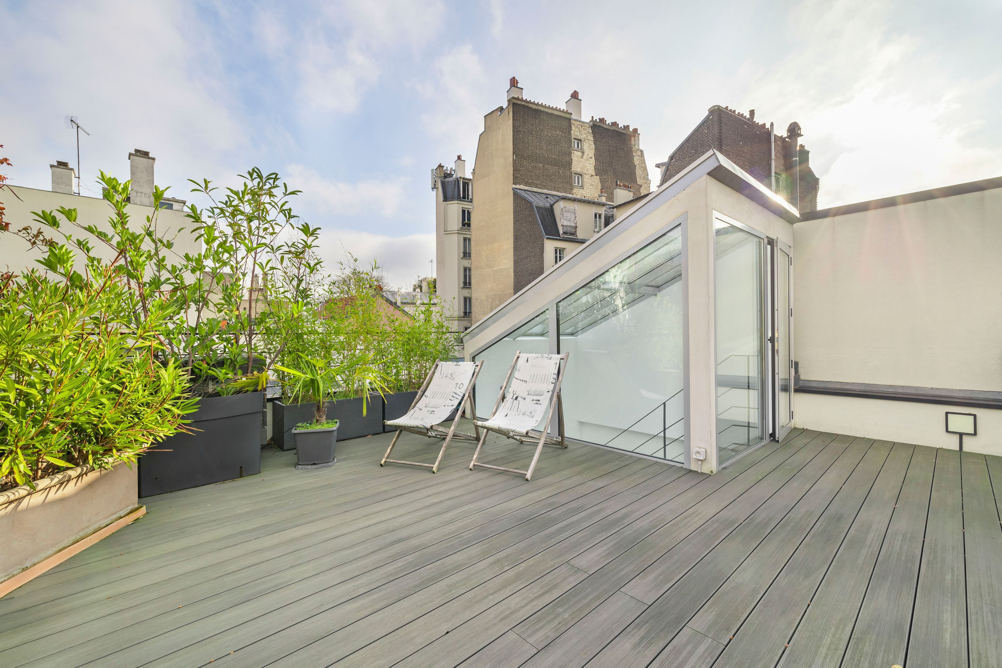 À proximité immédiate du parc Montsouris, dans une allée privée sécurisée et au calme, très belle maison de 220m² bénéficiant d'une rénovation de standing et d'un vaste toit terrasse. Au rez-de-chaussée : patio de 12m² desservant l'entrée, grand séjour baigné de lumière, cuisine ouverte équipée, toilettes invités, buanderie. Au 1er étage : mezzanine, suite parentale (salle de bains, dressing, toilettes). Au 2e étage : 3 chambres chacune avec salle d'eau, large balcon de 13m² accessible depuis 2 chambres, toilettes. Au 3e étage : exceptionnel toit-terrasse de 42m². 2 places de parking.
