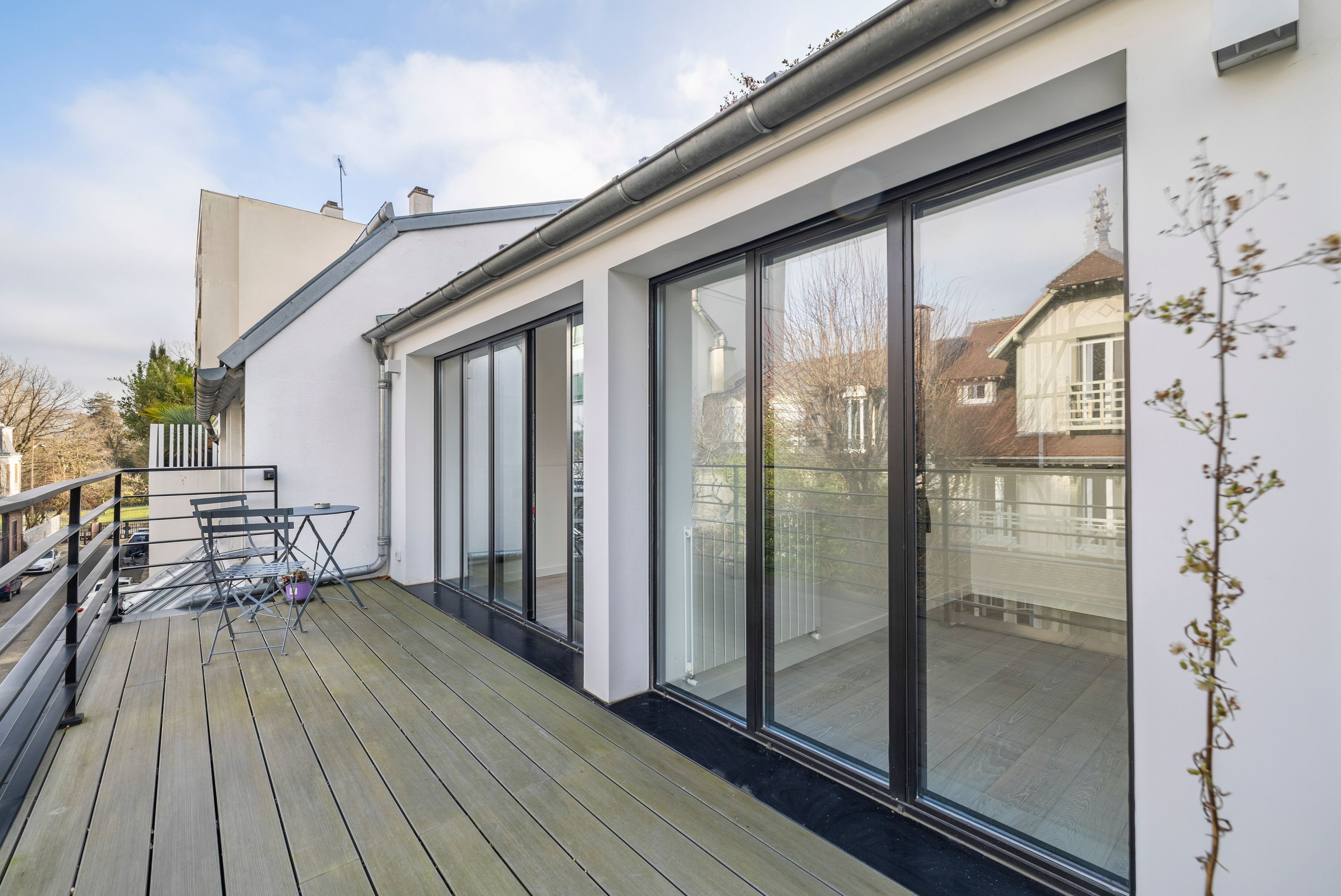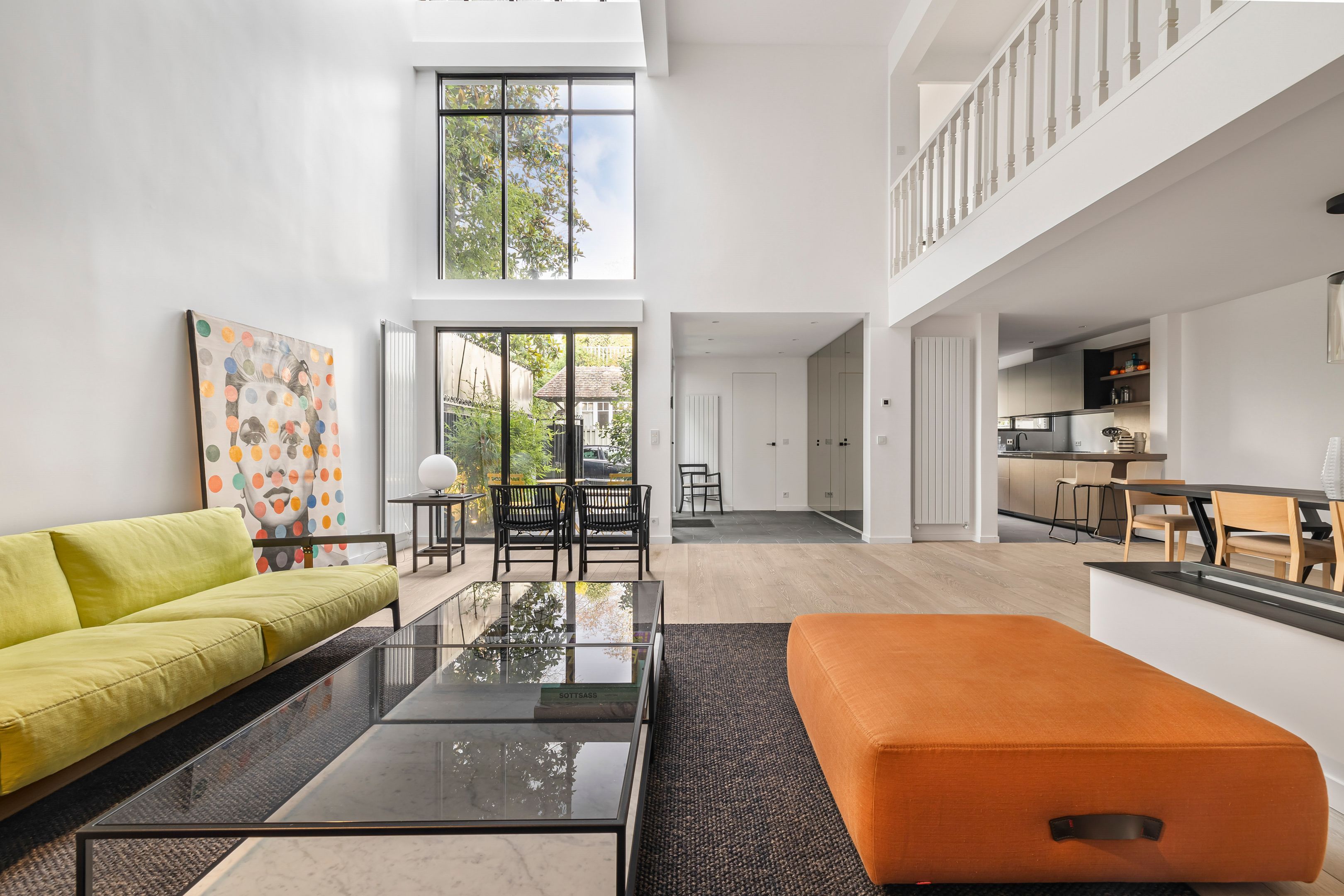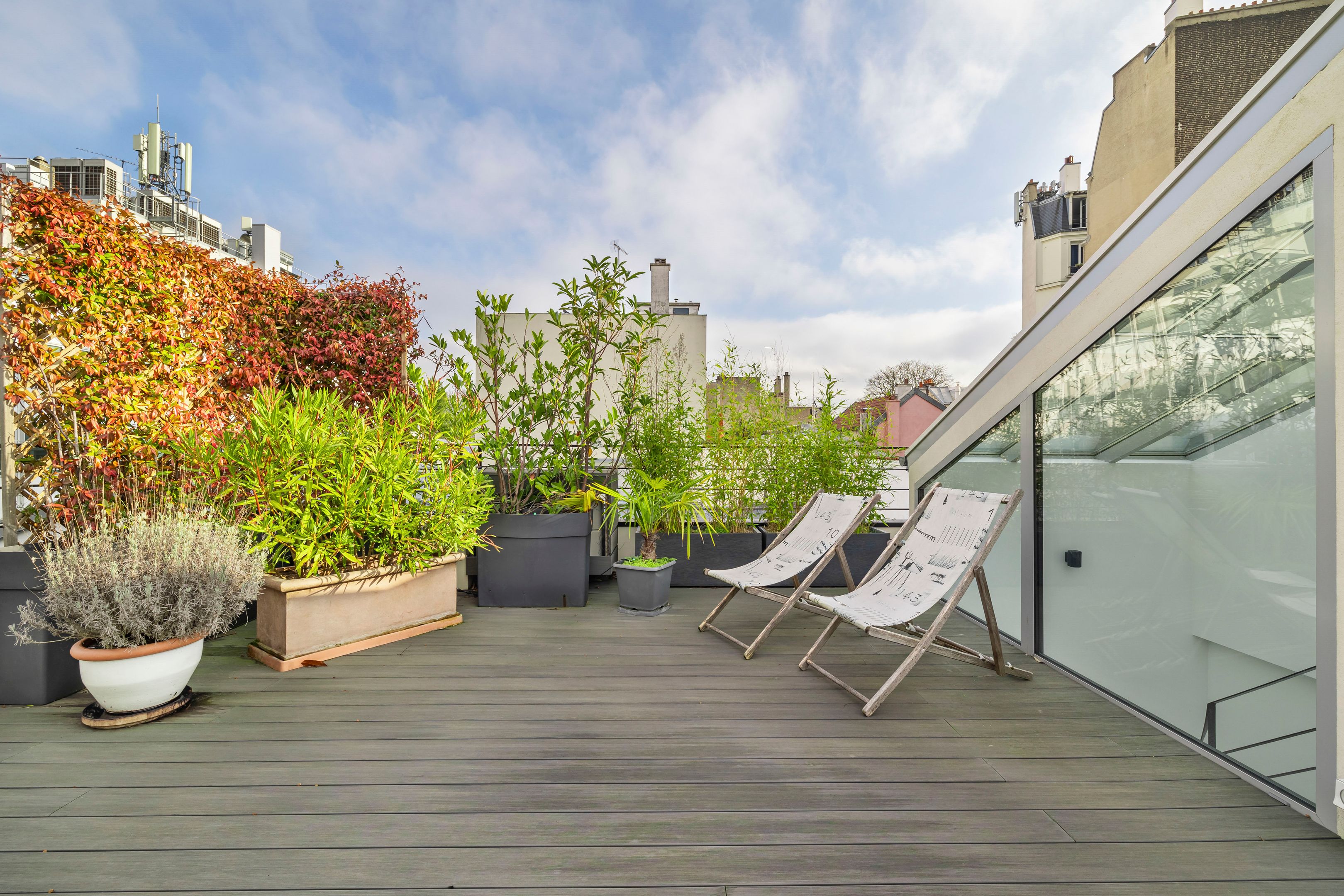 À proximité immédiate du parc Montsouris, dans une allée privée sécurisée et au calme, très belle maison de 220m² bénéficiant d'une rénovation de standing et d'un vaste toit terrasse. Au rez-de-chaussée : patio de 12m² desservant l'entrée, grand séjour baigné de lumière, cuisine ouverte équipée, toilettes invités, buanderie. Au 1er étage : mezzanine, suite parentale (salle de bains, dressing, toilettes). Au 2e étage : 3 chambres chacune avec salle d'eau, large balcon de 13m² accessible depuis 2 chambres, toilettes. Au 3e étage : exceptionnel toit-terrasse de 42m². 2 places de parking.
