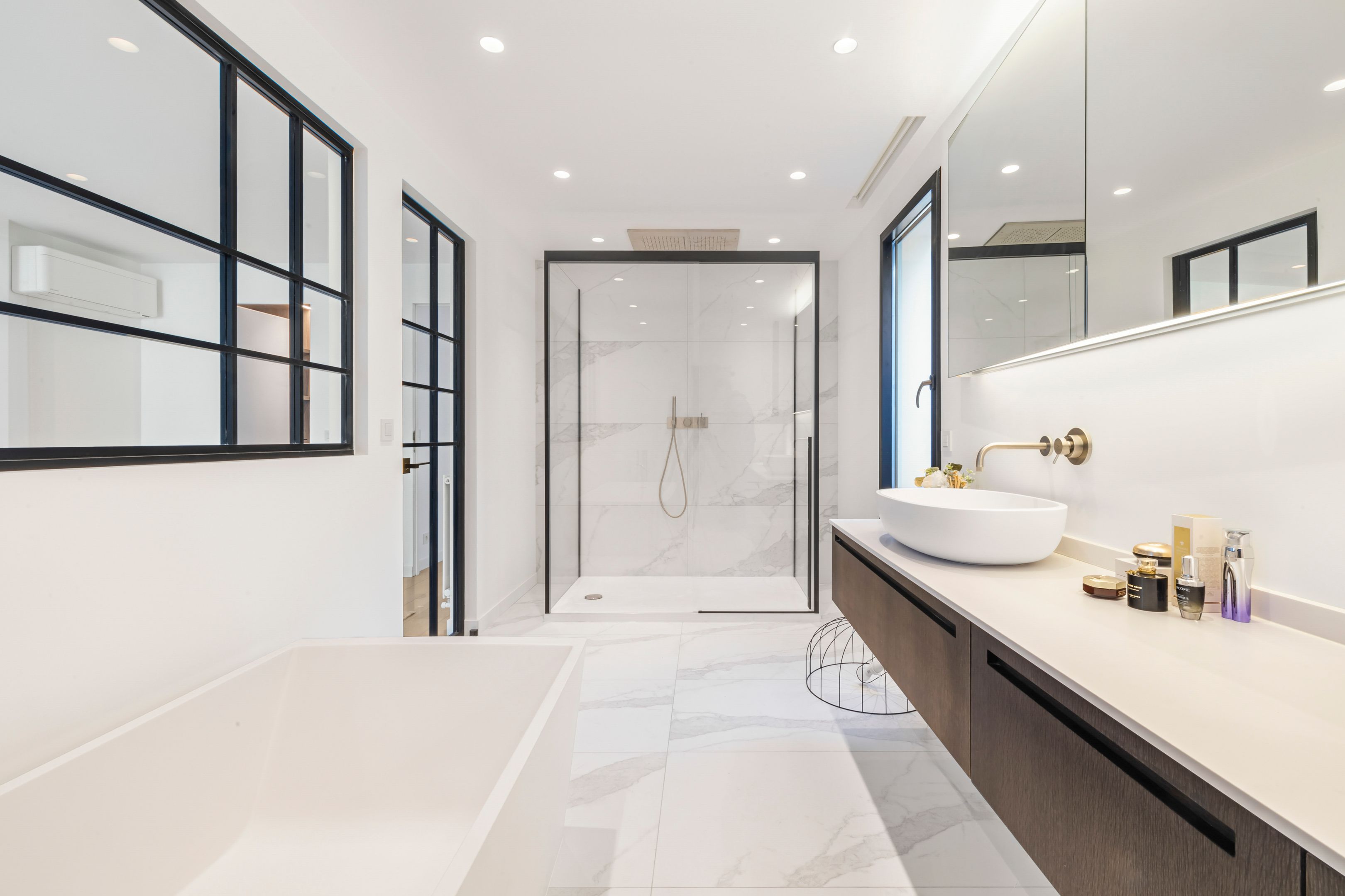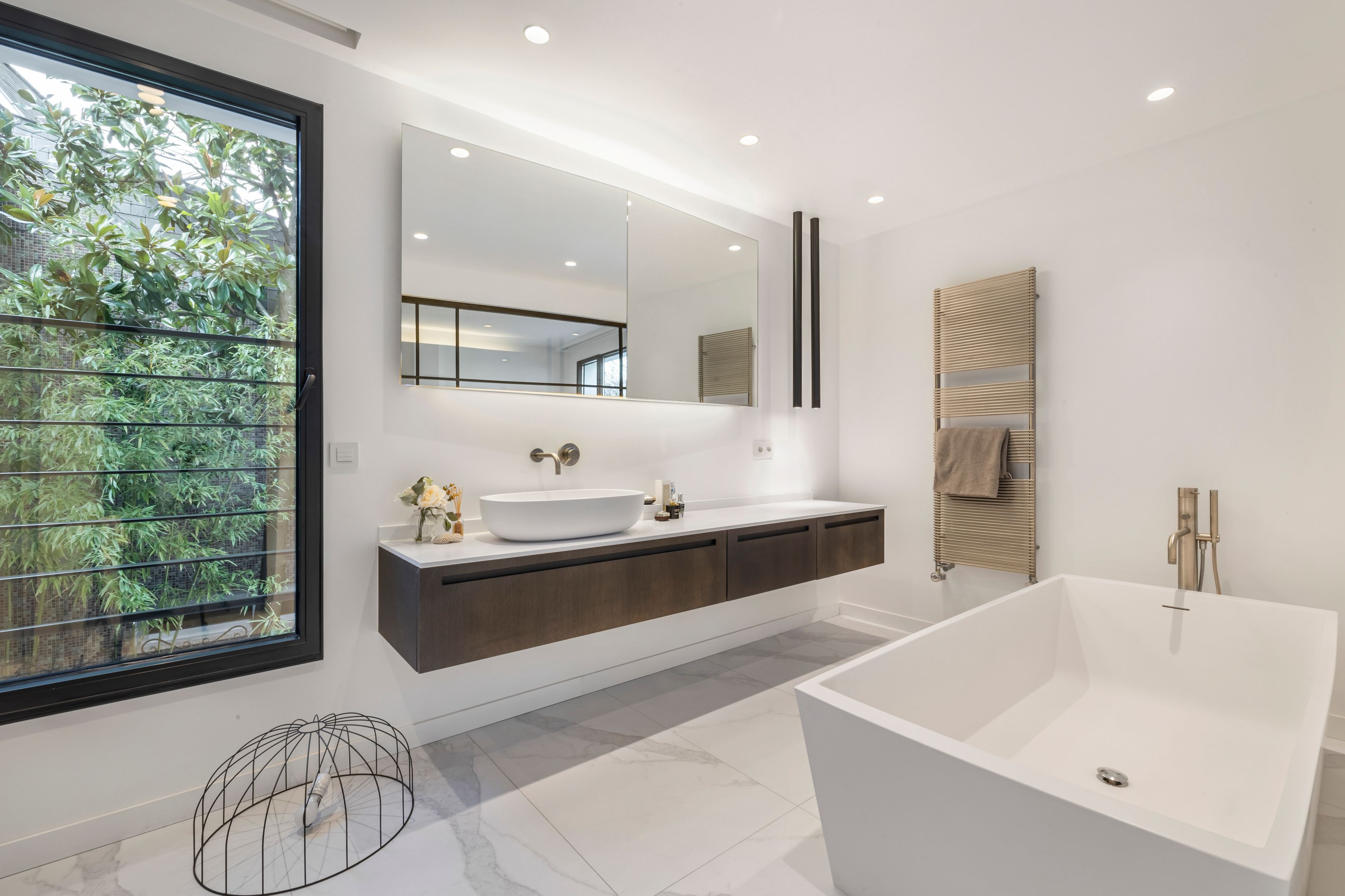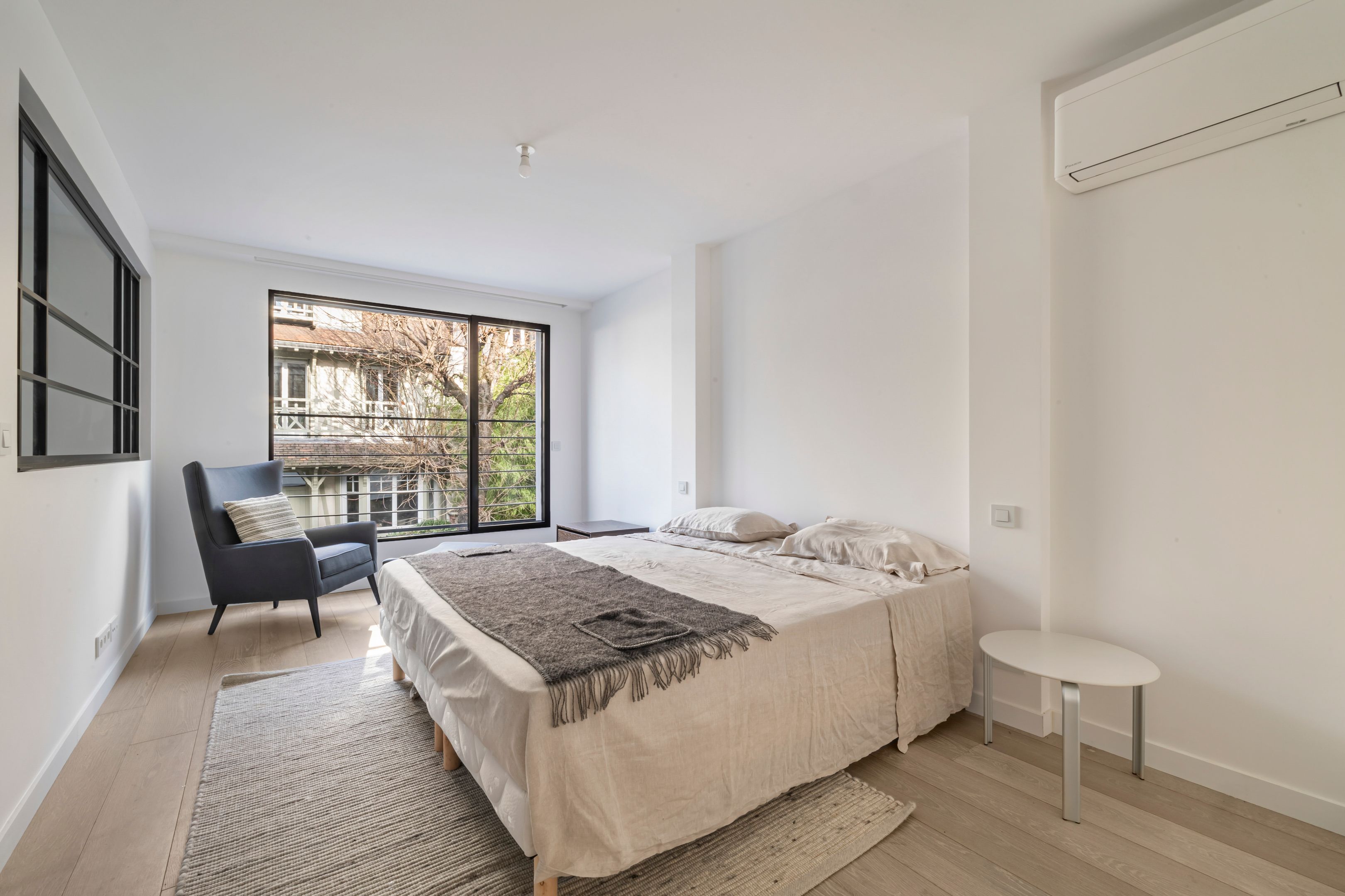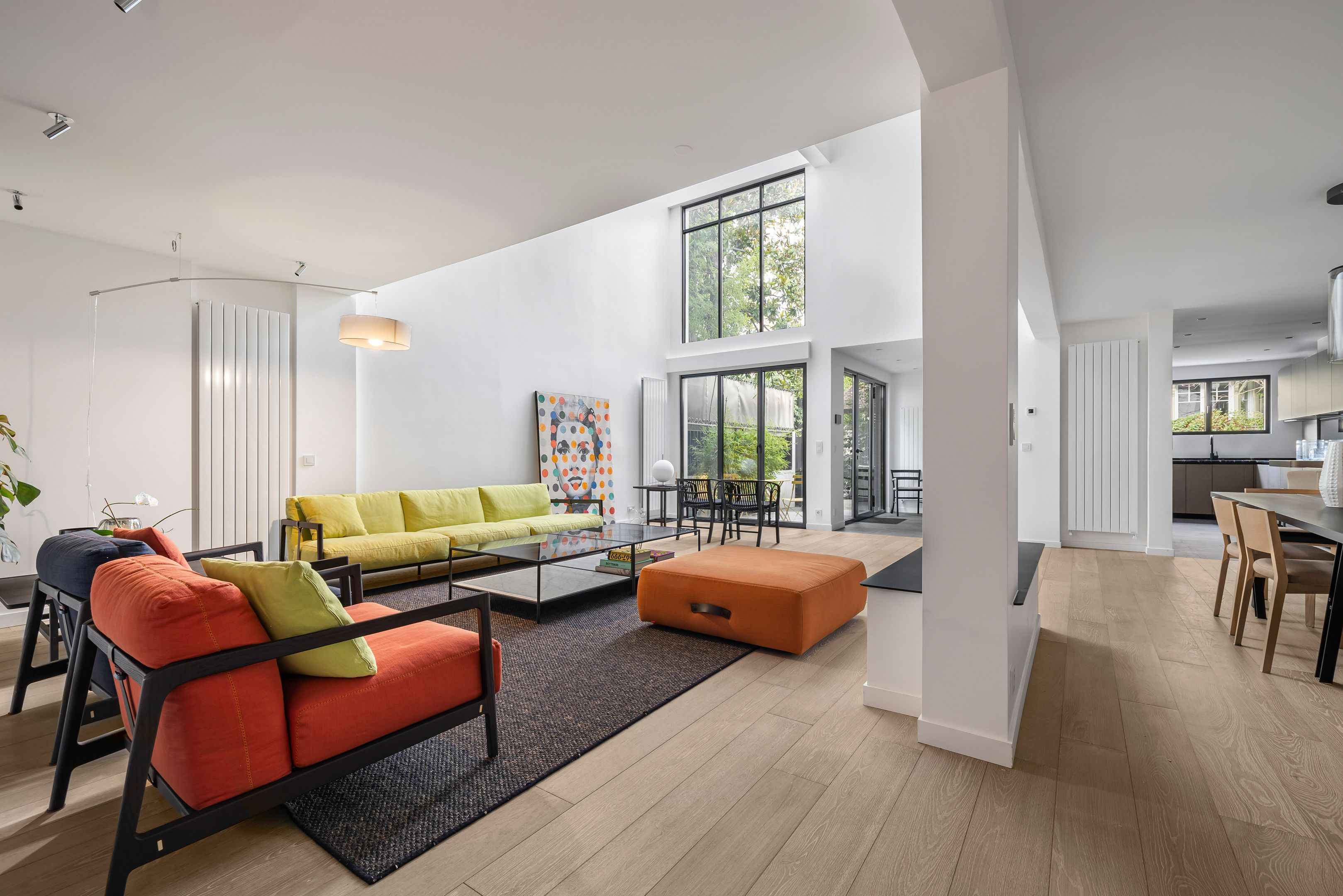 À proximité immédiate du parc Montsouris, dans une allée privée sécurisée et au calme, très belle maison de 220m² bénéficiant d'une rénovation de standing et d'un vaste toit terrasse. Au rez-de-chaussée : patio de 12m² desservant l'entrée, grand séjour baigné de lumière, cuisine ouverte équipée, toilettes invités, buanderie. Au 1er étage : mezzanine, suite parentale (salle de bains, dressing, toilettes). Au 2e étage : 3 chambres chacune avec salle d'eau, large balcon de 13m² accessible depuis 2 chambres, toilettes. Au 3e étage : exceptionnel toit-terrasse de 42m². 2 places de parking.
