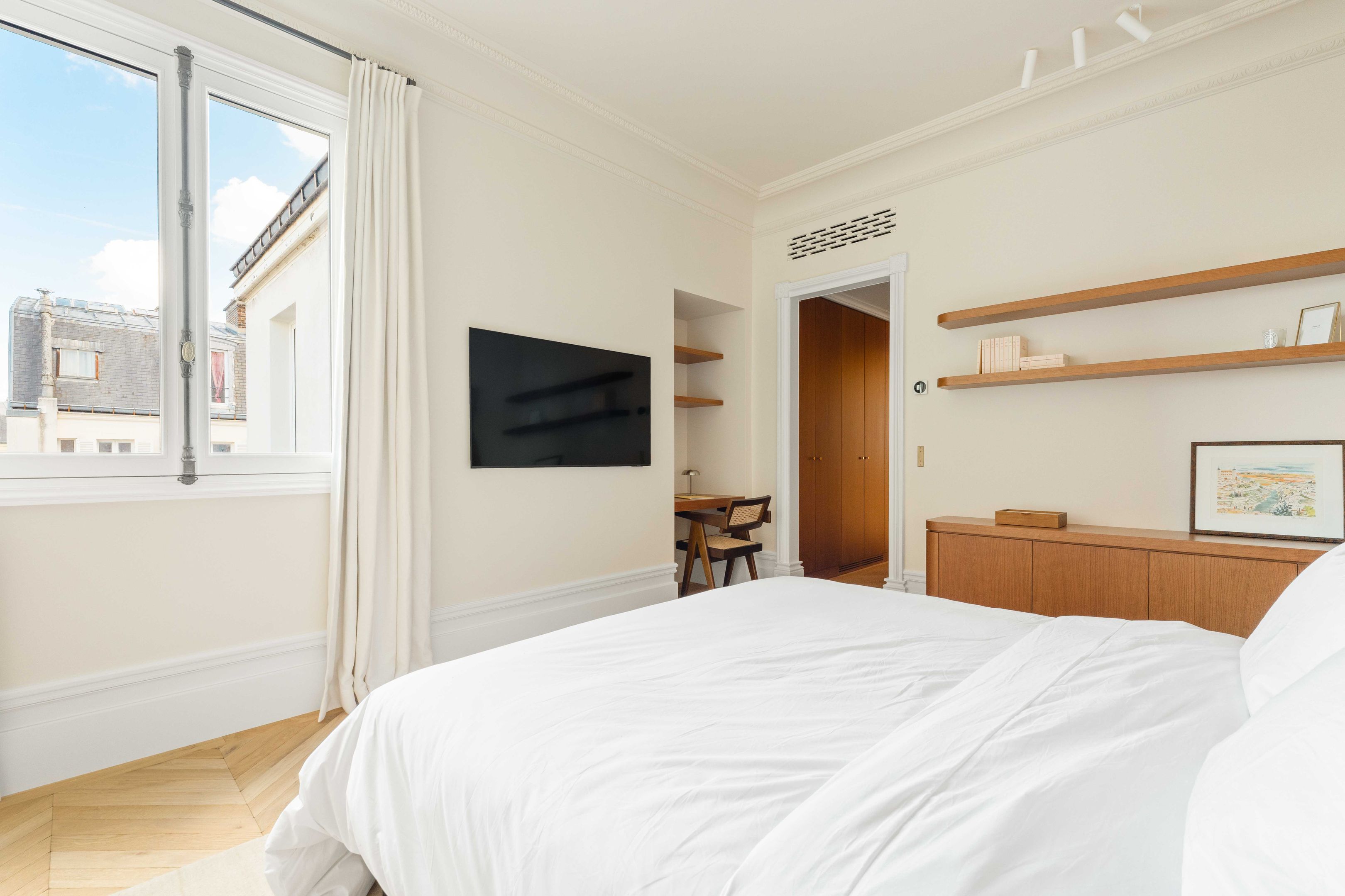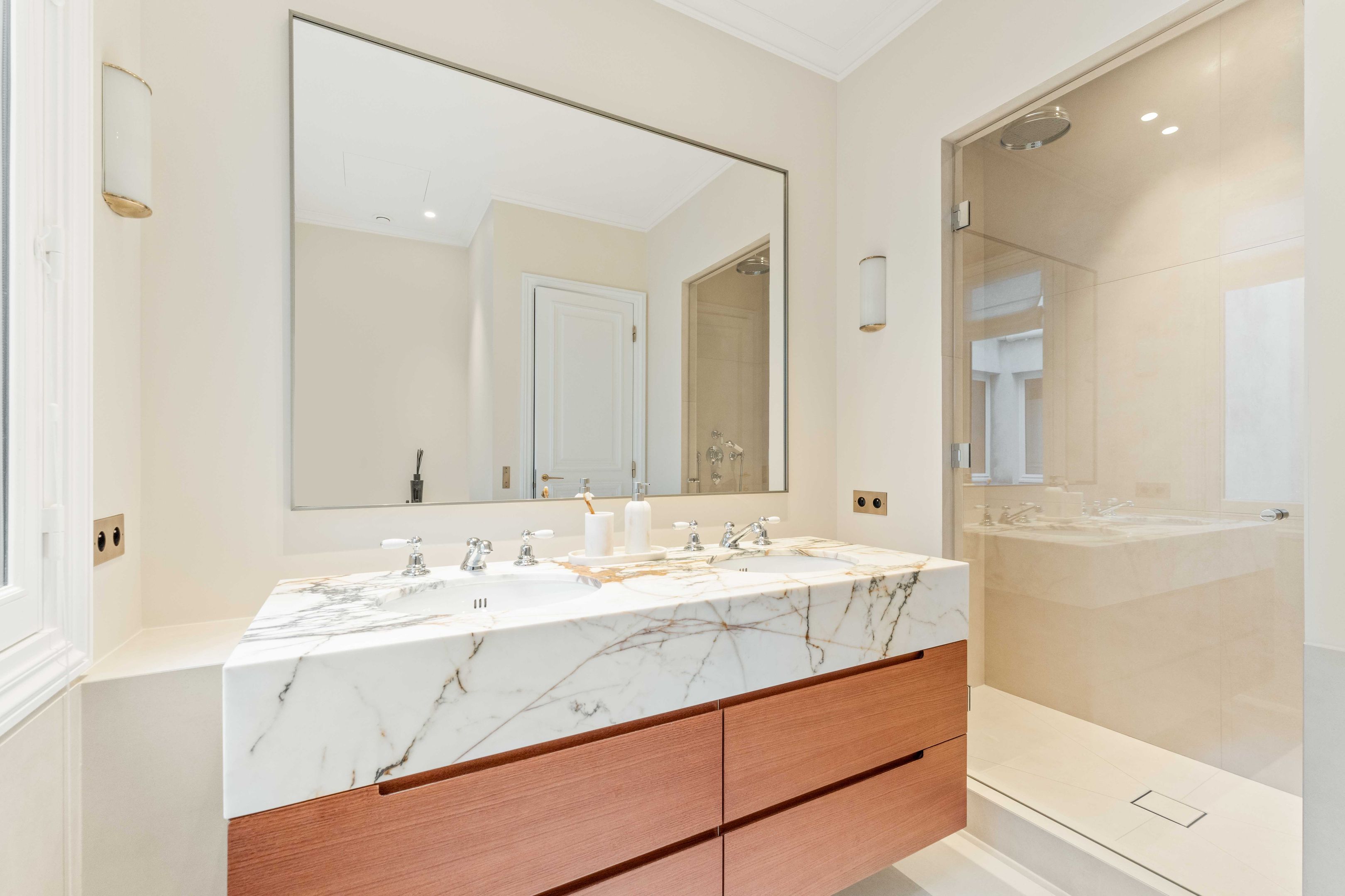 Immeuble en pierre de taille de grand standing, appartement d'exception de 183 m² Loi Carrez entièrement rénové par un architecte de renom dans un esprit contemporain, bénéficiant de vues totalement dégagées sur les monuments de Paris et d'un balcon filant. Entrée, vaste séjour, salle à manger dotée d'une cuisine ouverte équipée et aménagée, trois chambres, trois salles d'eau disposant chacune de toilettes, dressing, toilettes invités. Entièrement climatisé, cave.