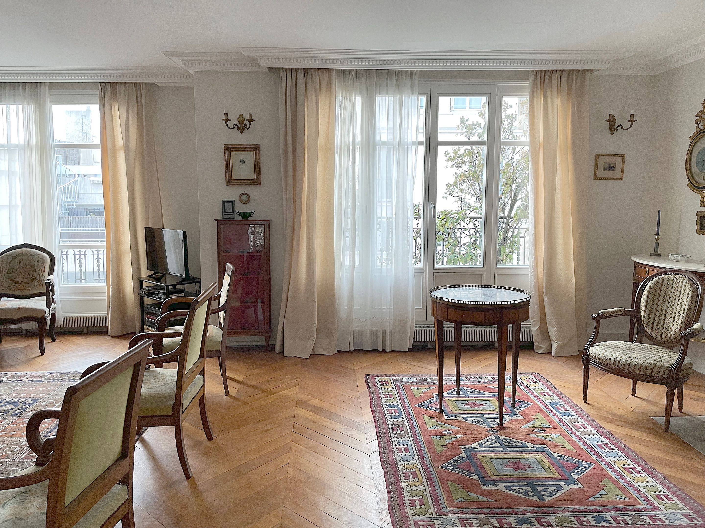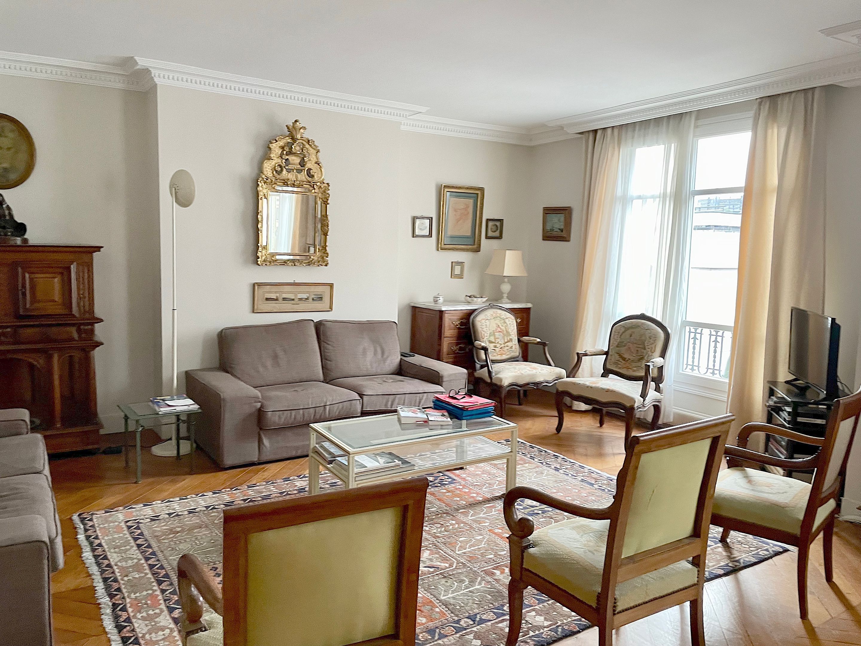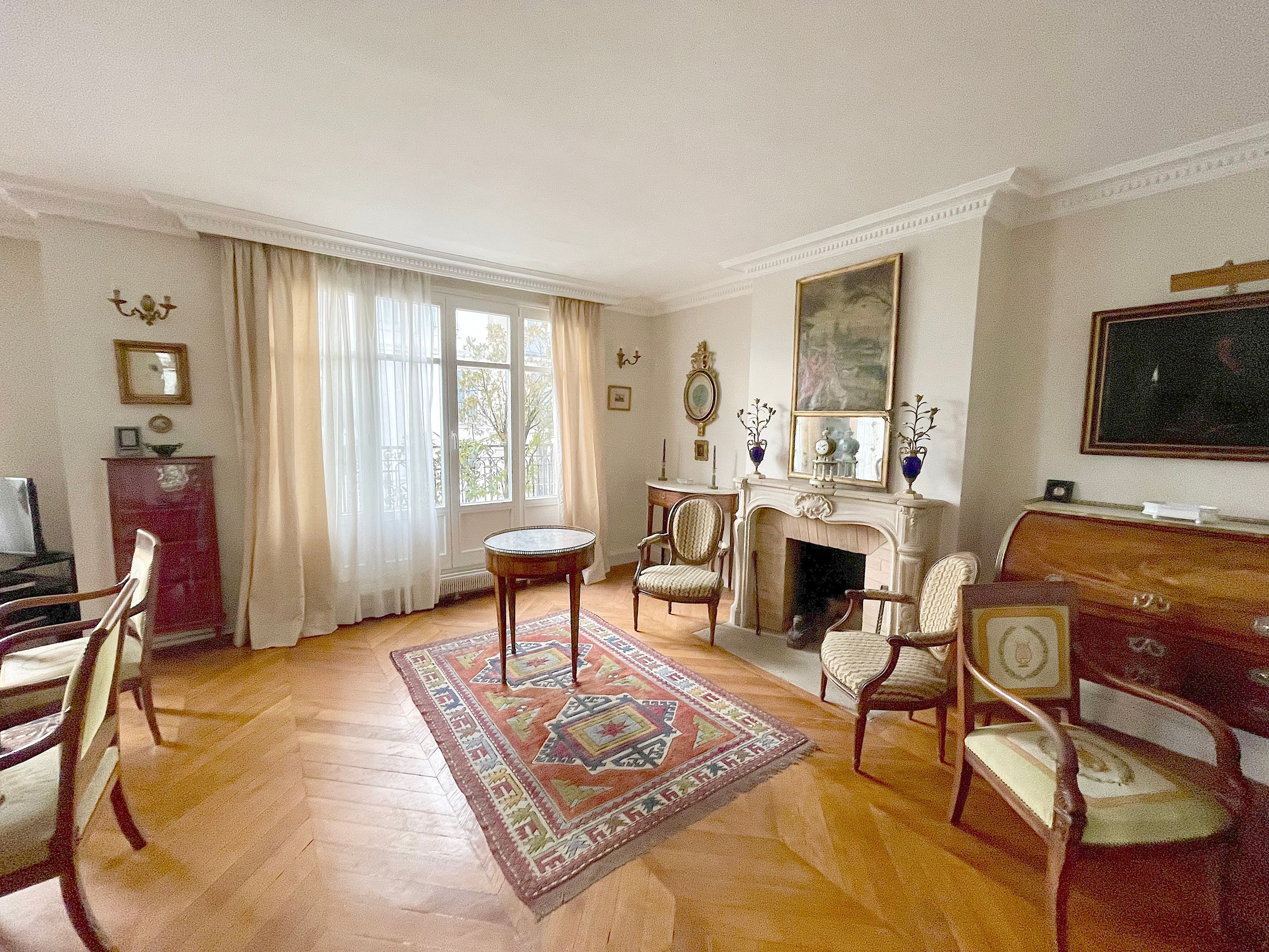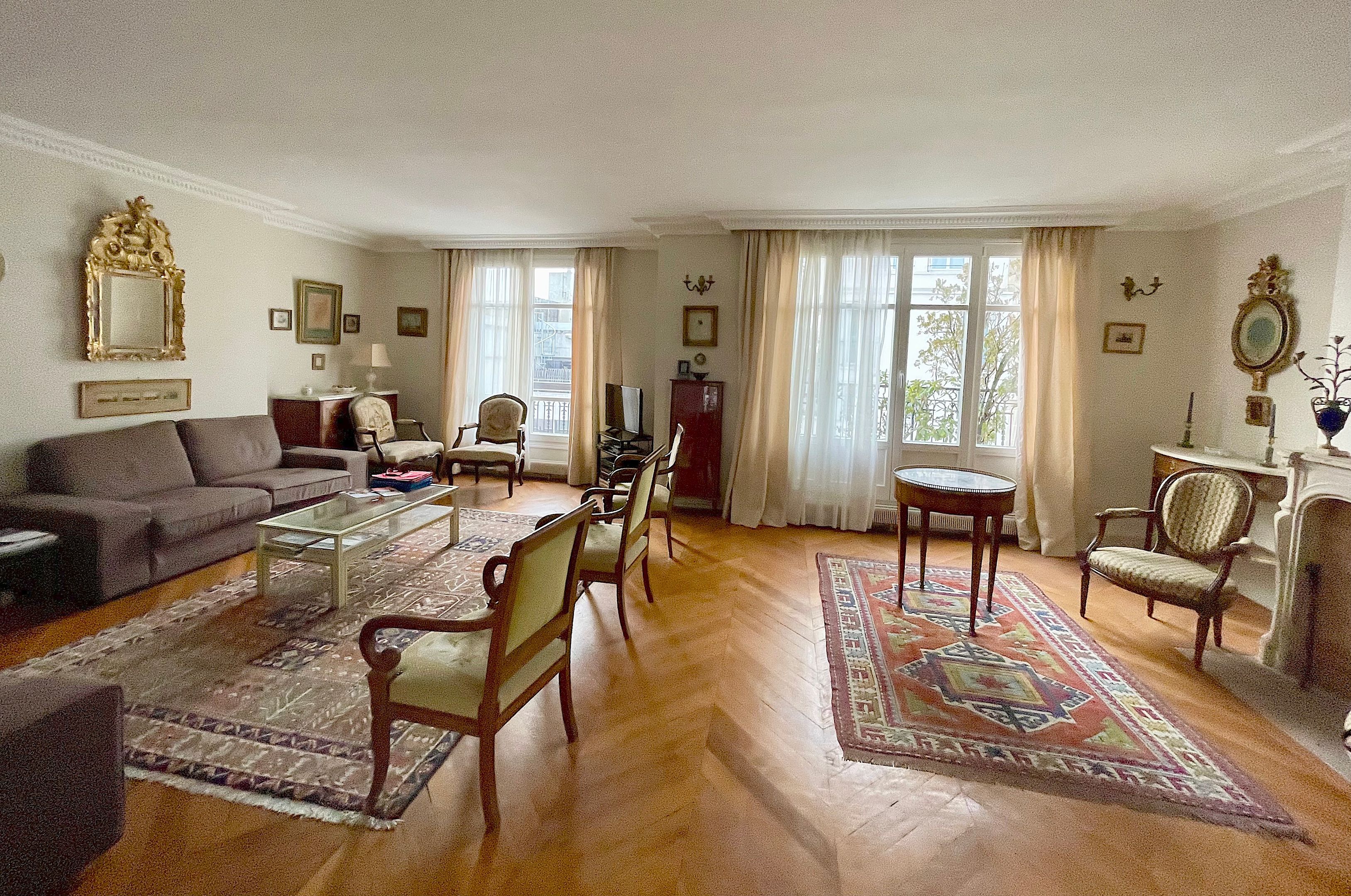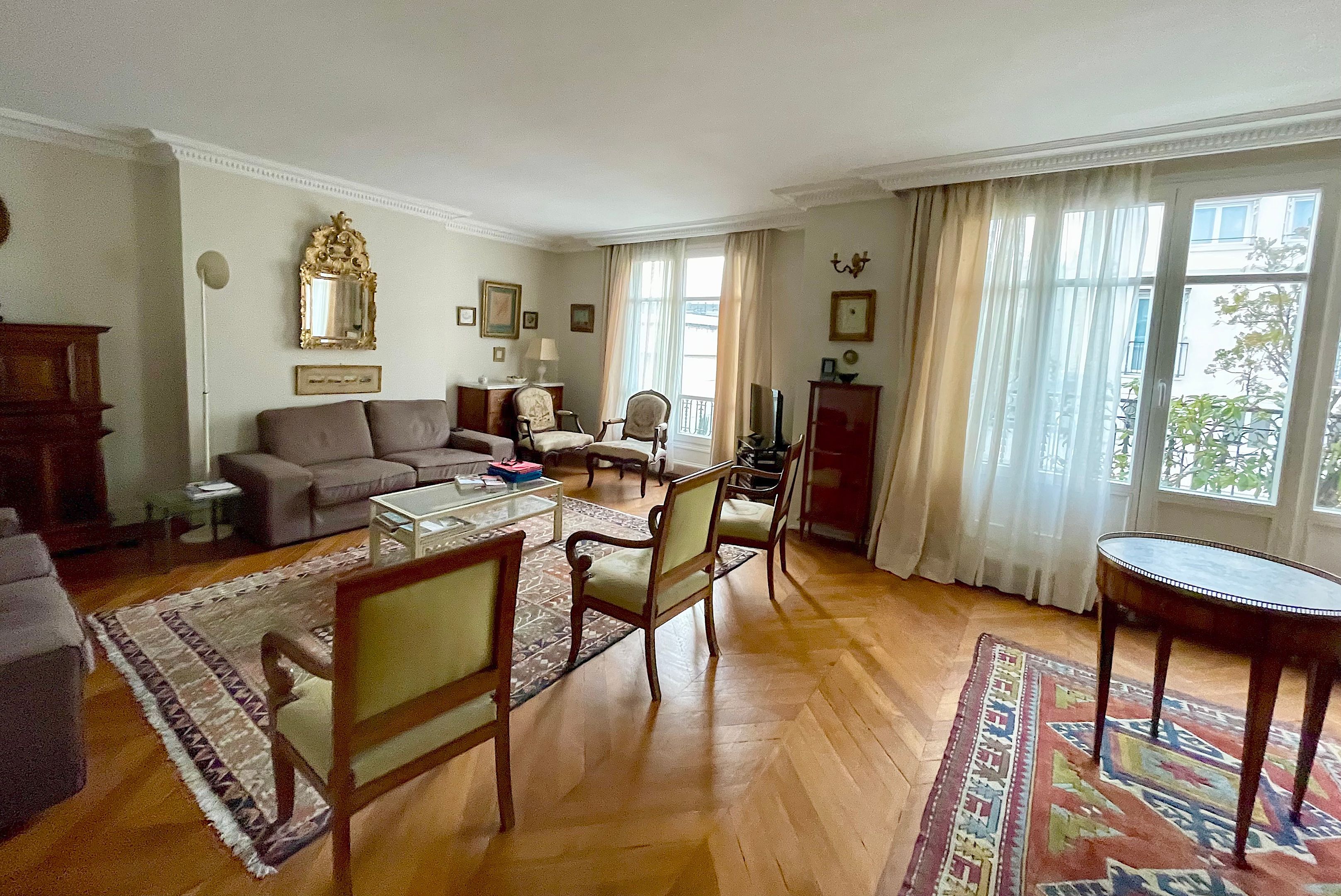 Au 6ème étage d'un immeuble ancien idéalement situé au pied métro Sablons, très bel appartement familial de six pièces d'une surface de 146m² traversant, baigné de lumière et bénéficiant d'une vue Tour Eiffel. Entrée, beau double séjour de 37m² exposé Ouest ouvrant sur un balcon d'environ 11m², cuisine séparée, quatre chambres, deux salles de bains, deux toilettes indépendantes et nombreux rangements. Cave.