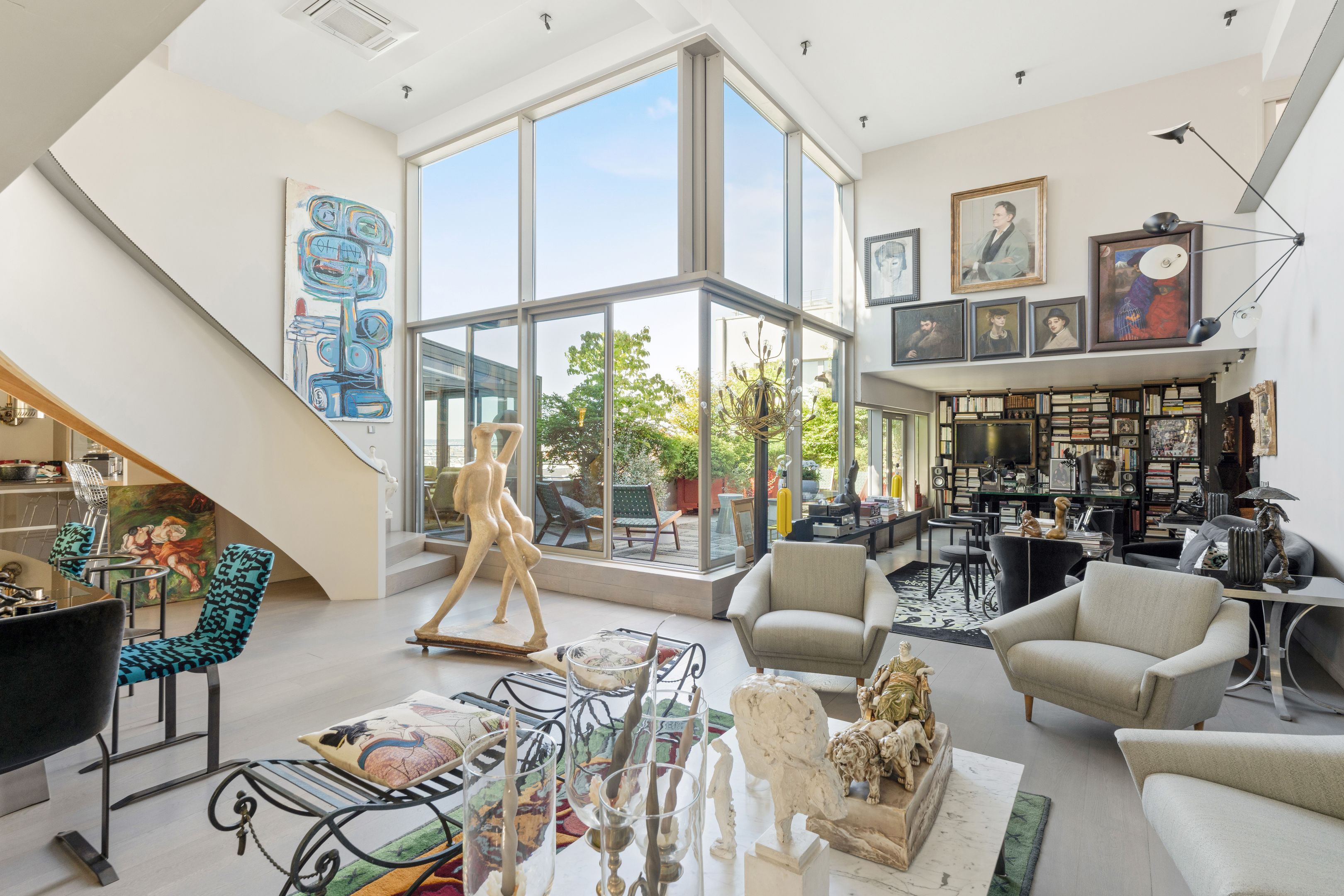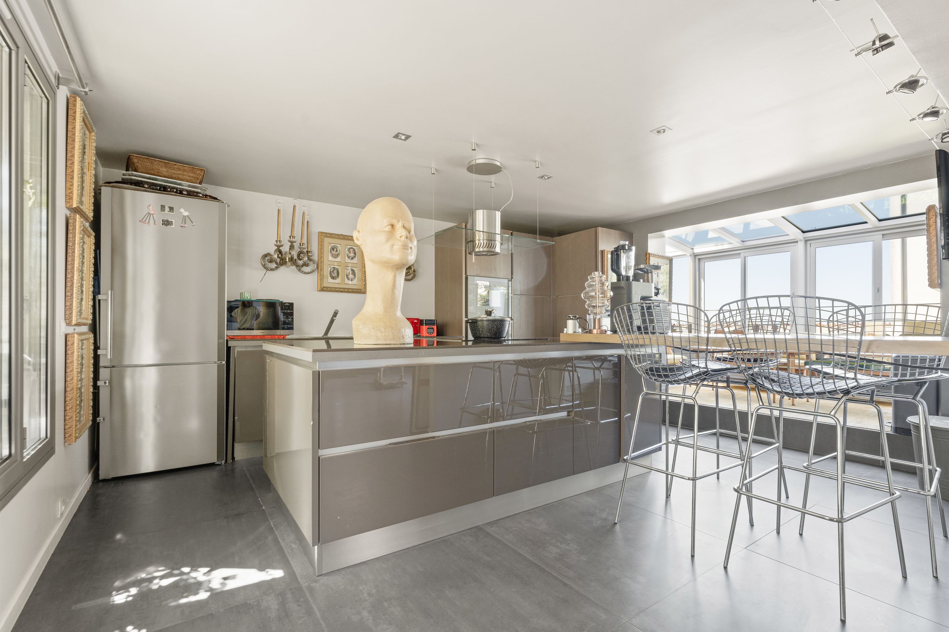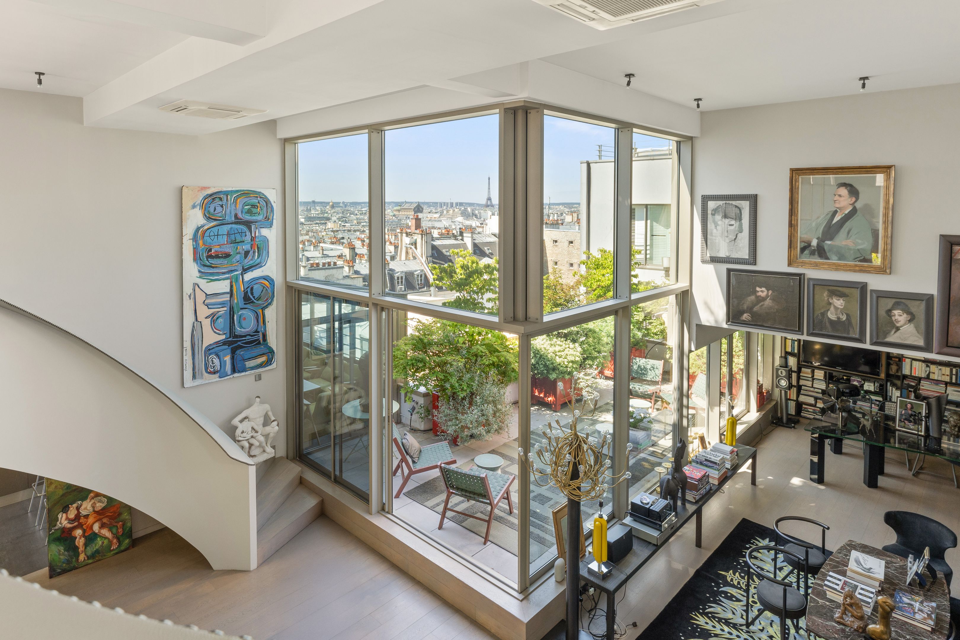 Au sommet d’un immeuble de style industriel, duplex de 189 m², couronné d'un rooftop paysagé de 128 m² offrant une vue imprenable à 360° sur les plus beaux monuments parisiens. Dès l’entrée, une galerie élégante mène à une pièce de vie spectaculaire de 65 m², baignée de lumière grâce à sa triple exposition et ses 5 mètres de hauteur sous plafond. Une terrasse plein sud de 24 m² prolonge naturellement cet espace. La cuisine s’ouvre sur un salon d’hiver cosy et lumineux.