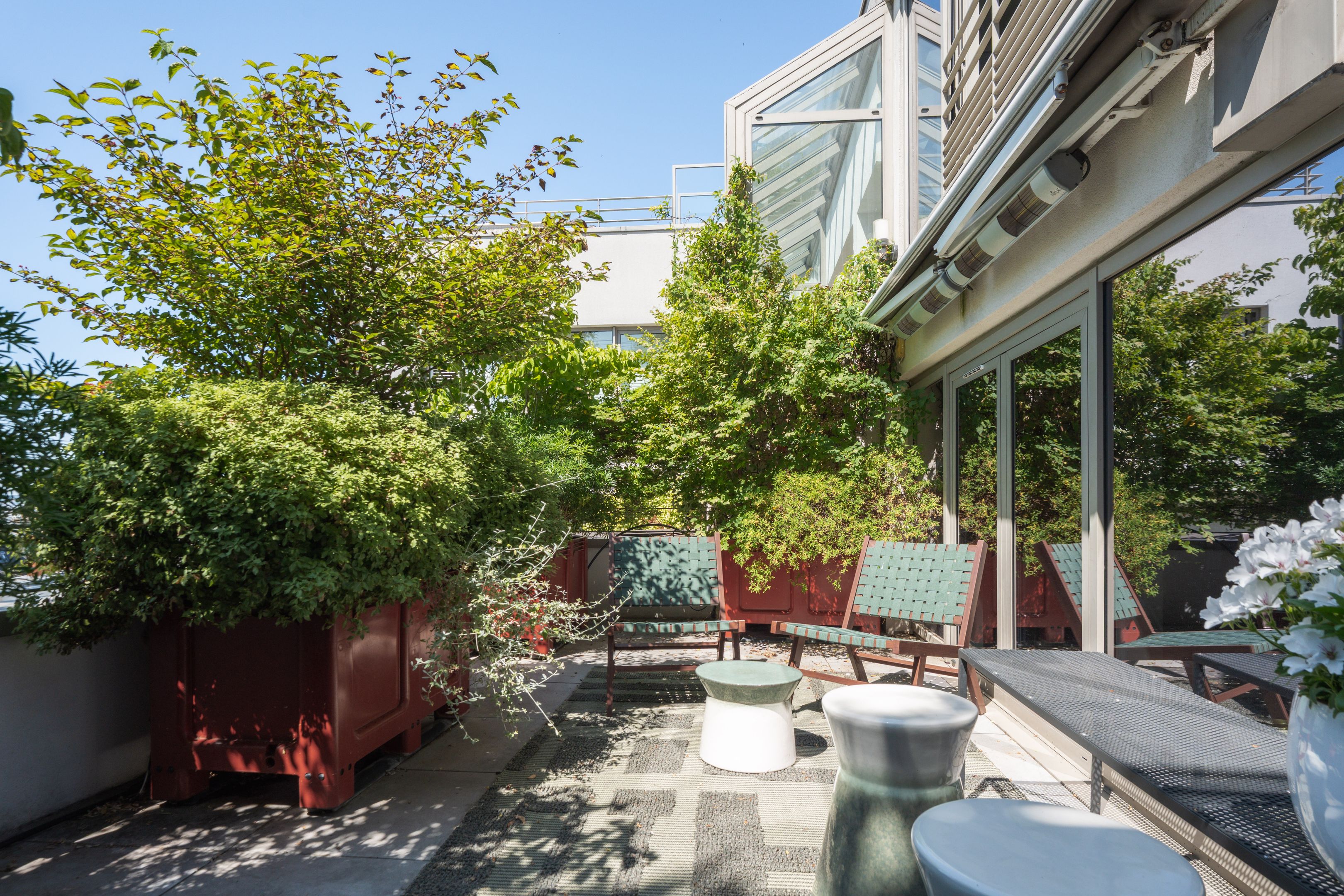 À l’étage, deux suites raffinées dont une master de 29 m² avec salle de bains, dressing et accès direct à un patio paysagé. Un escalier mène au toit-terrasse privatif : véritable jardin suspendu, idéal pour recevoir, se détendre ou simplement admirer Paris sous tous ses angles.