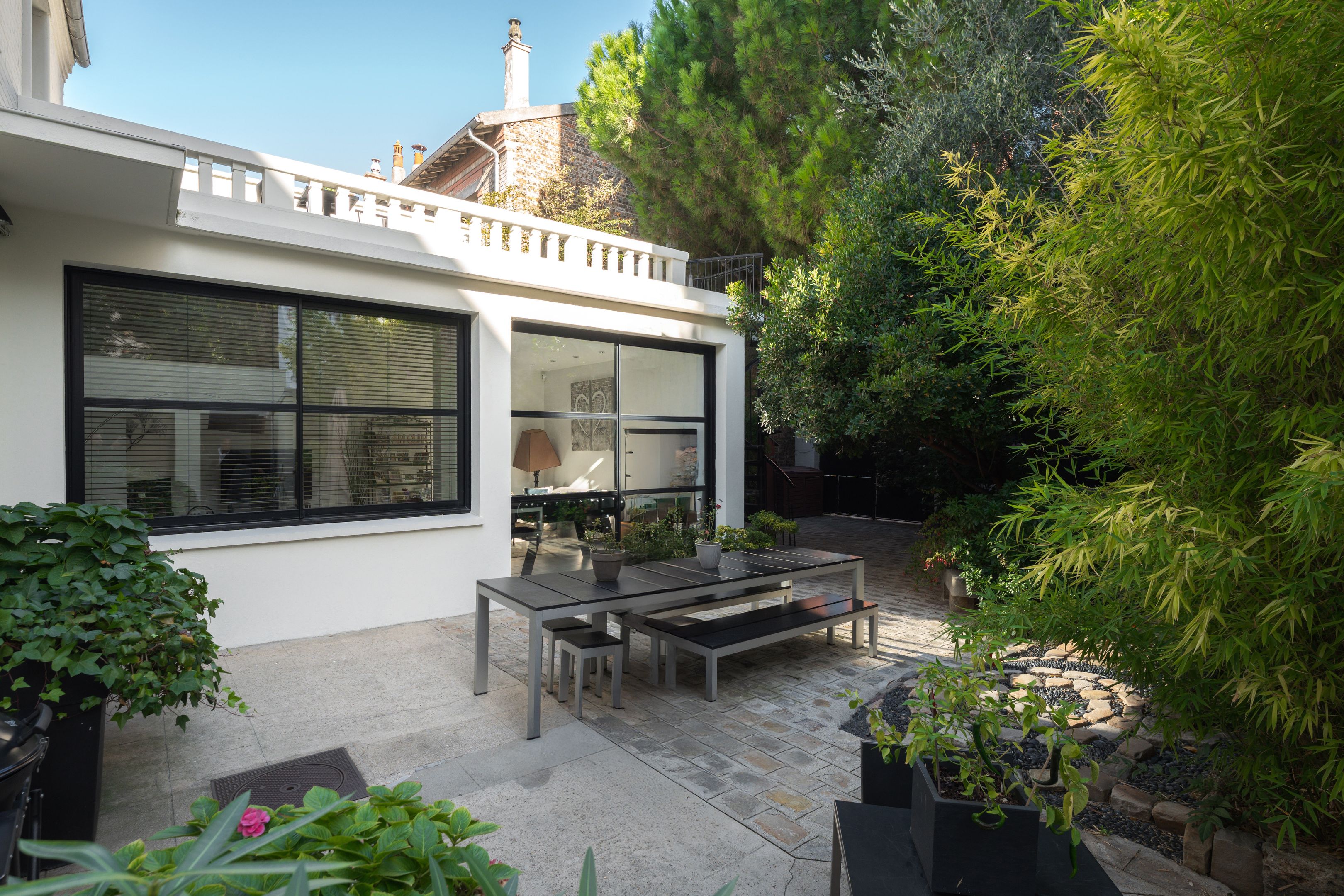 Idéalement située à proximité de Vincennes et des transports, très belle maison contemporaine en parfait état de 153m² localisée dans une rue résidentielle, bénéficiant de matériaux de qualité, d'une belle luminosité, d'agréables volumes, d'un plan sans perte de place et d'un jardin de 140 m² soigneusement décoré (surface de la parcelle 277m²). Au premier niveau: Entrée, vaste salon avec cheminée ouvrant sur le jardin, salle à manger, bureau, cuisine séparée, studio doté d'une salle de douche avec toilettes et grand dressing, salle de douche, toilettes invités. Au second niveau: Suite parentale profitant de sa salle de bains avec toilettes et dressing, agrémentée d'une magnifique terrasse aménagée de 25 m² baignée de lumière, chambre, bureau (4ème chambre possible), buanderie. Au sous-sol: Espace faisant office de cave parfaitement modulable. Garage vélo et parking.