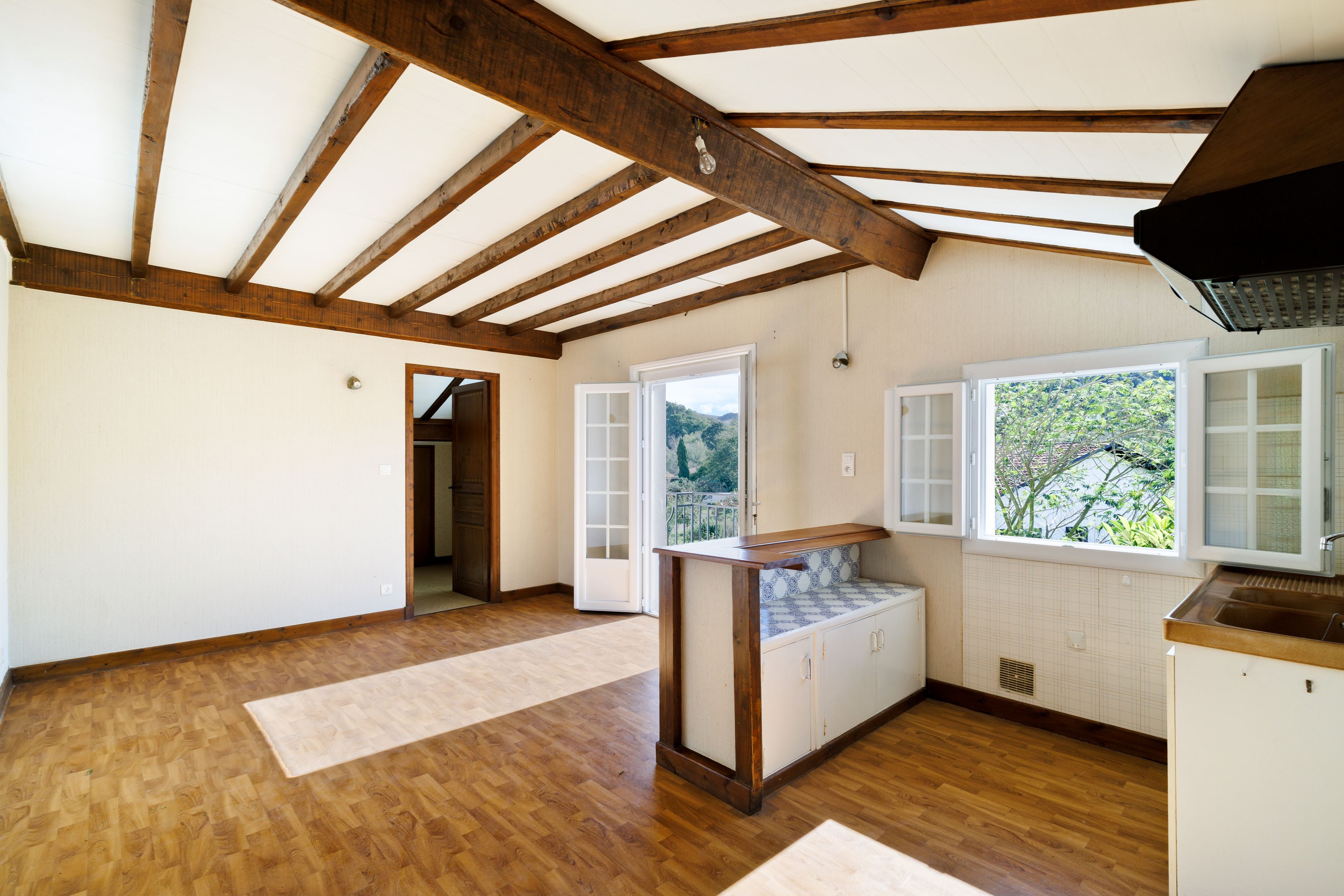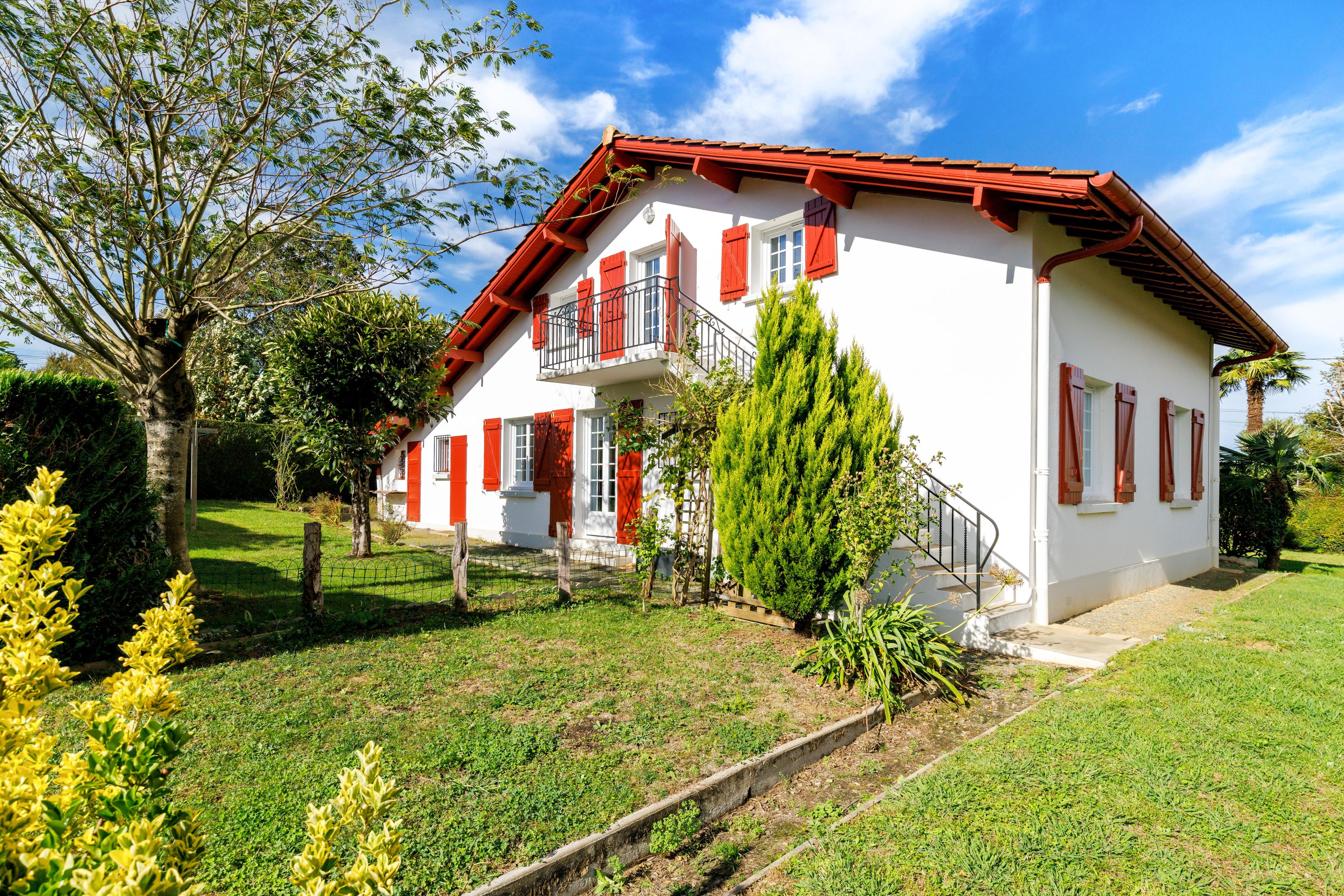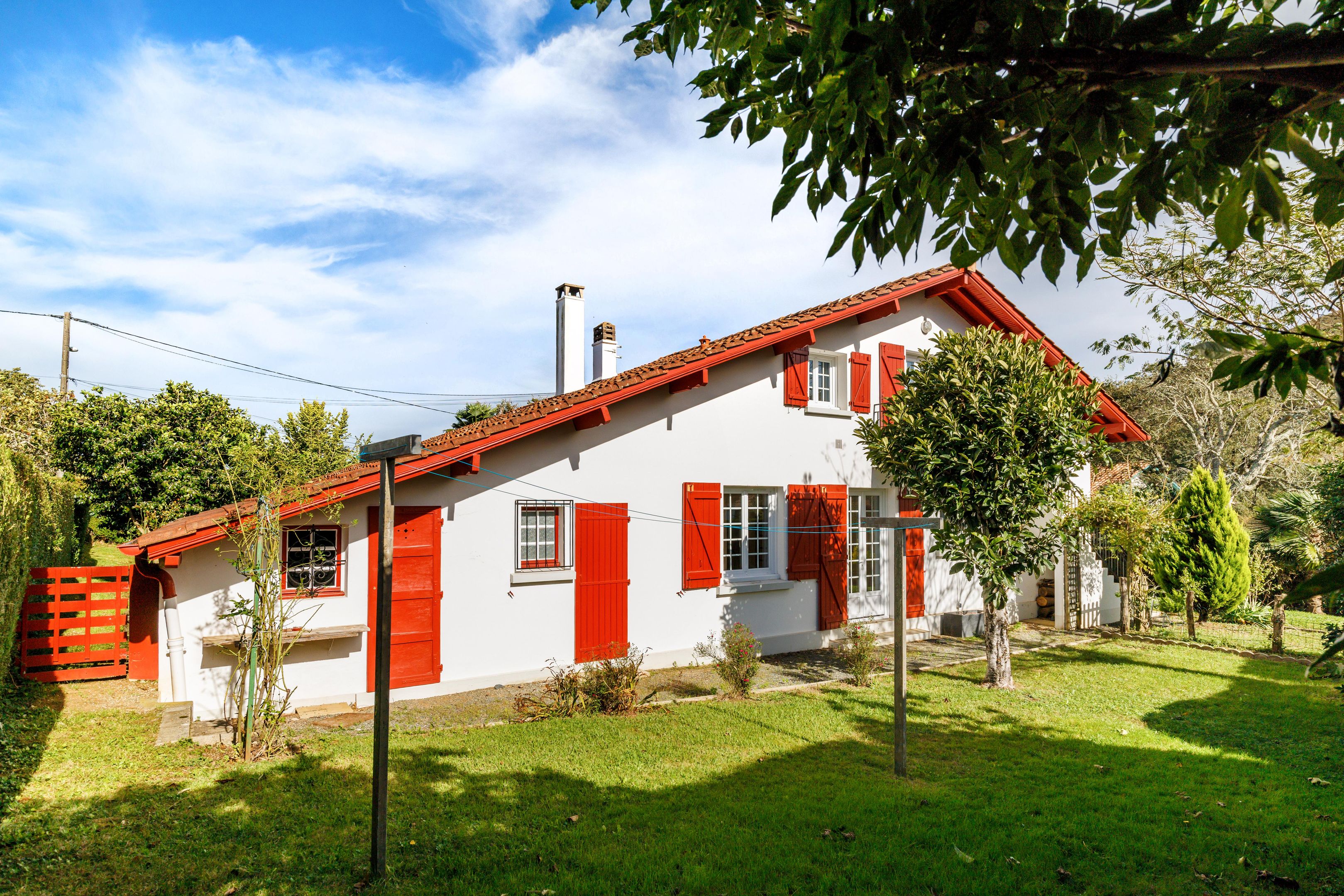 Au sein d’un quartier résidentiel, en proximité du bourg, maison basque de 135m² (environ) bénéficiant d’une vue sur la Rhune et montagnes environnantes, disposant d’un charmant jardin de 1 040m². Entrée, salon-séjour (cheminée) exposé au sud ouvert sur le jardin, cuisine, 3 chambres dont 2 dotées de placard, salle de bains, toilettes. À l’étage : grand salon (chambre possible), séjour et sa cuisine ouverte donnant sur un large balcon vue Rhune, chambre, salle d’eau, toilettes. Nombreux rangements. Cabanon, 2 garages dont un équipé d’une douche et toilettes.