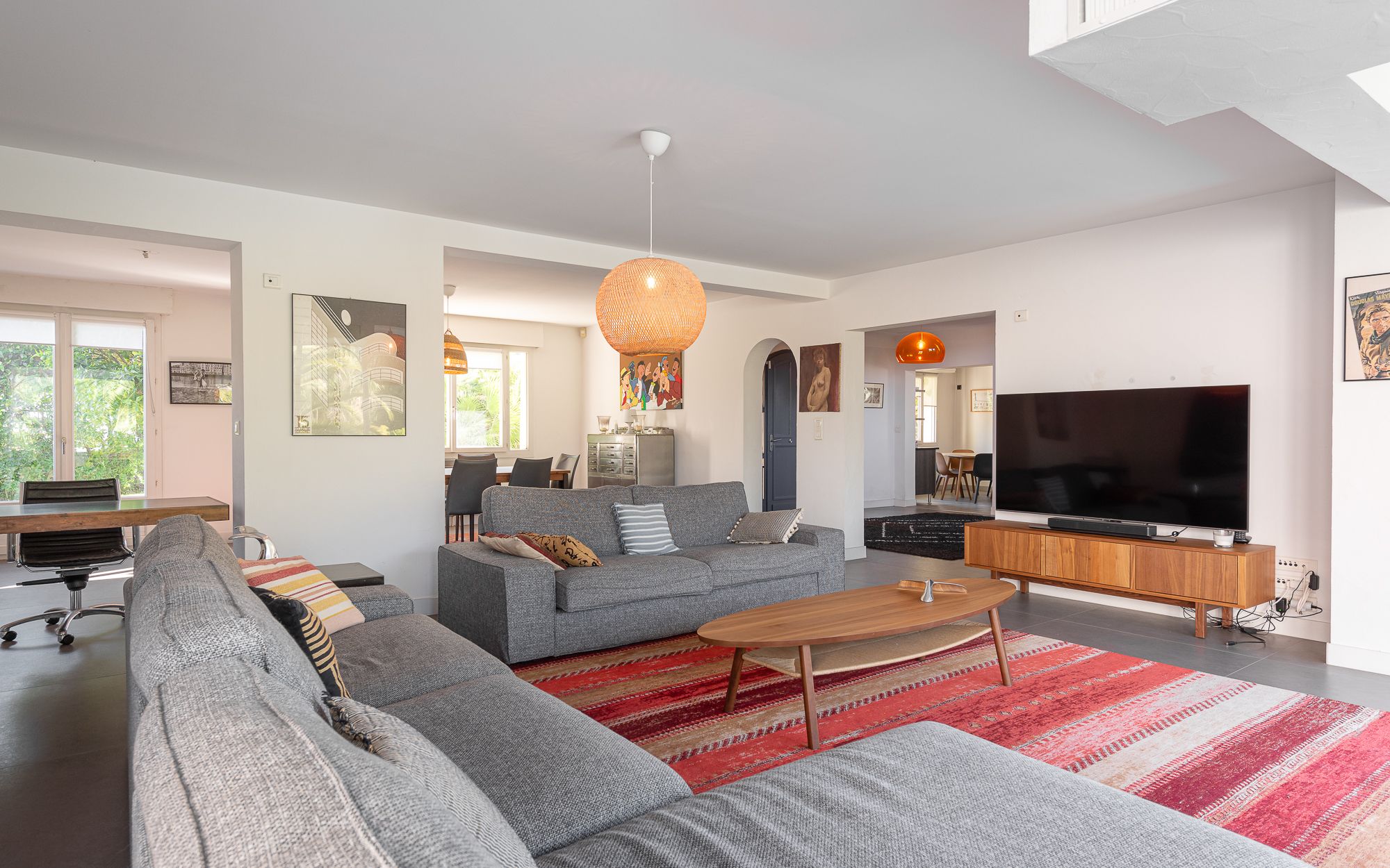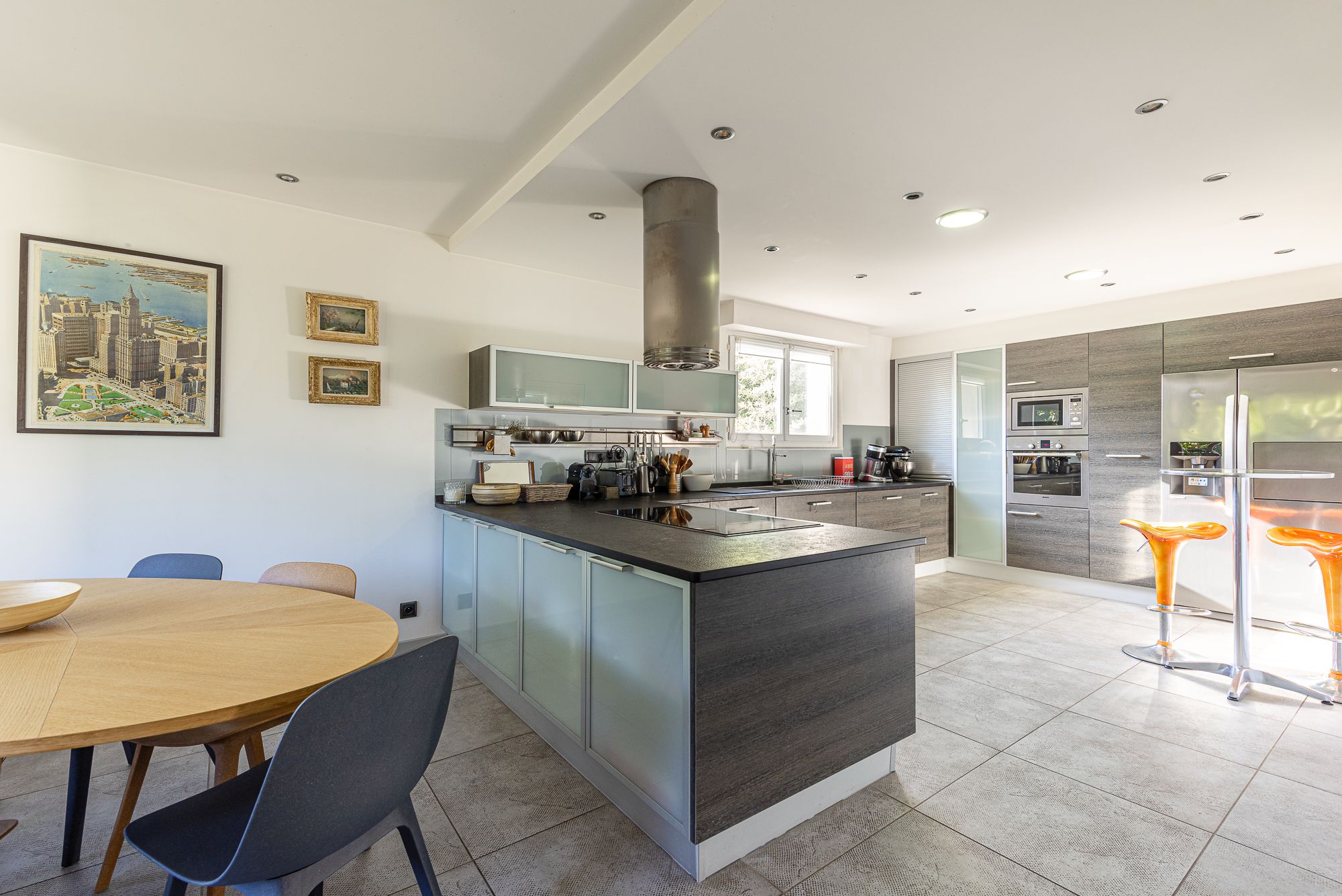 Nichée dans un quartier résidentiel, sur une parcelle de +1000 m² au sein d'un environnement verdoyant, à l'abri des regards, tout en étant à proximité des transports, spacieuse et lumineuse villa de 280 m² disposant d'une grande piscine. Belle entrée, séjour double offrant une vue surplombant la piscine et le jardin grâce à son bow window, grande cuisine équipée, suite parentale en rez de jardin avec sauna, salle de bains et dressing attenants. A l'étage : 4 chambres dont une seconde suite parentale (salle d'eau et dressing), 2 chambres avec salle d'eau et salle de bains. Cuisine d'été, buanderie, cave à vin, garage double fermé et parking extérieur pour plusieurs voitures.