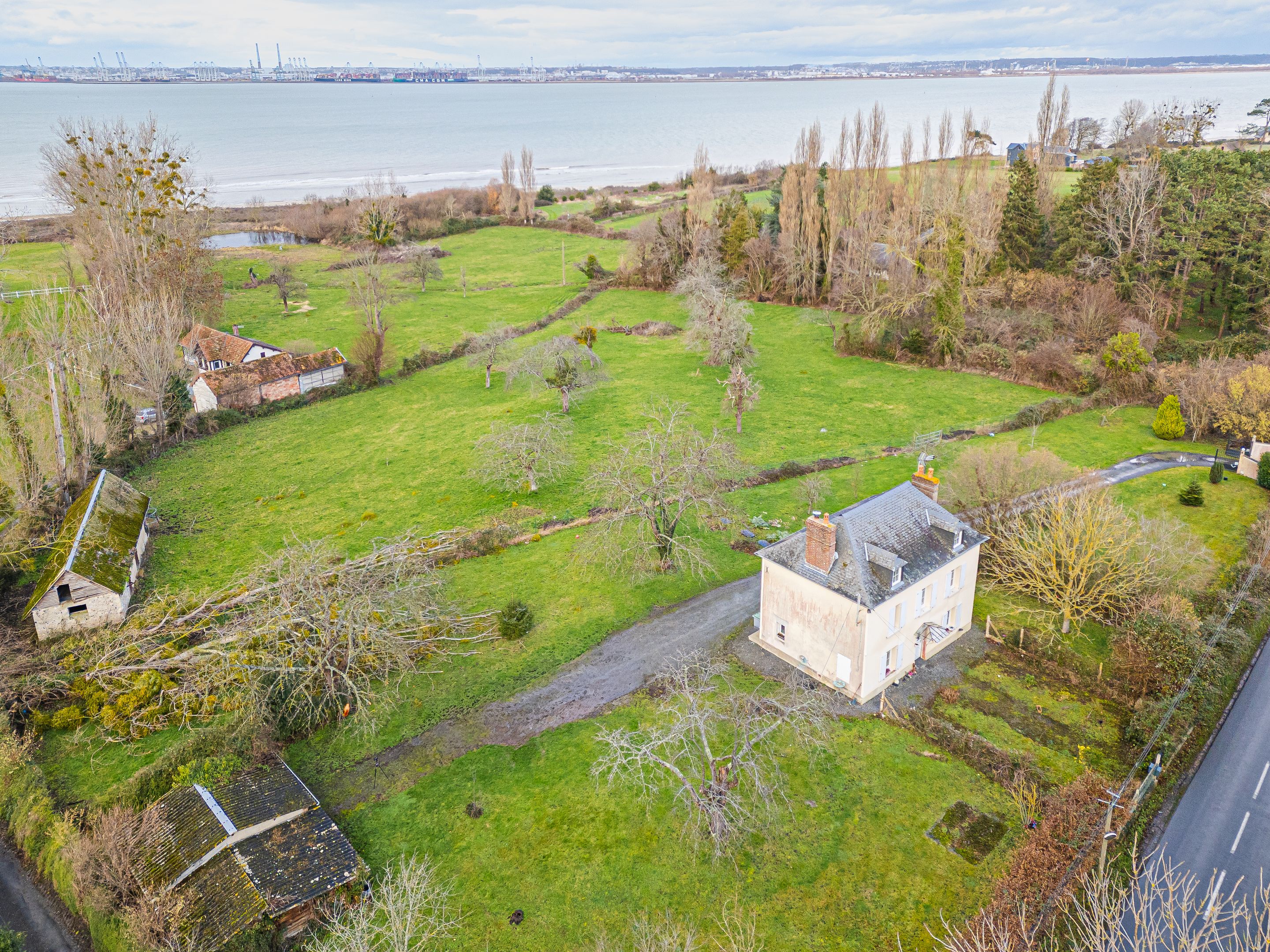 Entre Trouville et Honfleur, maison de maître de 124 m² édifiée sur un terrain de 2,7 hectares offrant un accès direct à la plage et classé zone naturelle. Au rez-de-chaussée : entrée, salle à manger/cuisine ouverte, salon avec cheminée, salle de bains et toilettes. Au 1er étage : 4 chambres dont deux petites avec vue mer. Au 2ème étage : combles aménageables. En dépendance : garage avec espace de stockage et ancien bâtiment agricole d'environ 70 m² au sol.