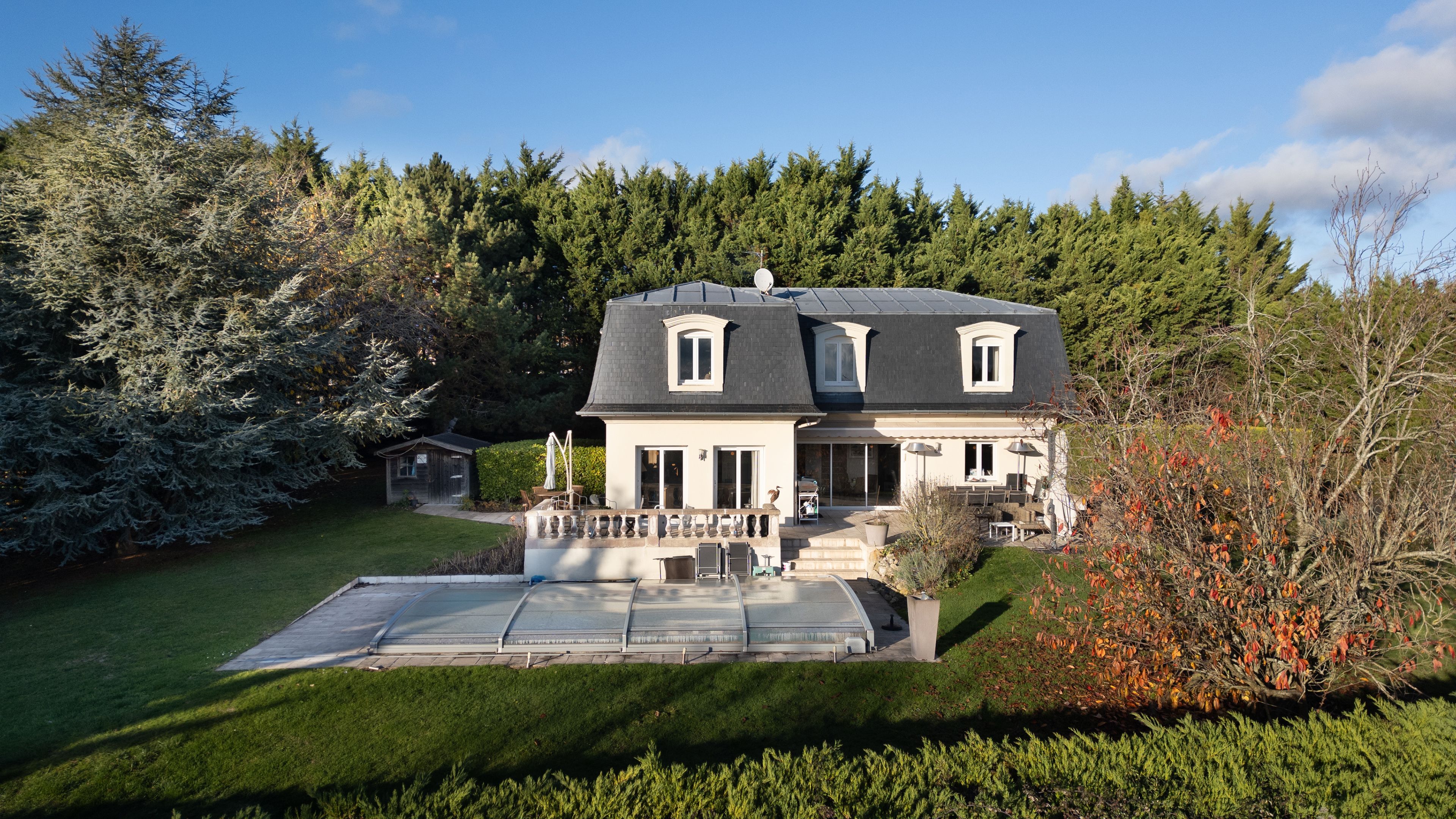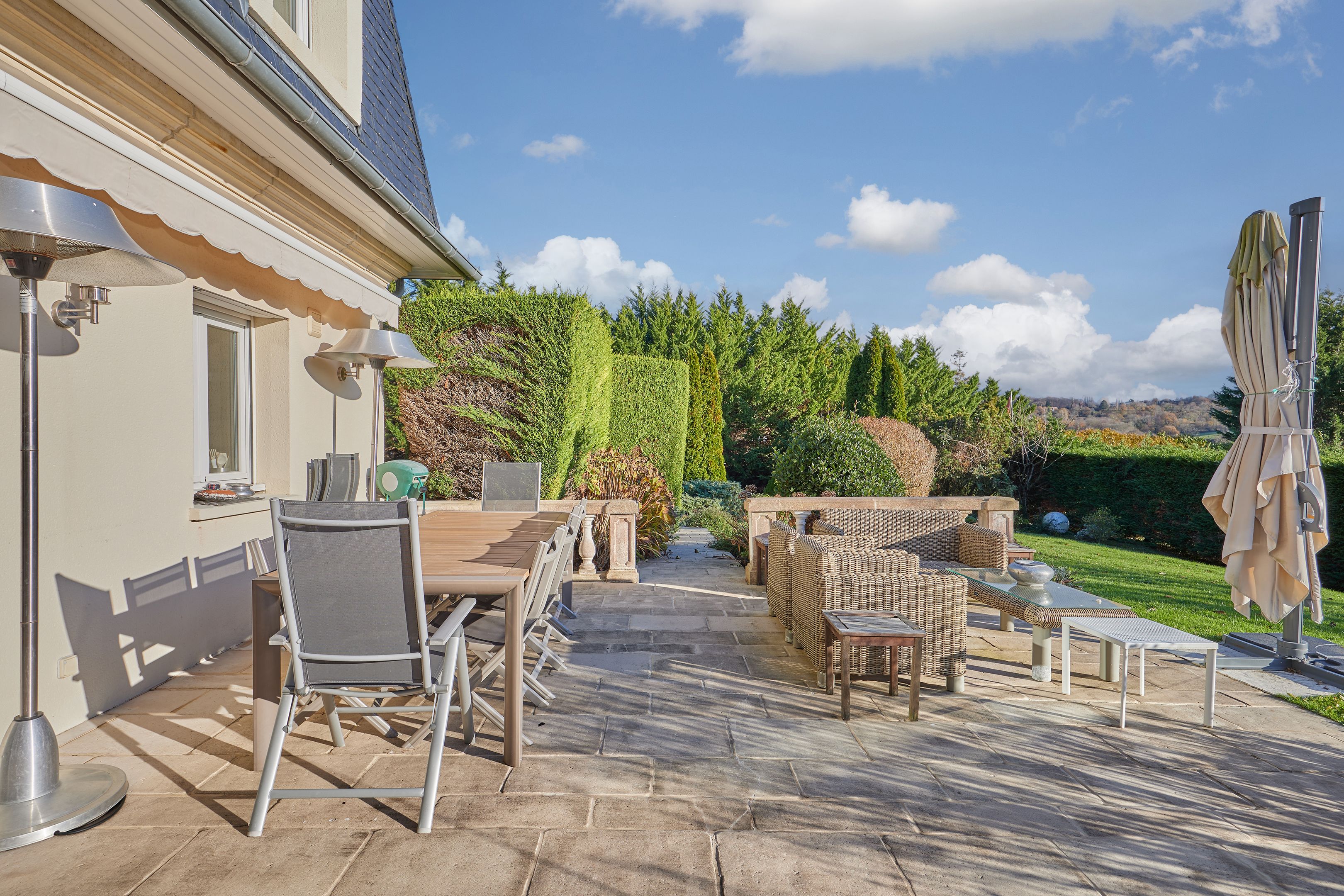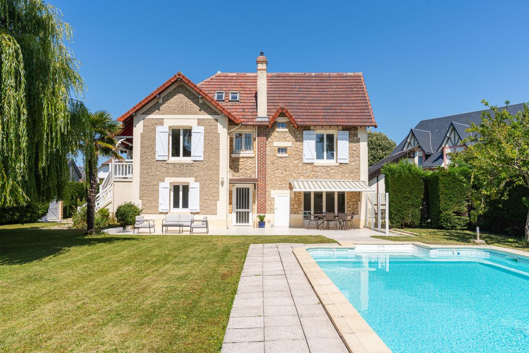 À 10 minutes de Deauville, dans un village avec commerces, belle maison familiale avec piscine édifiée sur un terrain de 3134 m², clos et arboré, offrant une vue magnifique sur la vallée de Touques. Au rez-de-chaussée : entrée, cuisine équipée ouverte sur deux espaces salle à manger avec cheminée à double foyer, spacieux salon, l'ensemble bénéficiant de belles ouvertures sur la terrasse exposée plein sud, toilettes invités. À l'étage : large pièce palière desservant trois chambres dont une avec salle de bains, buanderie, salle d'eau avec toilettes, toilettes indépendantes. Au sous-sol, avec accès par l'intérieur et l'extérieur : belle pièce de 20 m² à usage de salle de sport, double garage et espace de stockage. Abri de jardin.