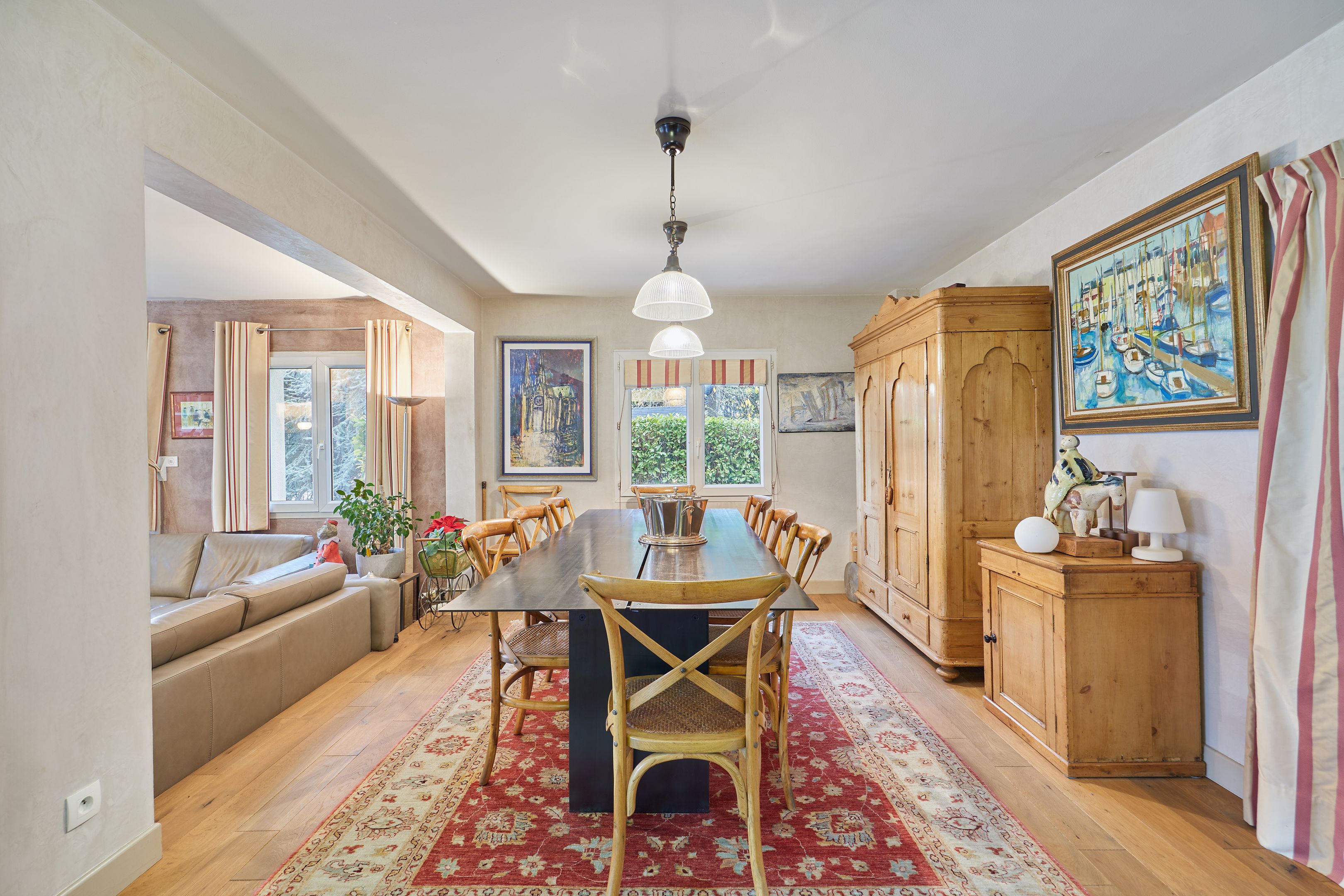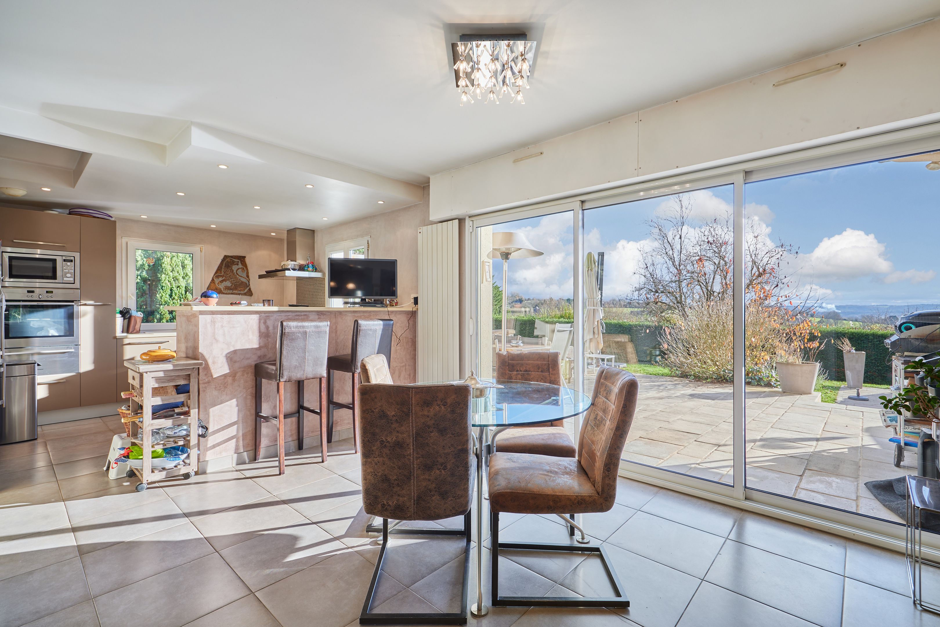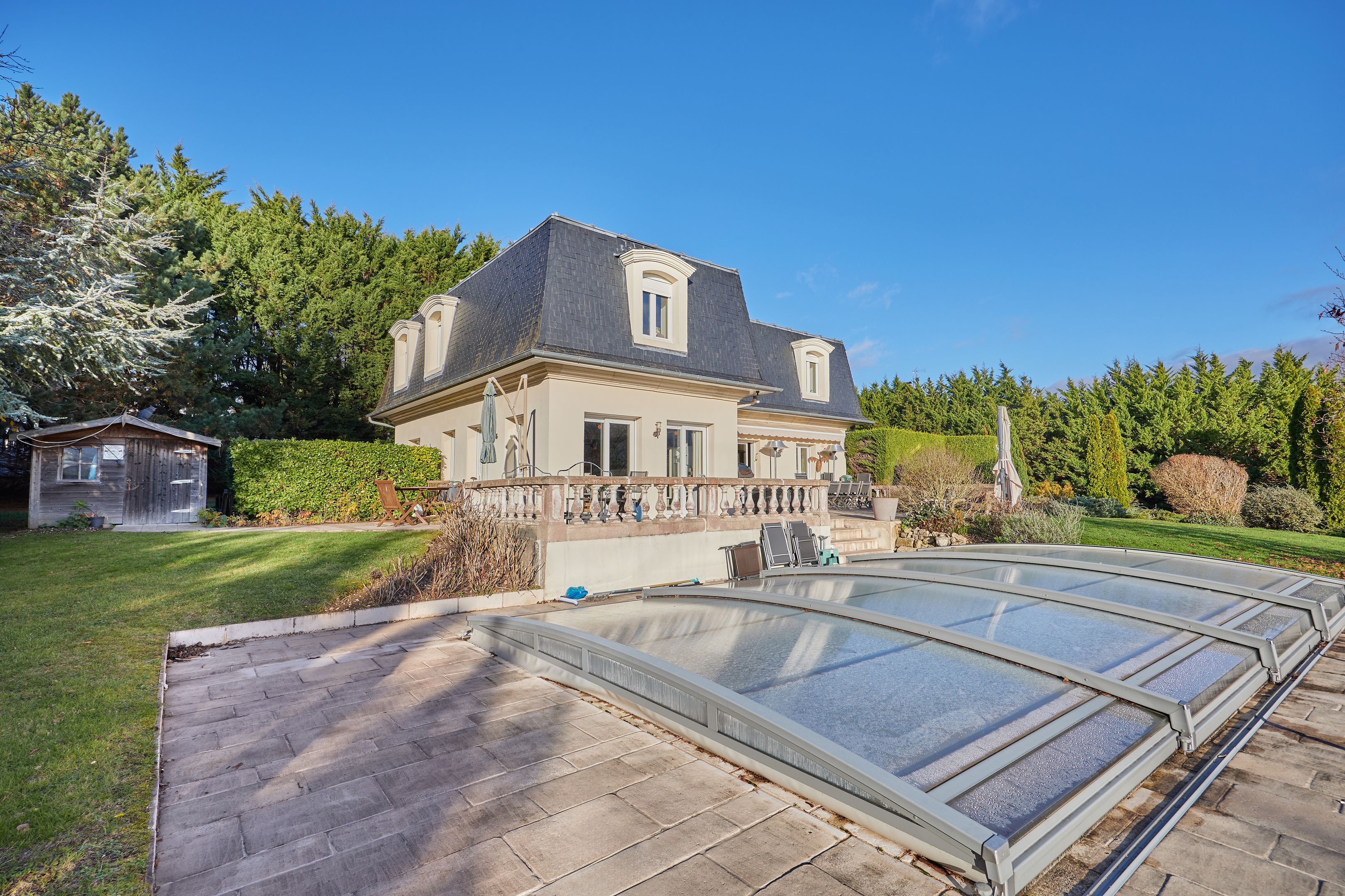 À 10 minutes de Deauville, dans un village avec commerces, belle maison familiale avec piscine édifiée sur un terrain de 3134 m², clos et arboré, offrant une vue magnifique sur la vallée de Touques. Au rez-de-chaussée : entrée, cuisine équipée ouverte sur deux espaces salle à manger avec cheminée à double foyer, spacieux salon, l'ensemble bénéficiant de belles ouvertures sur la terrasse exposée plein sud, toilettes invités. À l'étage : large pièce palière desservant trois chambres dont une avec salle de bains, buanderie, salle d'eau avec toilettes, toilettes indépendantes. Au sous-sol, avec accès par l'intérieur et l'extérieur : belle pièce de 20 m² à usage de salle de sport, double garage et espace de stockage. Abri de jardin.
