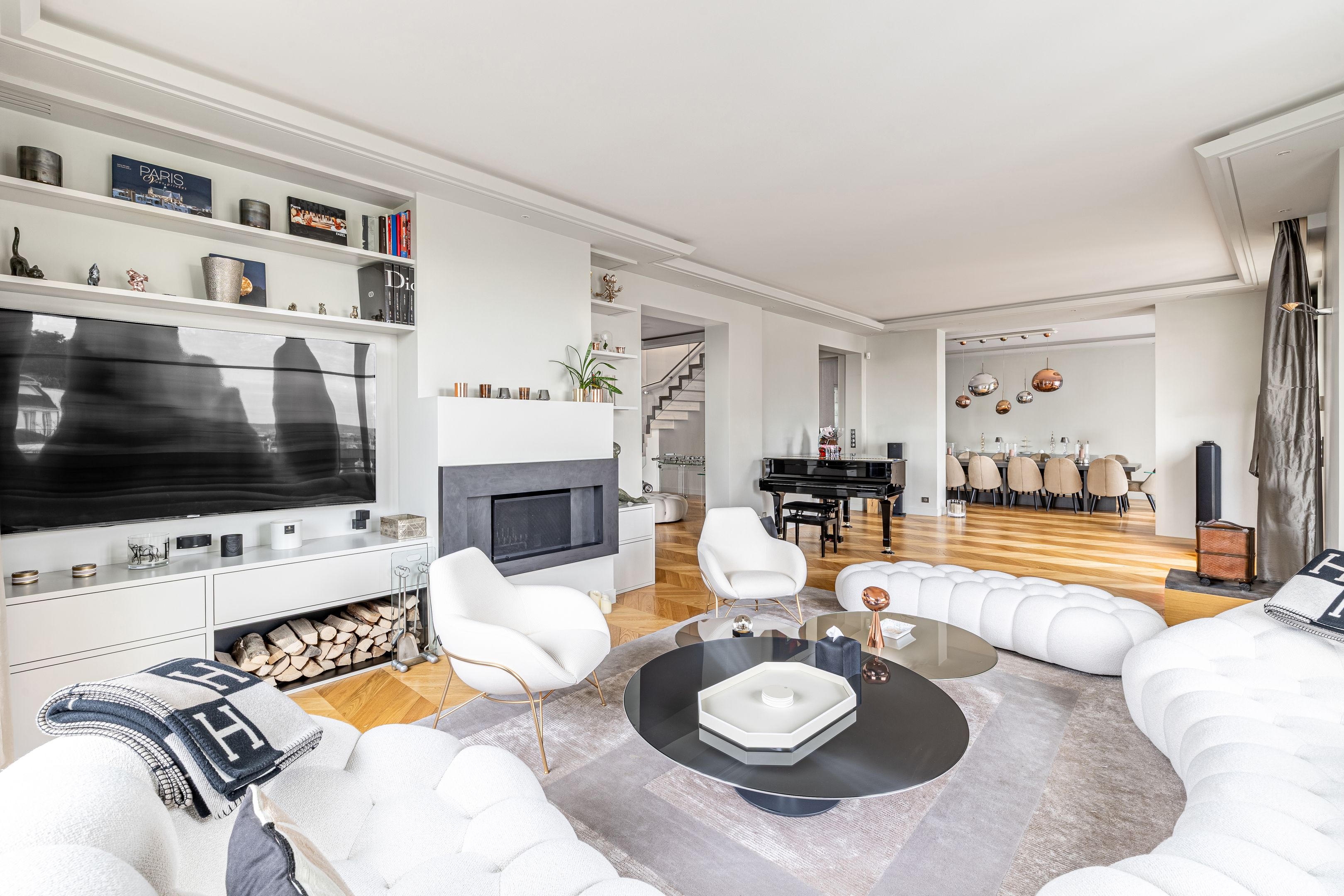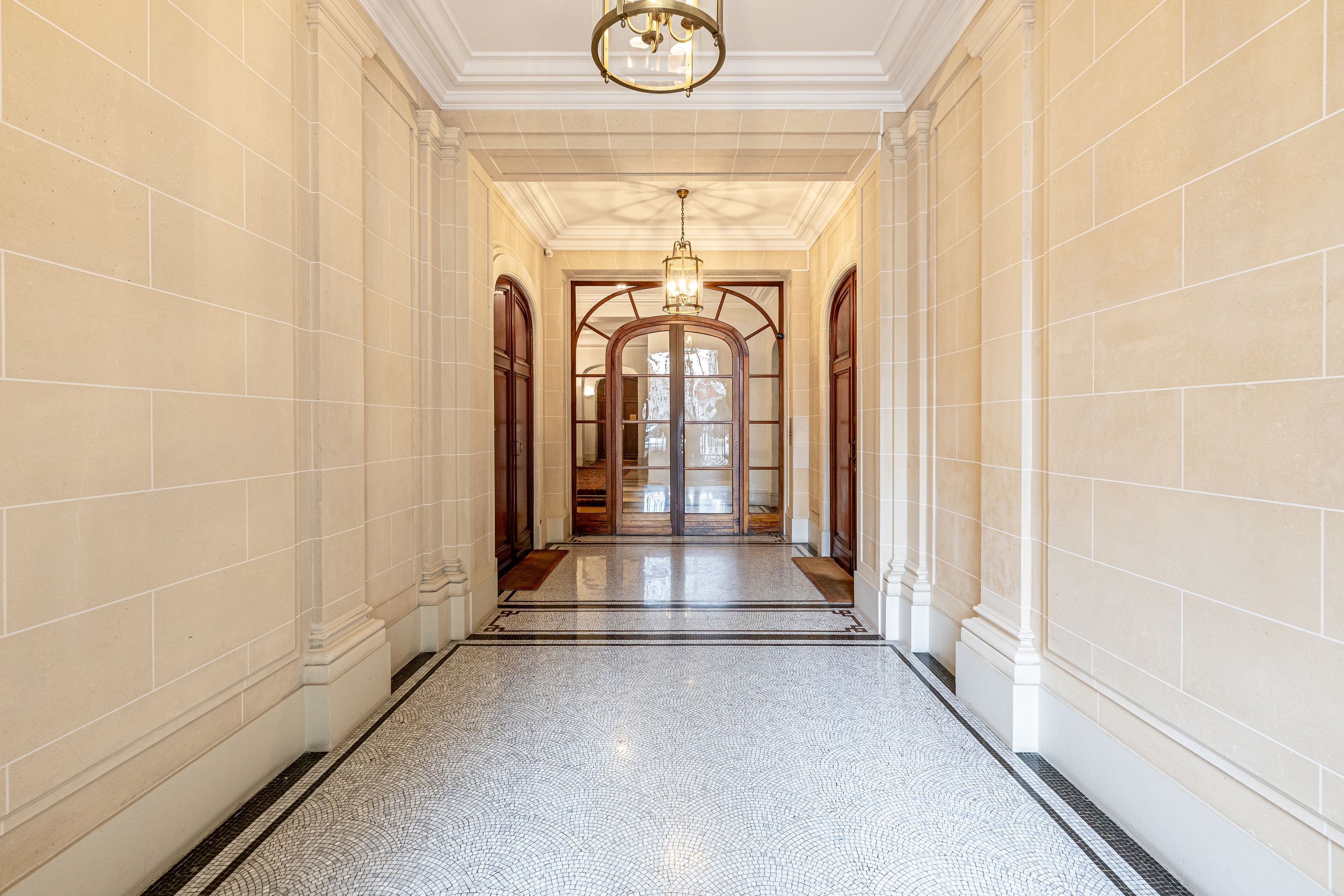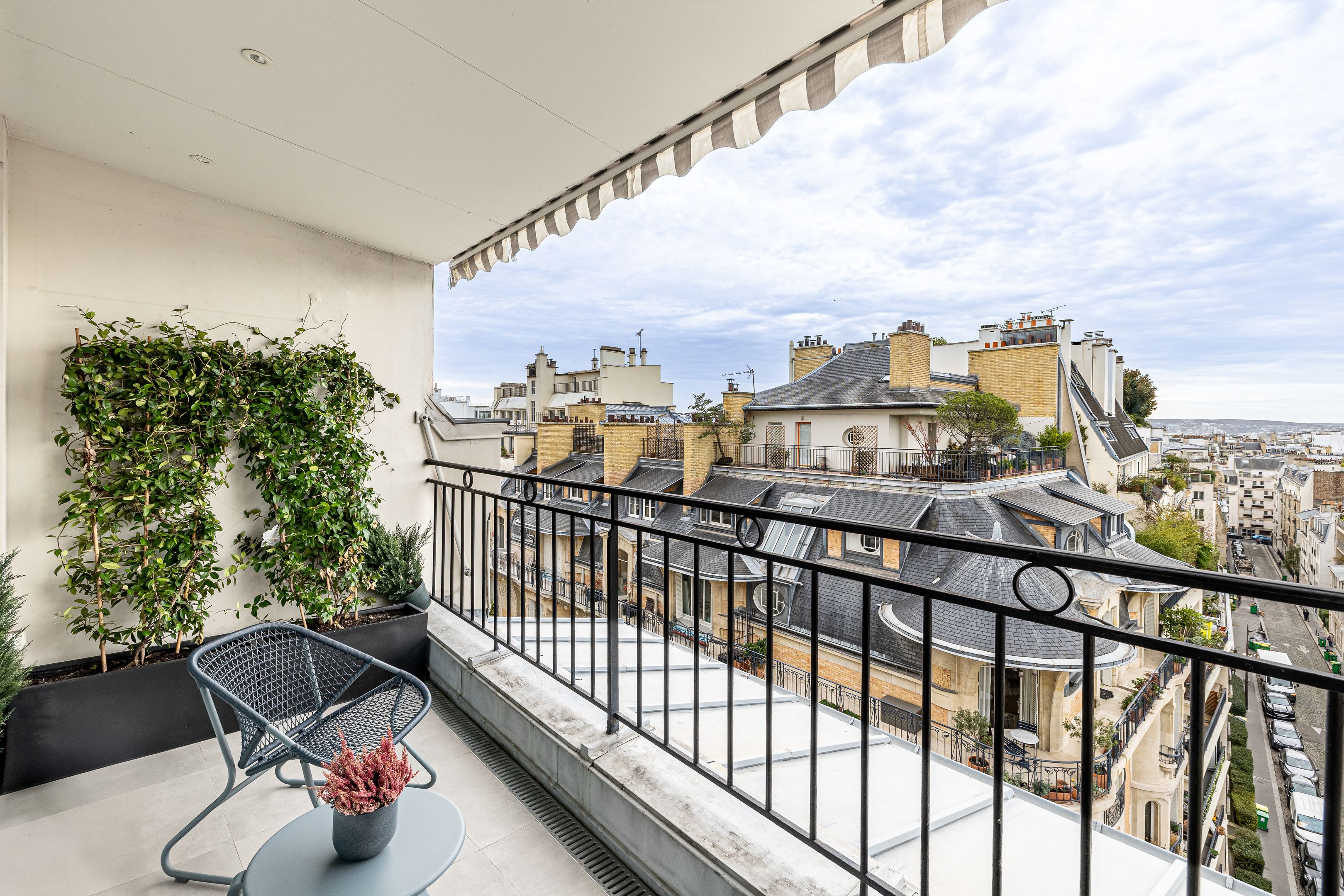 À proximité immédiate de l'avenue Georges Mandel, des commerces de la rue de la Pompe et des écoles de renom, immeuble haussmannien de grand standing, superbe appartement familial et de réception en duplex de 332 m², au 6ème et dernier étage, doté de très beaux volumes, d'une vue exceptionnelle et d'un bel ensoleillement grâce à son orientation sud-ouest. Élégante galerie d'entrée desservant une triple réception, vaste cuisine ouverte, une chambre avec sa salle de douches et ses toilettes, une lingerie, un dressing et des toilettes invités. À l'étage, une suite parentale avec dressing, salle de bains, toilettes, 2 chambres, bureau bénéficiant d'une terrasse ou 5ème chambre, salle de bains avec toilettes, salle de douches avec toilettes, espace bien-être avec sauna. Cave.