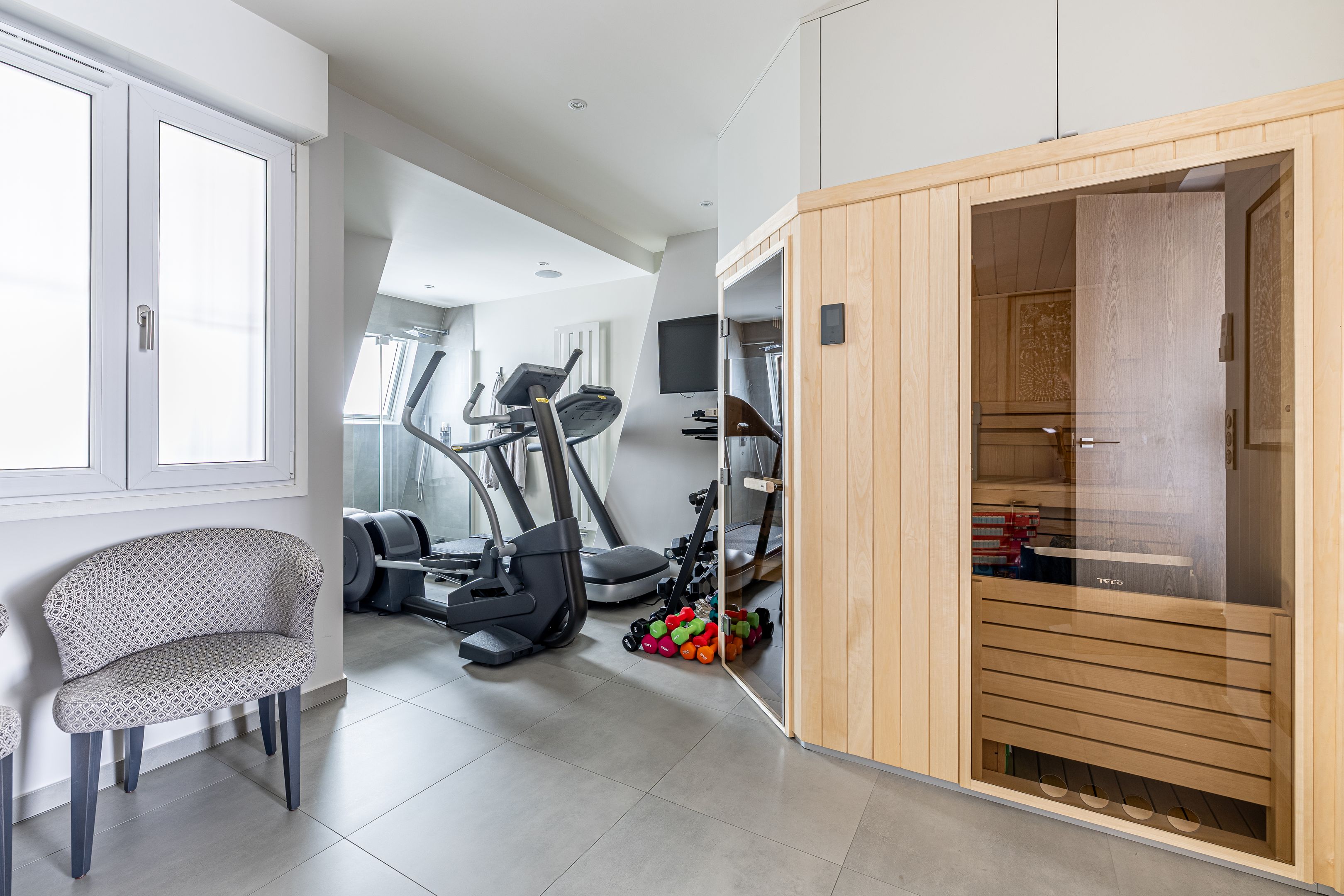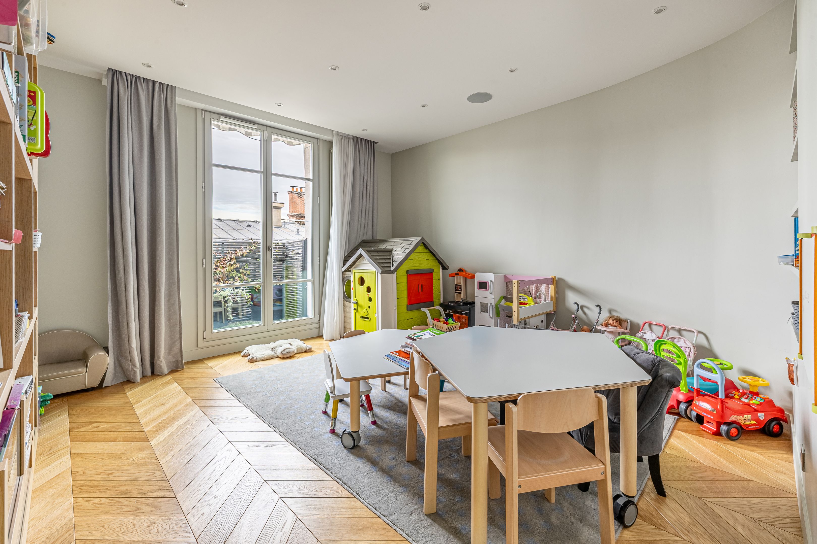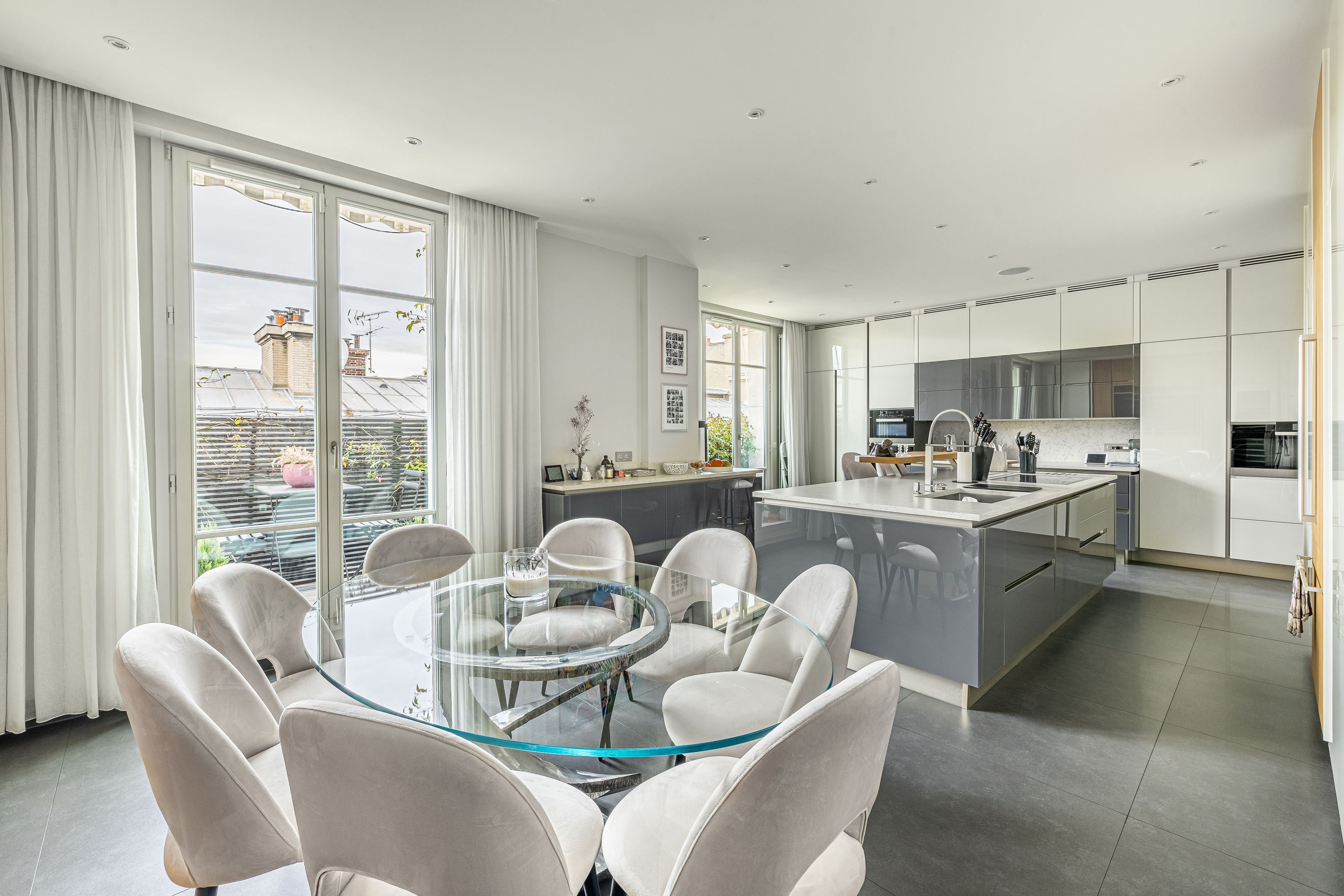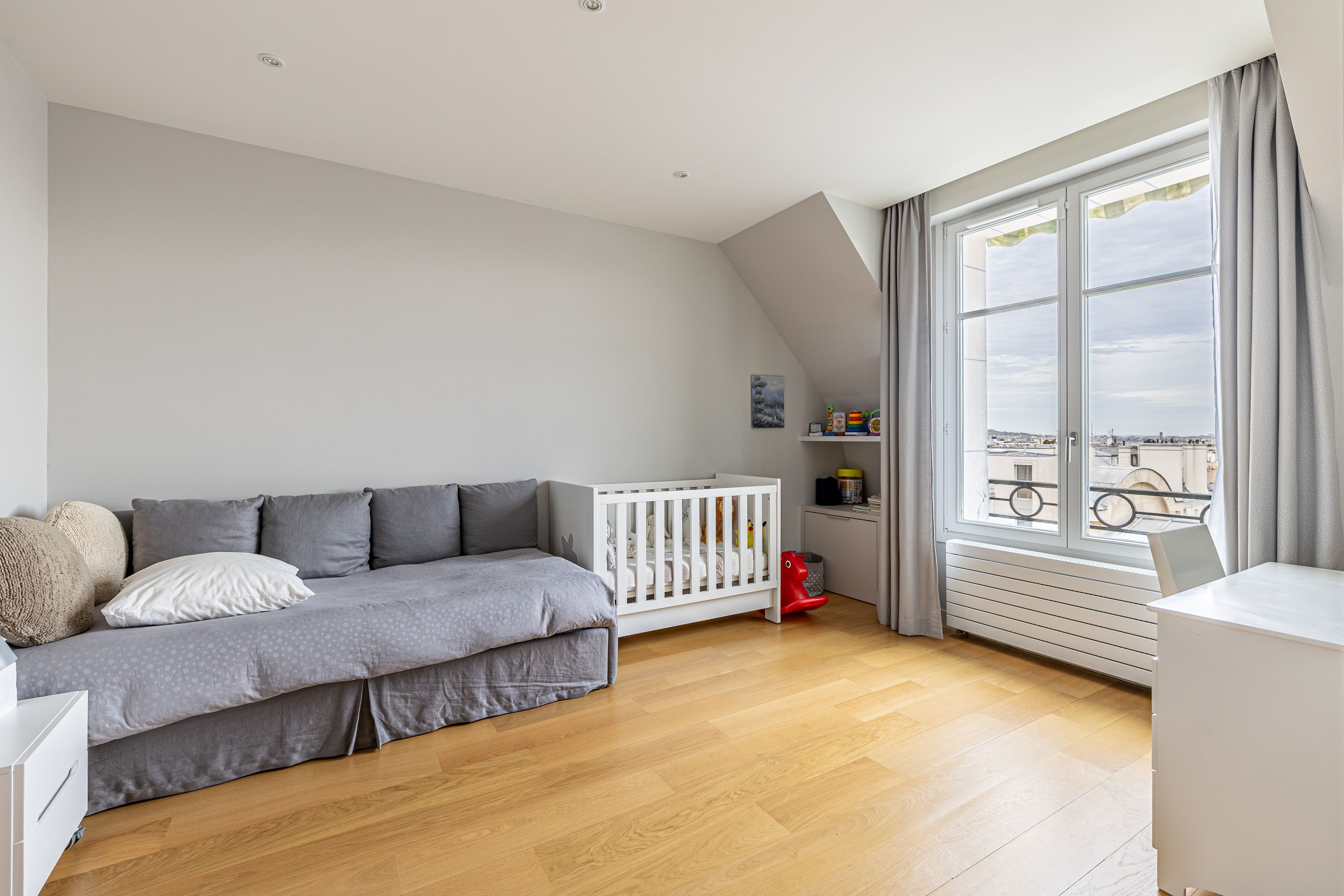 À proximité immédiate de l'avenue Georges Mandel, des commerces de la rue de la Pompe et des écoles de renom, immeuble haussmannien de grand standing, superbe appartement familial et de réception en duplex de 332 m², au 6ème et dernier étage, doté de très beaux volumes, d'une vue exceptionnelle et d'un bel ensoleillement grâce à son orientation sud-ouest. Élégante galerie d'entrée desservant une triple réception, vaste cuisine ouverte, une chambre avec sa salle de douches et ses toilettes, une lingerie, un dressing et des toilettes invités. À l'étage, une suite parentale avec dressing, salle de bains, toilettes, 2 chambres, bureau bénéficiant d'une terrasse ou 5ème chambre, salle de bains avec toilettes, salle de douches avec toilettes, espace bien-être avec sauna. Cave.