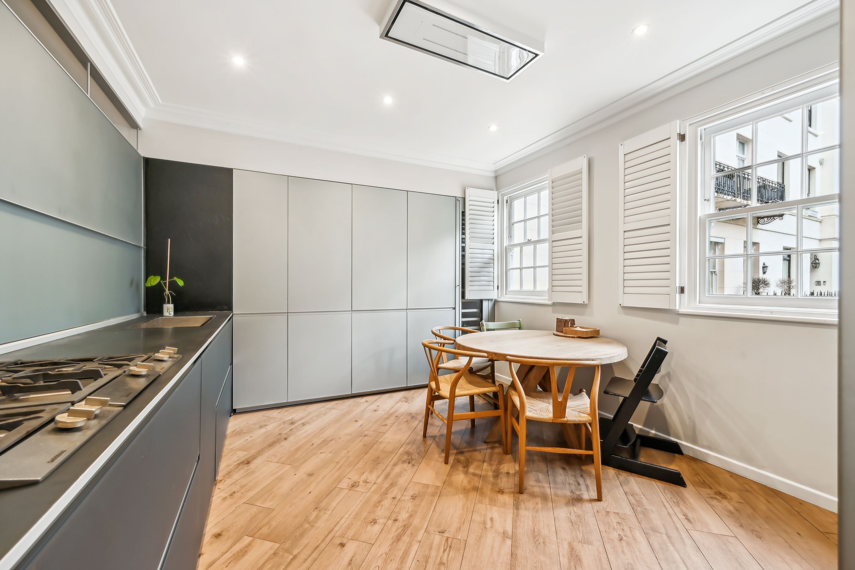 Set on a desirable square, this recently refurbished family house, benefits from 2 spacious receptions, modern kitchen, communal garden, 5 double bedrooms, 4 bathrooms, walking wardrobe, built in storage and boasting wooden floors throughout.