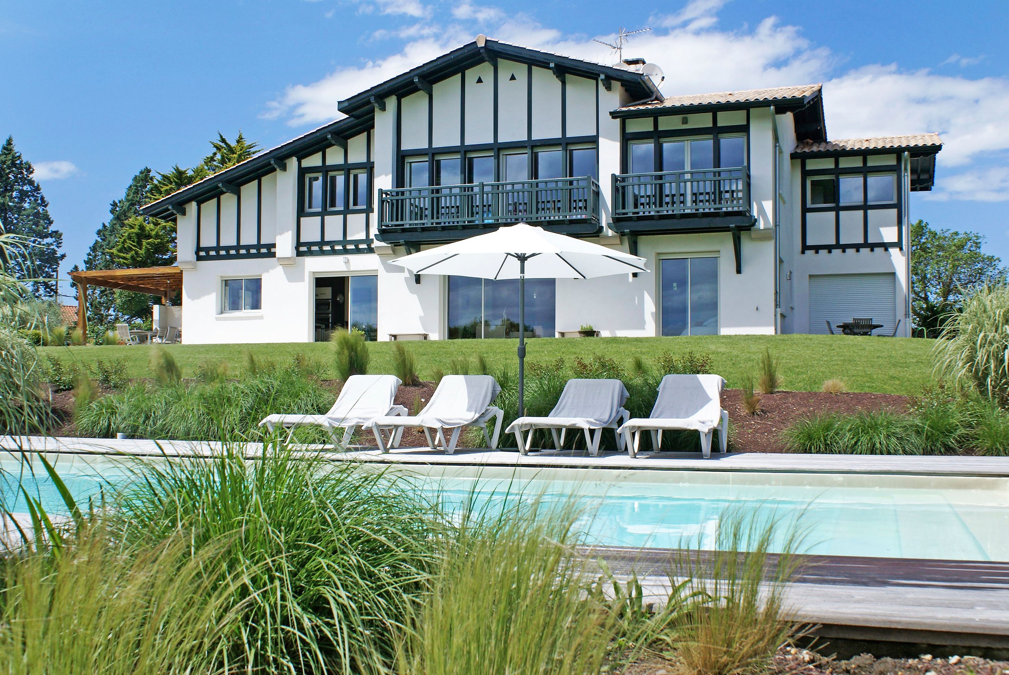 Au cœur d'un parc paysagé (table de ping-pong, trampoline) au calme et sans vis-à-vis, cette magnifique maison néo-basque de 300m² aux magnifiques volumes, à la belle luminosité et aux prestations haut de gamme. Rez-de-chaussée : grand salon ouvert sur le jardin et la piscine (11 x 5 m) par de grandes baies vitrées, cuisine équipée donnant sur une grande terrasse, chambre de plain-pied avec sa salle de bains et son accès direct à la terrasse et au jardin. A l'étage : 4 grandes chambres avec leurs salles de bain ou d'eau indépendantes. Car Port.