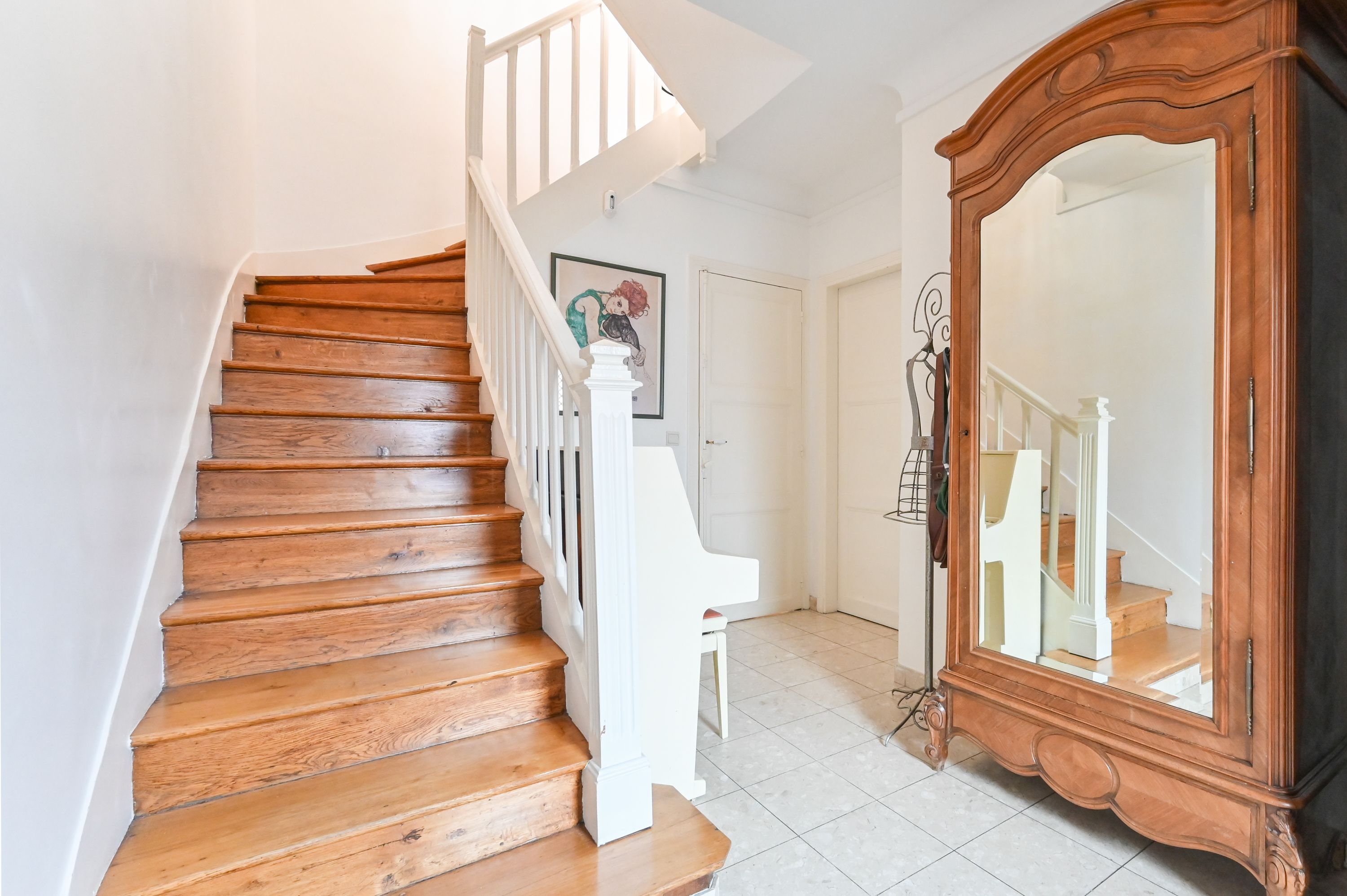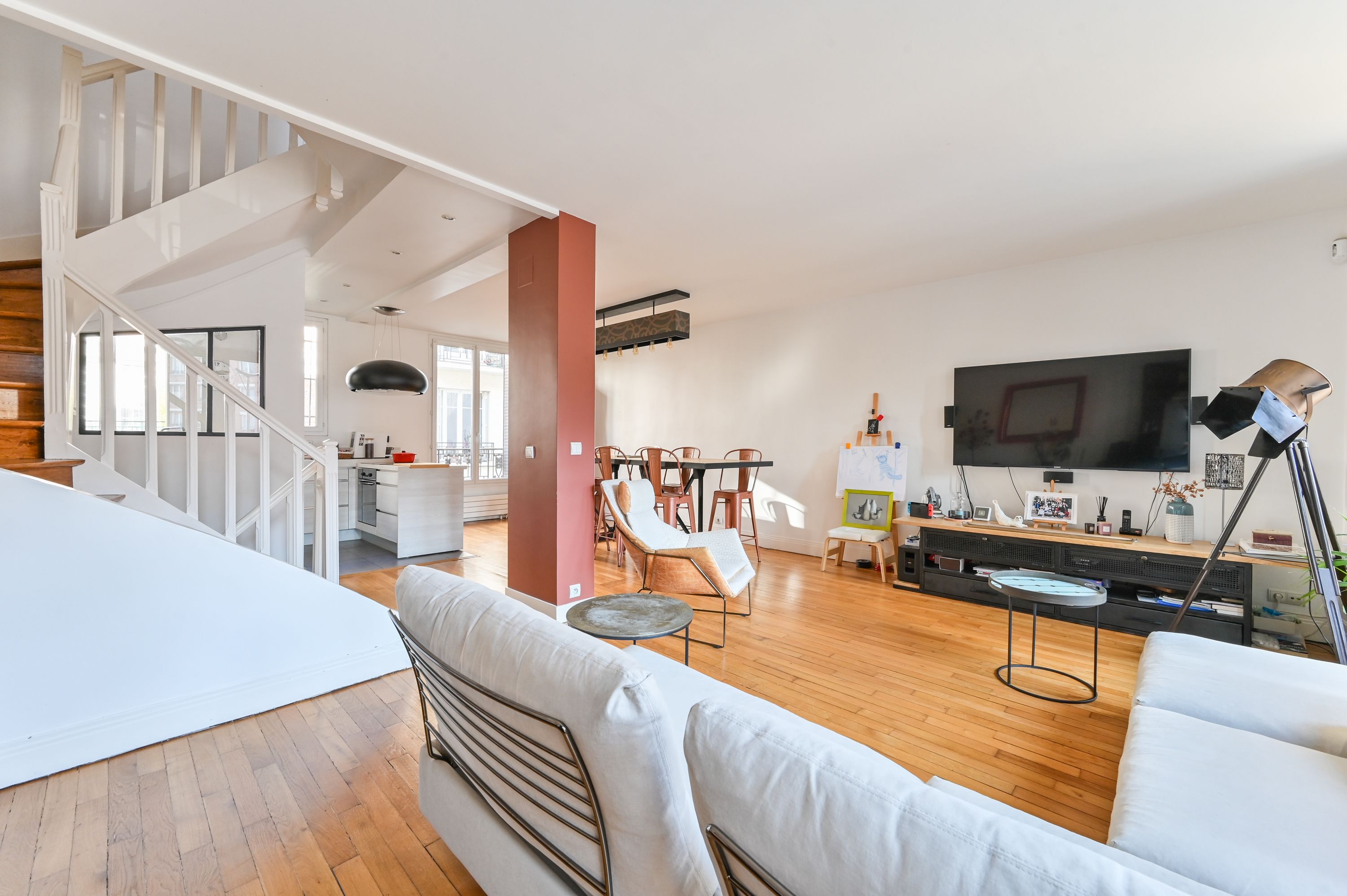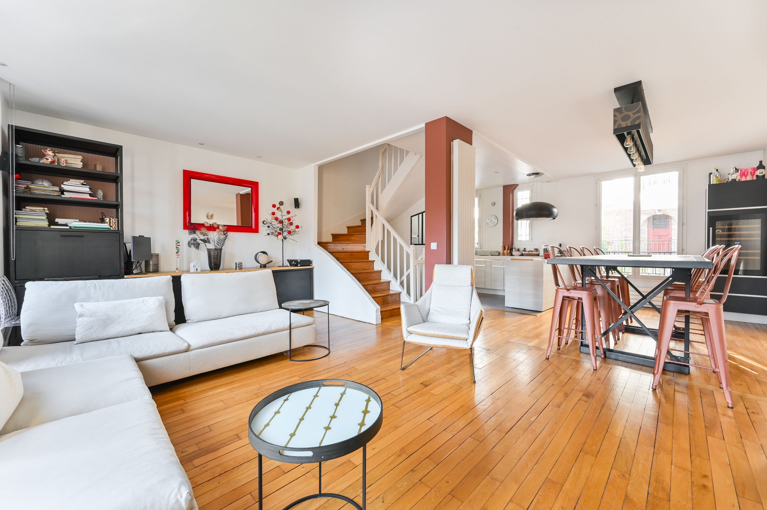 Quartier privilégié de la Campagne à Paris, superbe maison de 1930, lumineuse, d'une surface totale d'environ 200m² (174m² de surface utile), bénéficiant d'une terrasse de 28m². Rez-de-chaussée : entrée, chambre, salle d'eau, toilettes, garage, buanderie, terrasse. 1er étage : salon, cuisine ouverte, salle à manger. 2ème étage : 3 chambres, salle de bains, toilettes. 3ème étage : 2 chambres, combles. Grande cave de 15m². Emplacement de parking.