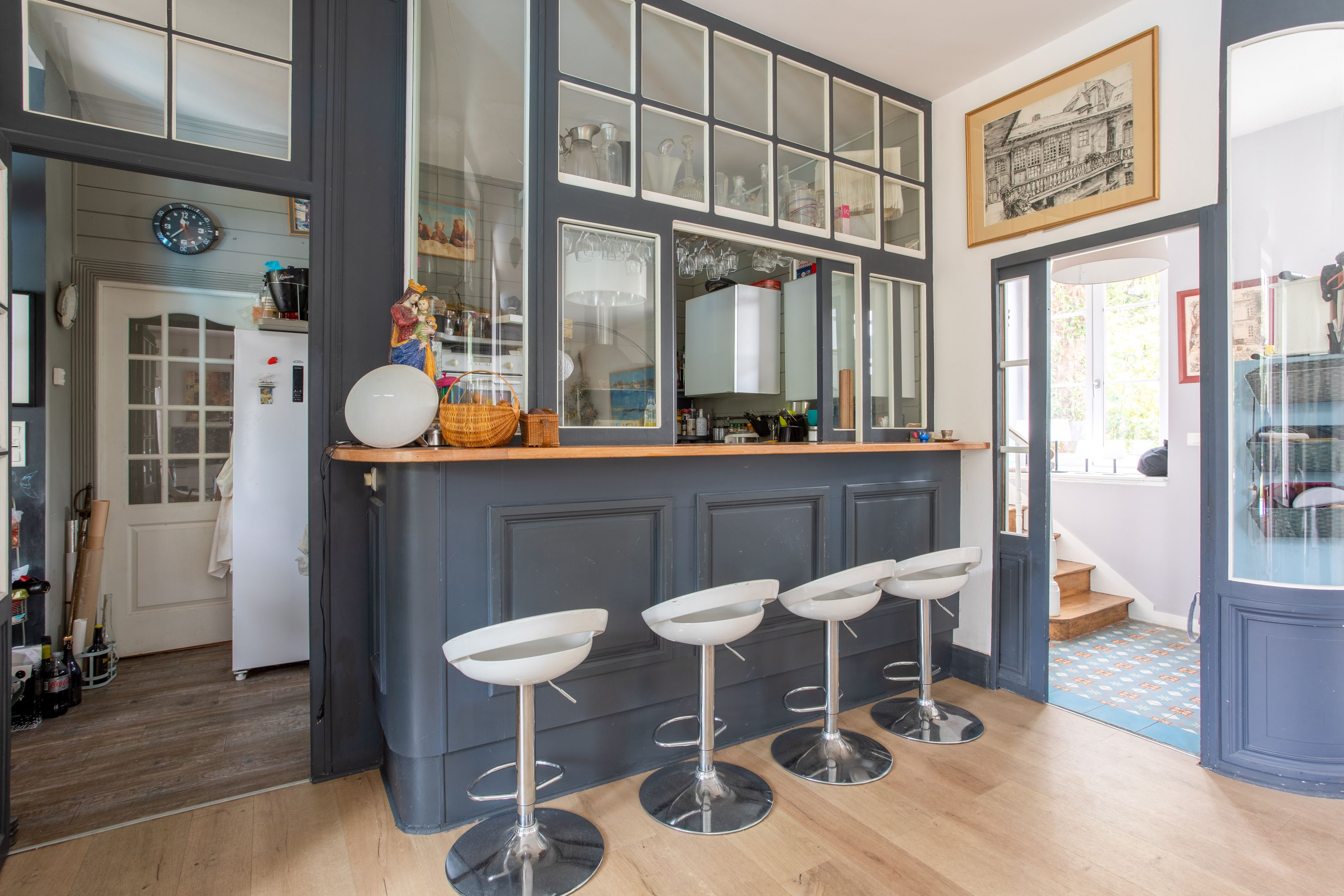Au 2ème étage : 2 chambres, bureau, salle de bains et toilettes. Combles aménagés au dernier étage. Chaufferie et dépendances aménageables. Enfin stationnement dans la cour pour 4 véhicules.
