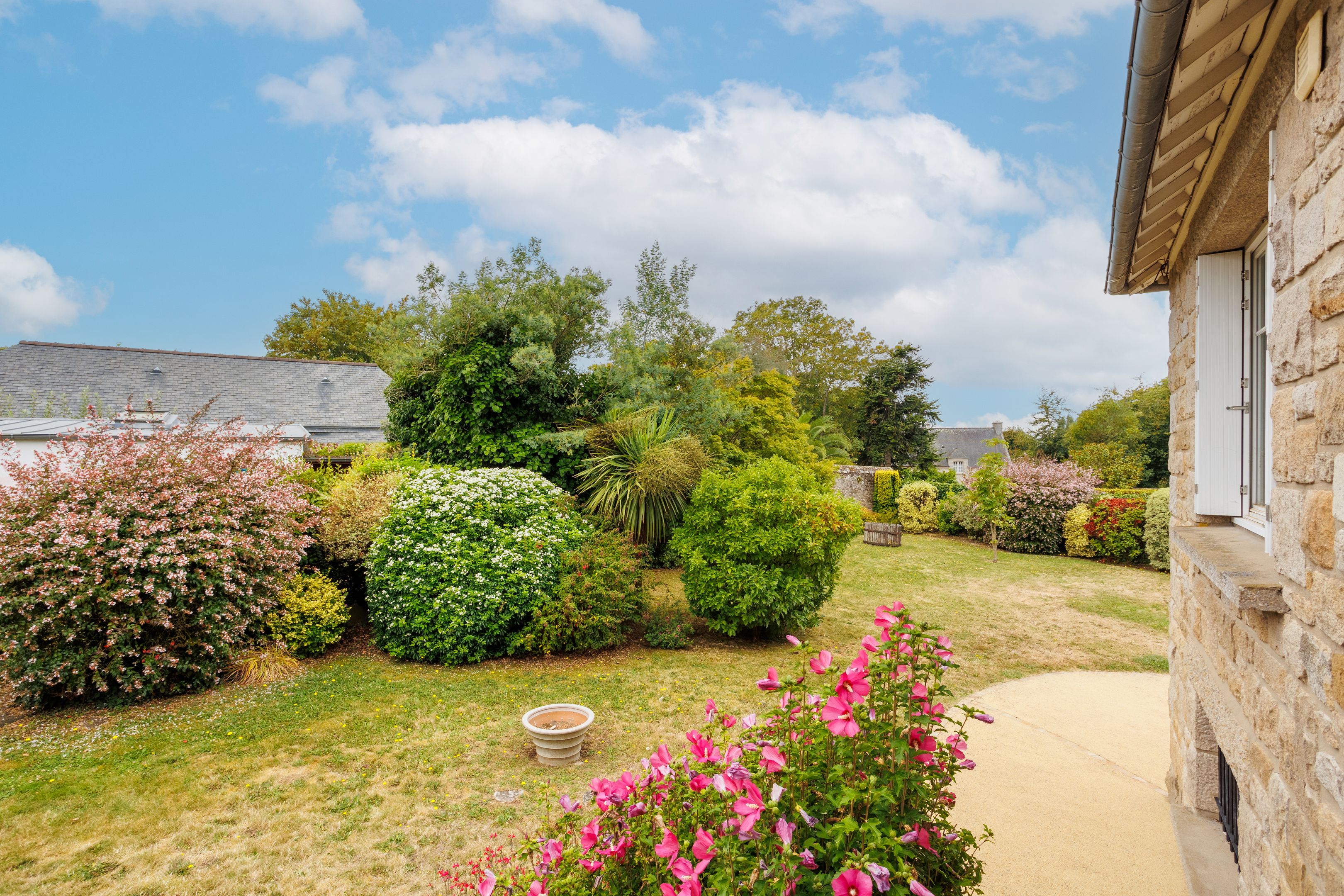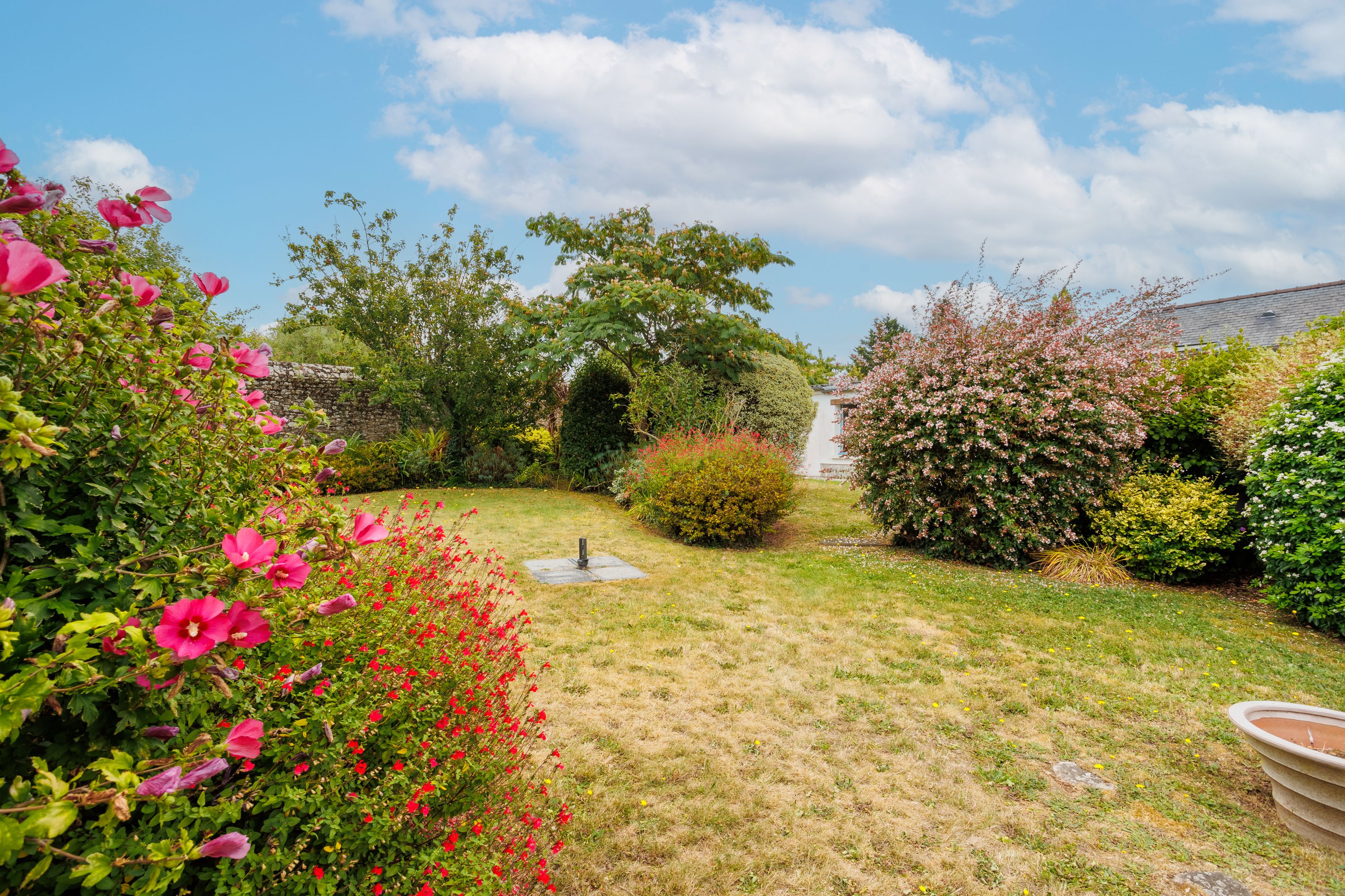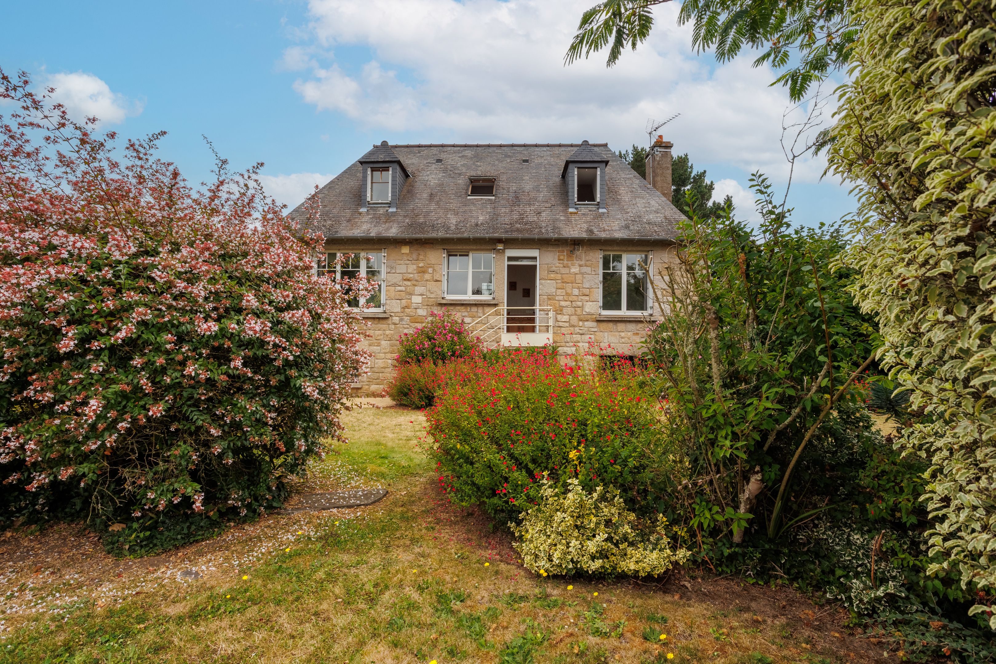 À 50m de la mer, entre la plage du Prieuré et la plage aux Moines, dans un environnement résidentiel arboré. Sur un terrain d'environ 1150m², maison en pierres apparentes bénéficiant d’un cadre privilégié, de luminosité et d'agréables extérieurs. Au rez-de-chaussée, lumineux salon triple exposition bénéficiant d'une échappée mer, salle à manger et cuisine ouverte, chambre, salle d'eau. À l'étage, deux chambres avec aperçu mer, espace bureau, salle d'eau. En rez-de-jardin, chambre, cuisine d'été, buanderie, cave. En annexe, maisonnette composée d'une cuisine aménagée, deux chambres, salle d'eau et dépendance de 30m² supplémentaires à aménager. Enfin, très beau jardin paysagé clos de mur bien ensoleillé grâce à son orientation sud-ouest.