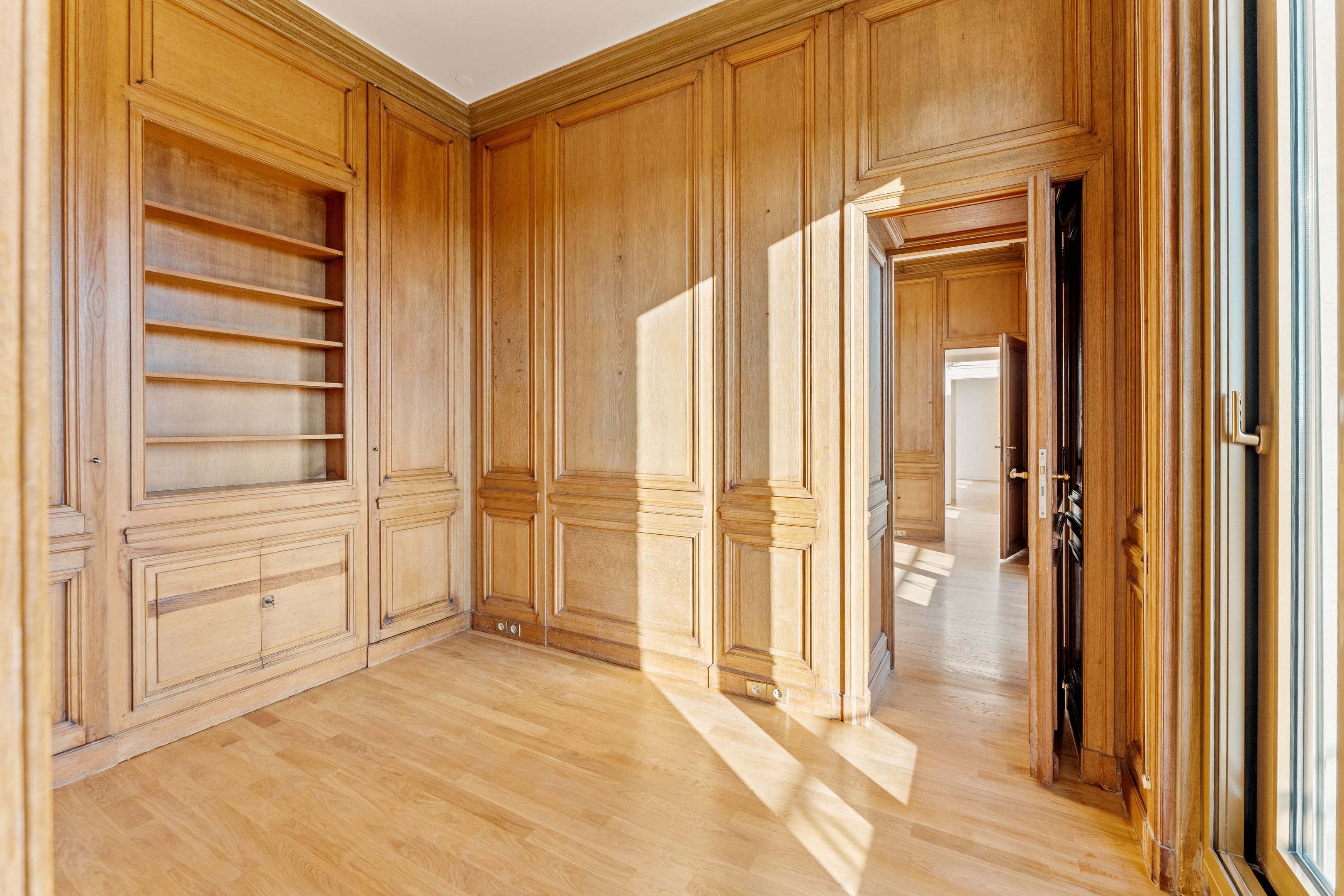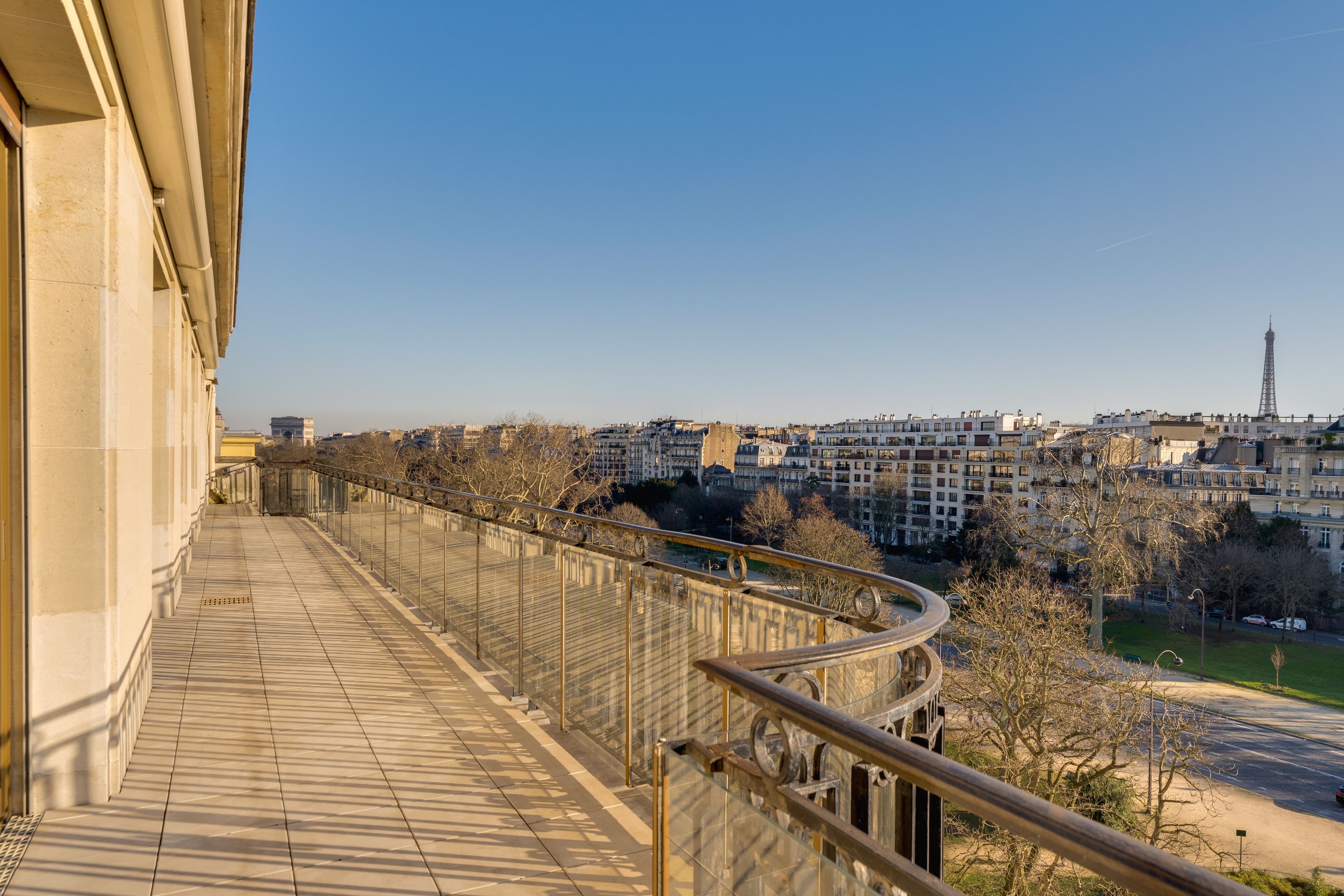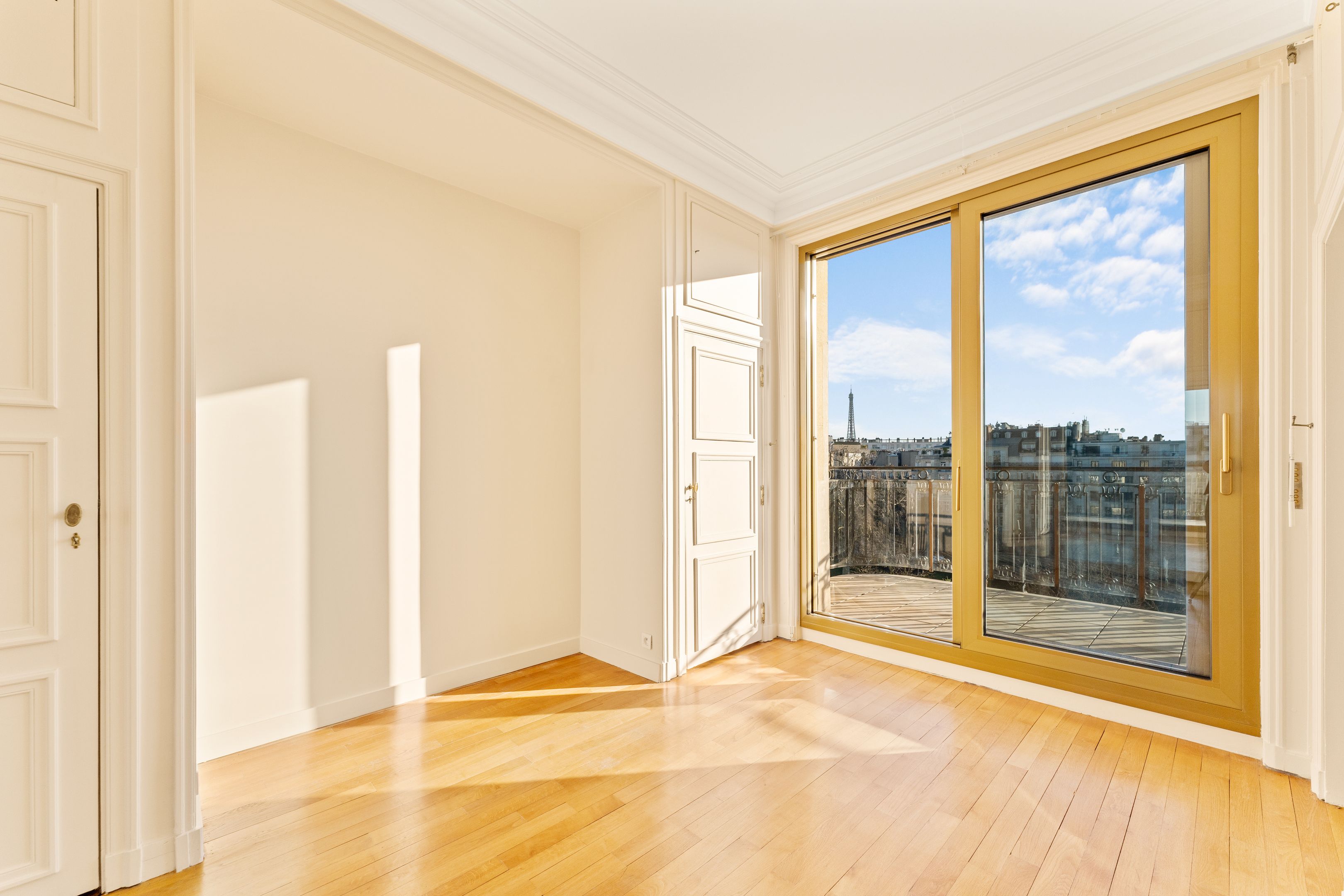 Immeuble 1950 de haut standing, appartement de réception, non meublé, de 346 m², au sixième étage desservi par ascenseur. La galerie d'entrée mène à un salon de 60 m² avec une terrasse de 40 m² donnant sur l'avenue Foch (vues tour Eiffel, arc de Triomphe, bois de Boulogne) et à une salle à manger. Une vaste cuisine, dînatoire, permettra l'organisation de dîners familiaux ou de réception. La suite parentale est composée d'un bureau (ou chambre supplémentaire), d'un petit salon, d'un dressing et d'une chambre avec salle de bains complète. Deux grandes chambres, chacune avec salle d'eau, complètent cet appartement, qui occupe seul l'étage. Espace buanderie-lingerie. Vestiaire et toilettes invités. Une cave et un emplacement de parking en sous-sol. Résidence sécurisée avec digicode, visiophone, gardien. Location en bail Code civil uniquement. Disponible immédiatement.