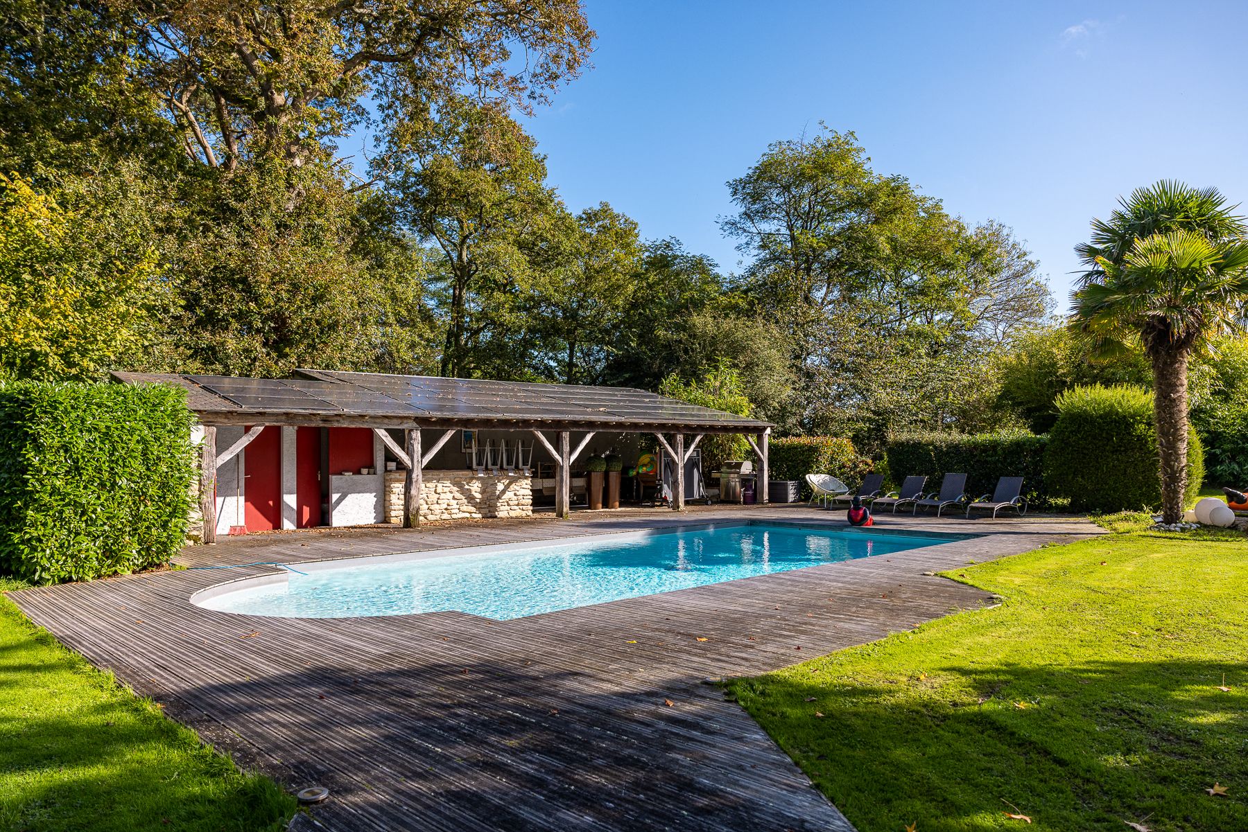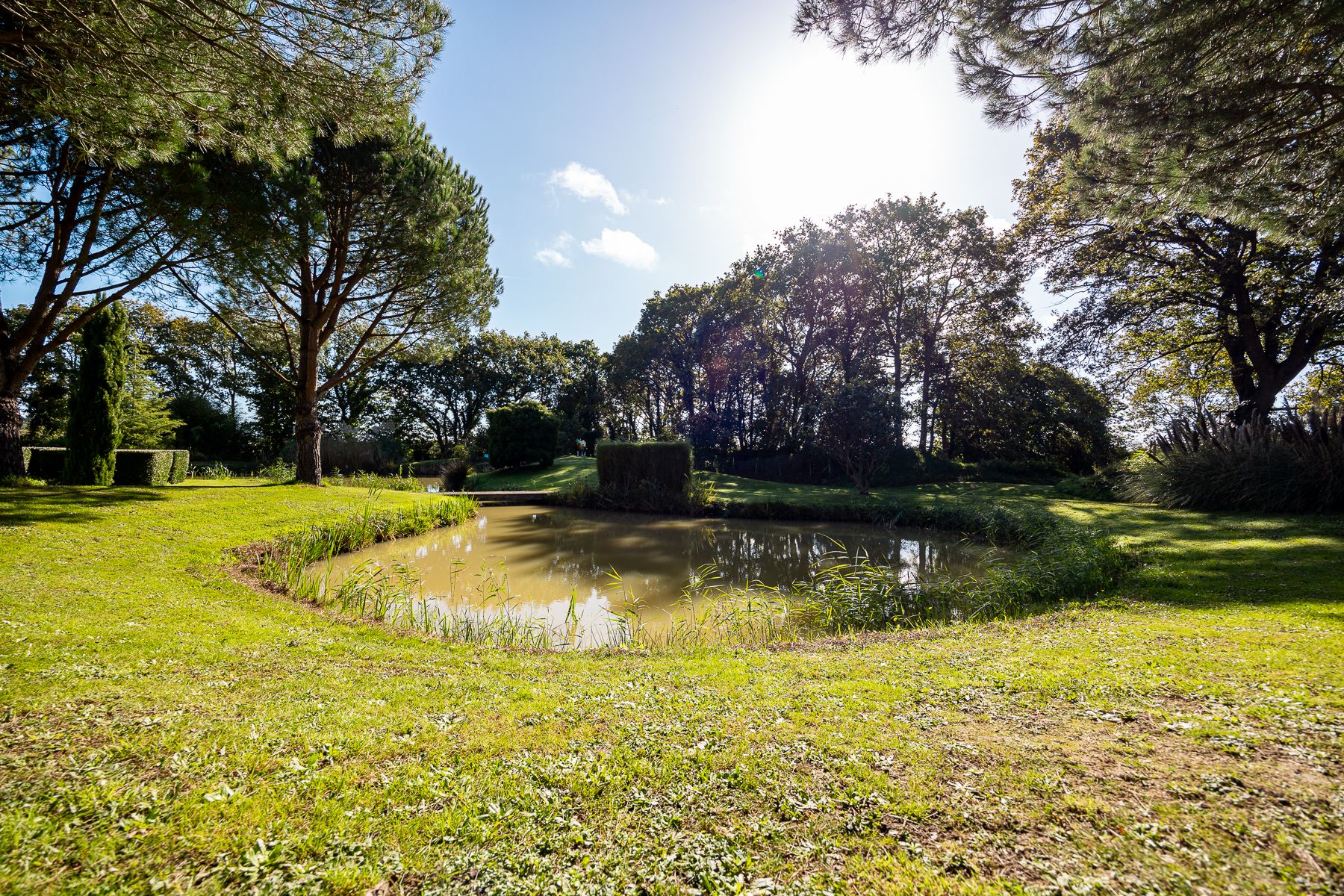 Sur la presqu’île guérandaise, proche plages et commodités, manoir datant de 1584, entièrement rénové en 2004. Propriété principale d'environ 280m², dépendances, ancienne chapelle, piscine chauffée, pool-house, jardins à la française, étangs, practice de golf au coeur d'un parc de 10 hectares. Maison de maître : grand hall d’entrée, vaste séjour avec magnifique cheminée en granit, bureau-salon de télévision, salle à manger donnant sur le jardin à la française, grande cuisine aménagée et équipée.