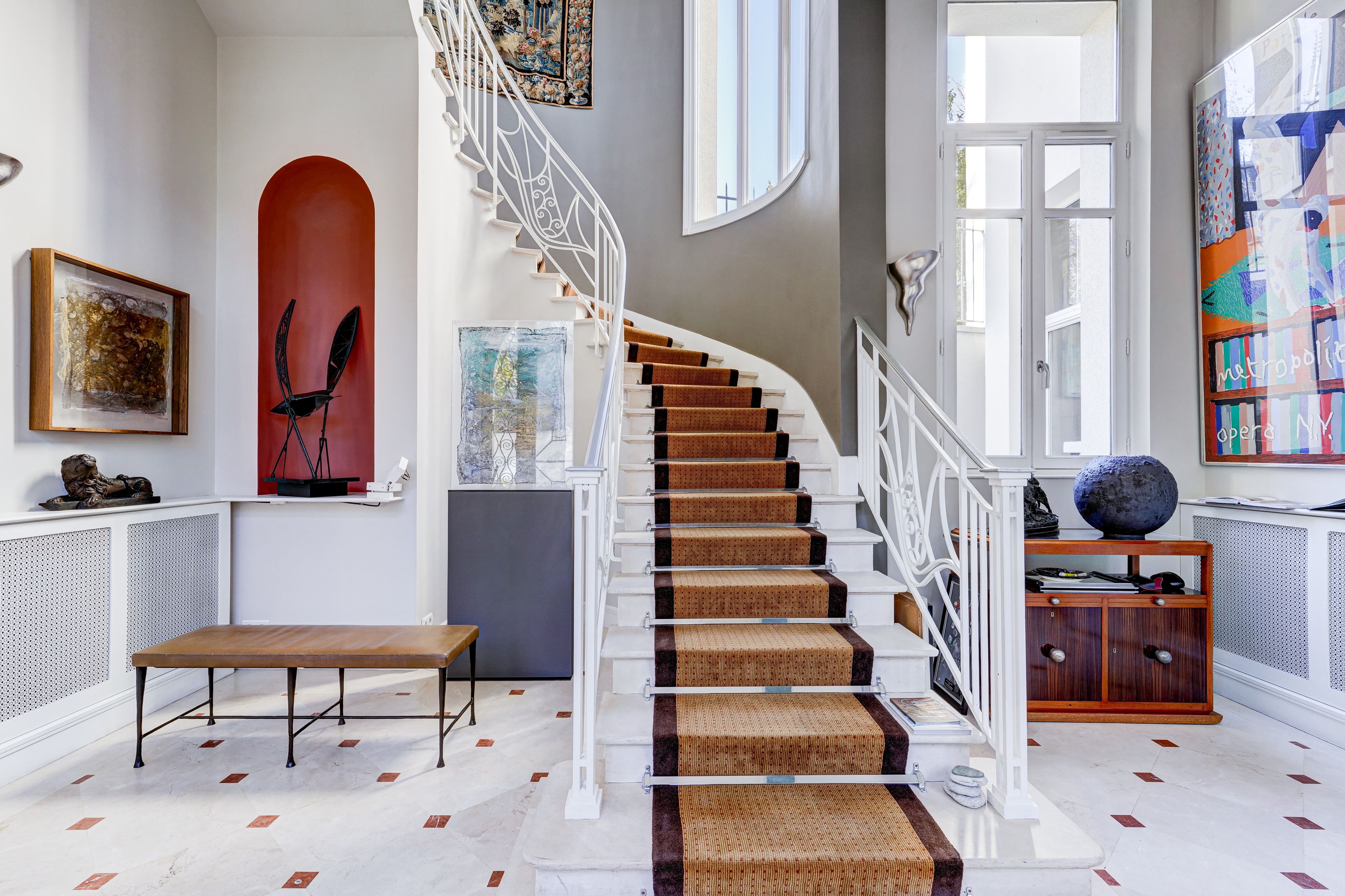 Idéalement situé à deux pas de la place Rodin, superbe hôtel particulier des années 30 de 453 m² sans vis-à-vis, en excellent état et bénéficiant d'une terrasse arborée. Au rez-de-chaussée : galerie d'entrée, grande cuisine dînatoire, studio indépendant avec une chambre en mezzanine et salle d'eau. Au premier étage : pièce de réception ouvrant sur un salon en rotonde, salle à manger et office. Au deuxième étage : suite de maître avec salle de bains complète et dressing ainsi qu'un bureau ou cinquième chambre. Au troisième étage : deux chambres avec chacune leur salle d'eau et un studio de musique. Au quatrième étage : superbe terrasse arborée et ensoleillée de 80 m² offrant une vue panoramique sur les jardins alentours et la tour Eiffel. Au sous-sol : cave à vin, buanderie, local technique et pièces de rangement. Emplacement de parking devant l’hôtel particulier.