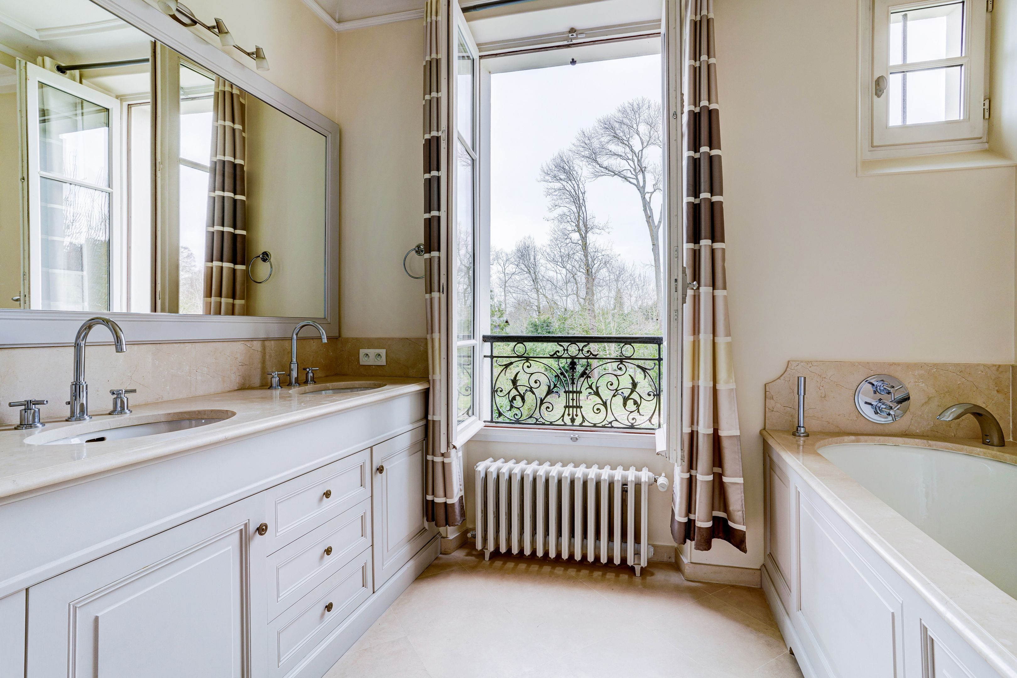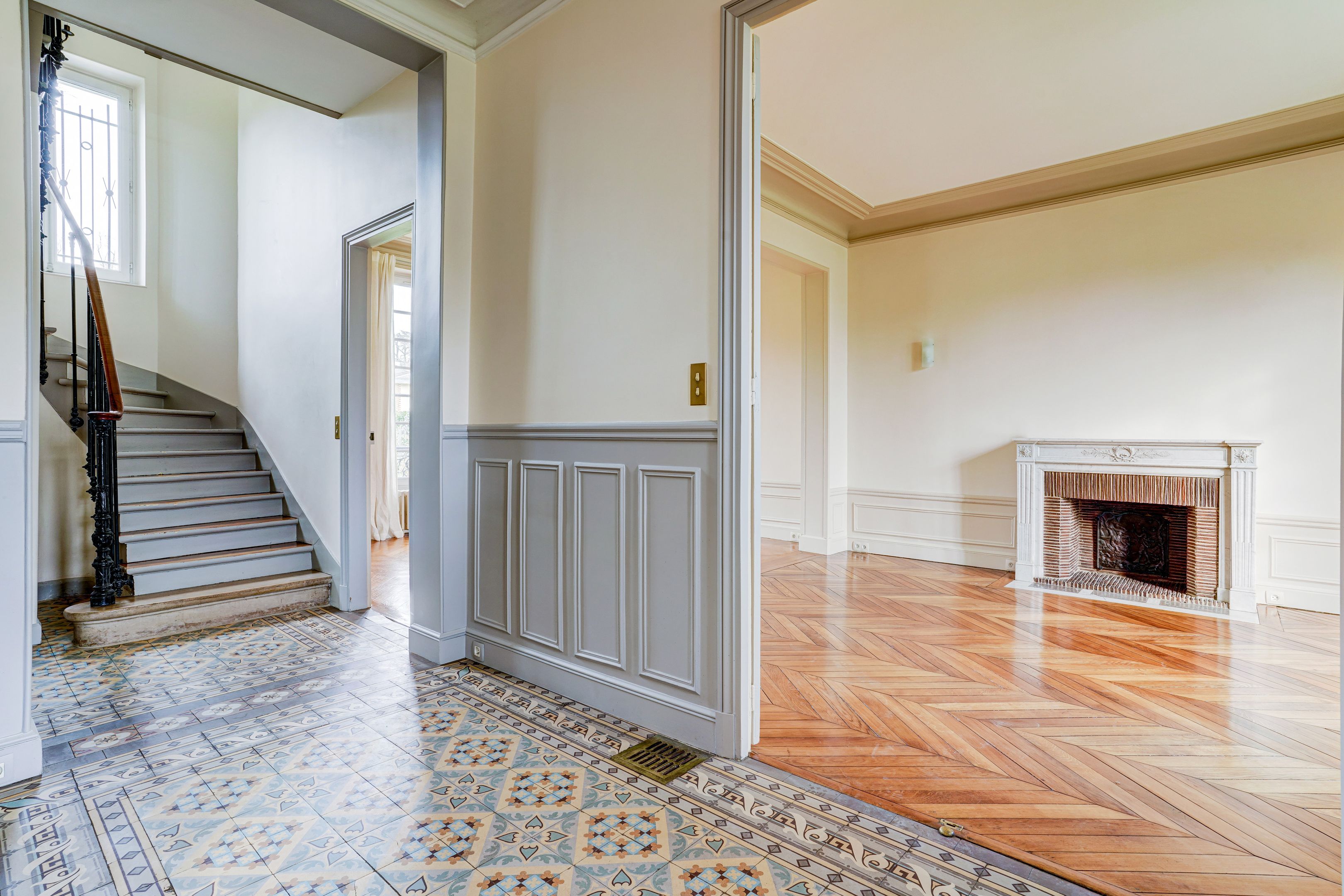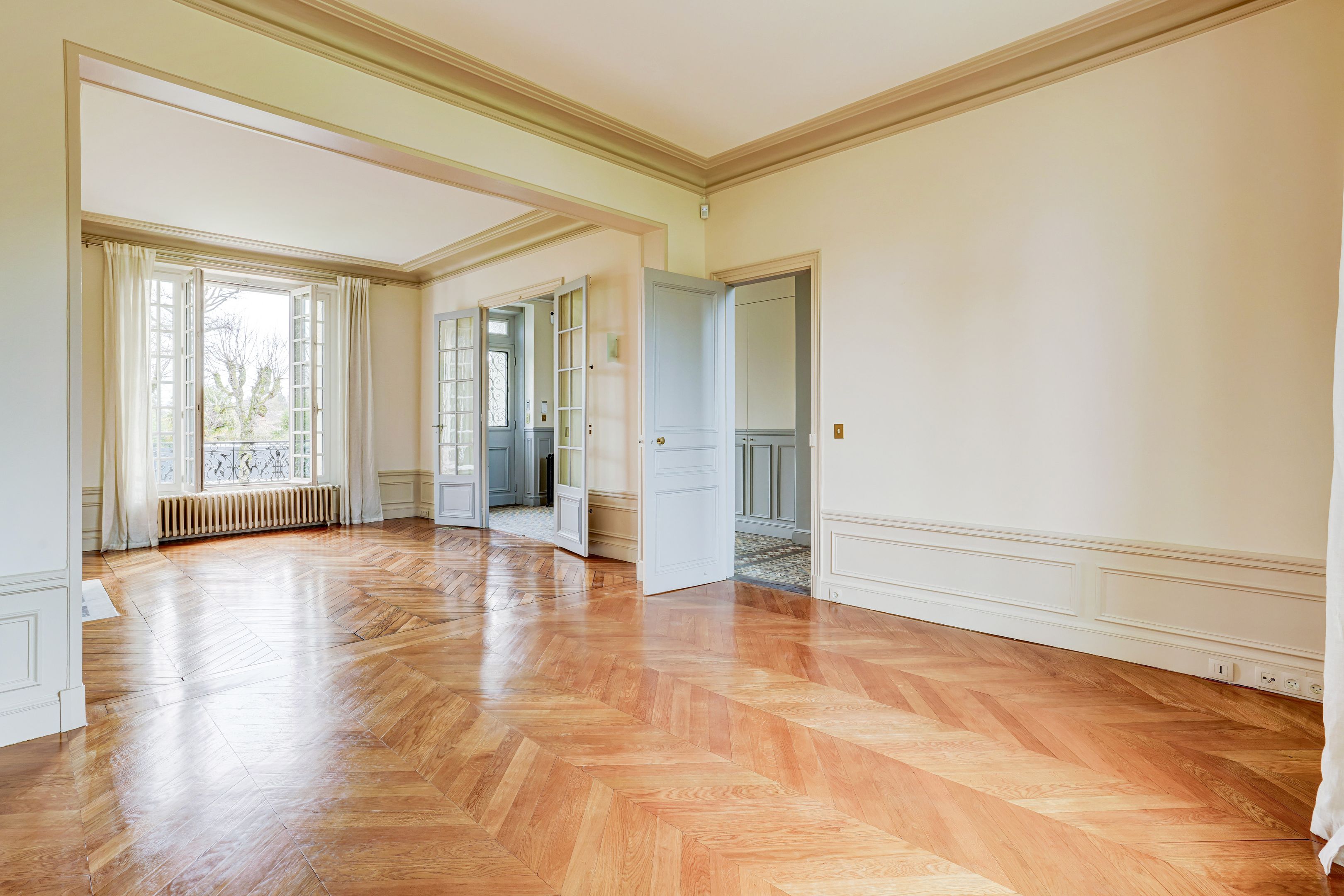Vaucresson à proximité du centre ville, une superbe demeure ancienne parfaitement entretenue de 250 m2 édifiée sur une parcelle arborée de 1000 m2. En rez-de-chaussée une entrée dessert une double réception traversante lumineuse, une salle à manger et une cuisine équipée avec un accès direct au jardin. Au premier étage un palier distribue une suite parentale comprenant dressing, salle de bains/ douche, une chambre avec salle d'eau et une troisième chambre. Au second niveau quatre chambres dont une avec une salle d'eau et une salle de bains/douche indépendante. En sous sol une pièce de rangement, une buanderie, une chaufferie, et une cave à vin voutée. Un parking dans la propriété agrémente cet ensemble. Contrat d'entretien du jardin compris dans les charges. Arrosage automatique, maison sécurisée avec alarme, et éclairage dans le jardin. Vous serez séduits par les prestations de grande qualité, le calme des lieux et les vues dégagées, sans vis à vis.