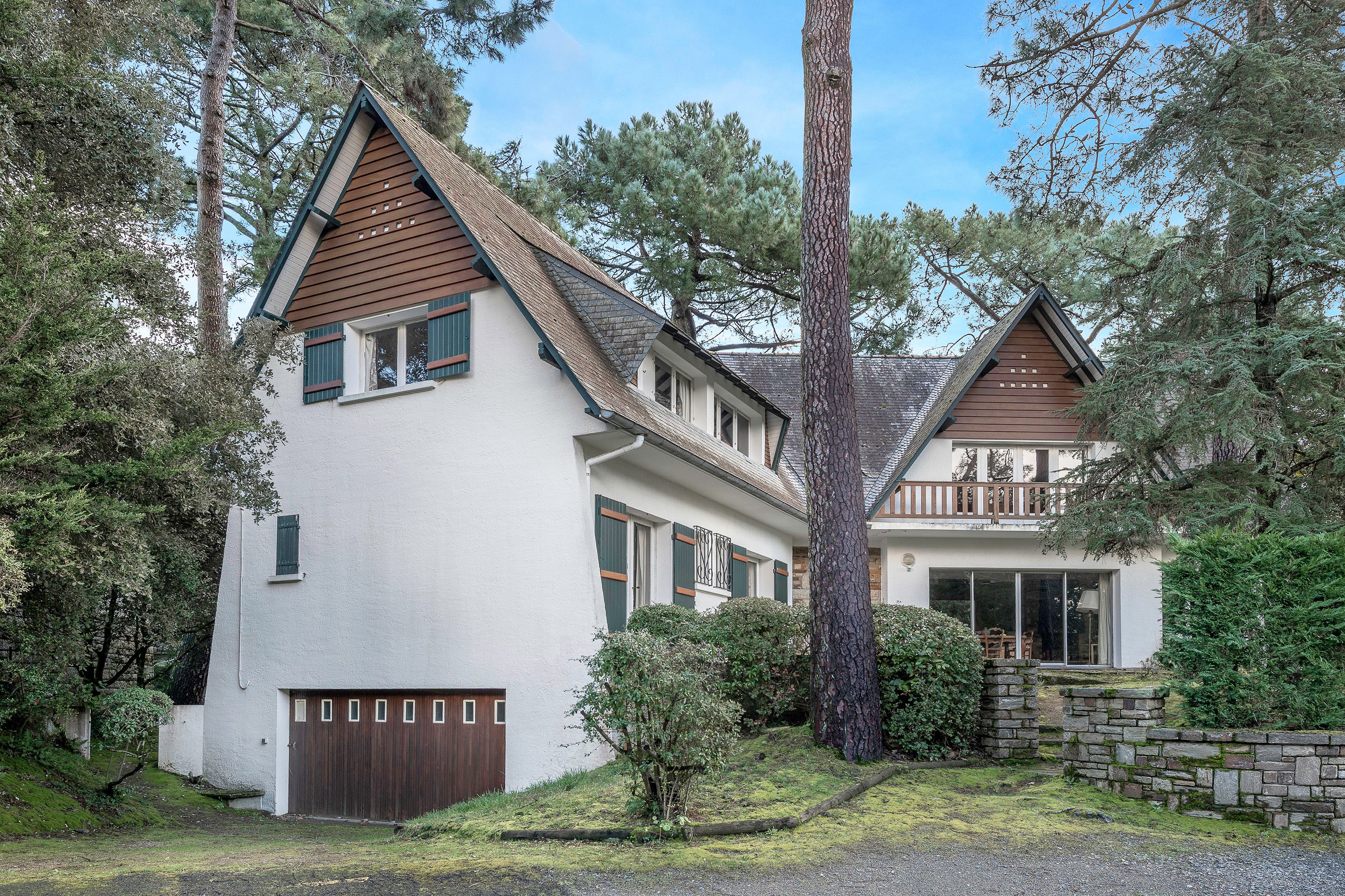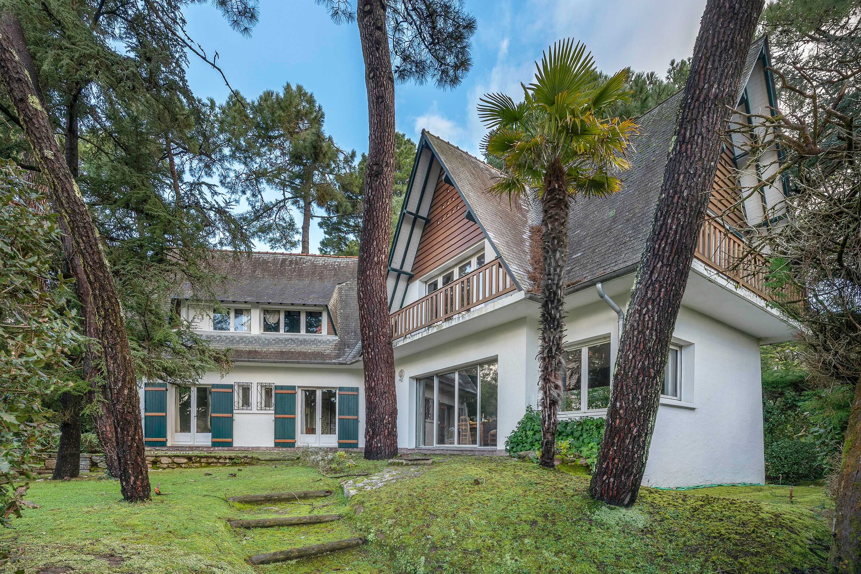 Au cœur de La Baule Les Pins, villa familiale des années 60, signée de l'architecte Philippe Louis, de 280 m² environ sur une parcelle de 590 m². Entrée, vaste pièce de réception lumineuse ouverte sur une terrasse, cuisine séparée, deux chambres avec chacune leur salle d'eau privative, toilettes. À l'étage : belle suite parentale, deux chambres, salle d'eau, toilettes. Au rez-de-jardin : quatre chambres, salle d'eau, toilettes. Double garage.
